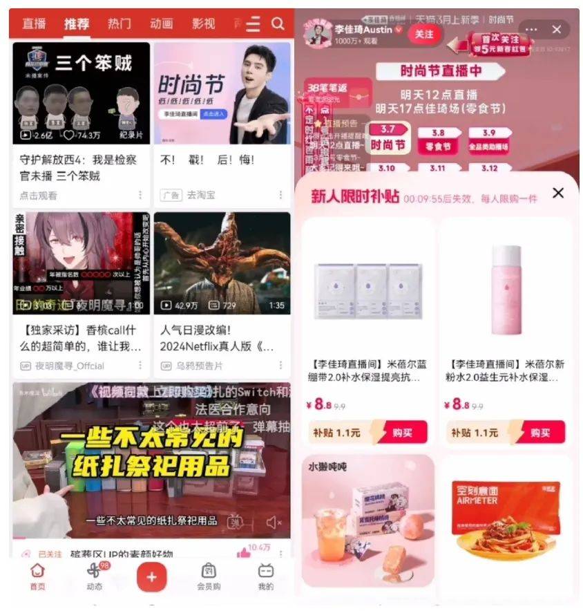 编排 | 李砚 审核 | 李砚 来源:品牌头版 作为年轻人和新世代们的根据地,B站,随着近年不断加码电商、入局直播带货,其广告收入占比也明显增长——B站再也不是当年那个只靠游戏的二次元社区了。 尤其为了尽快实现盈利,给当下资本市场一个交代,B站还选择了接入外部电商平台的模式。 短期来看,B站确实获得广告业务收入的增长,但真正转变为交易平台,还言之过早。一直困扰多年的盈利模式难题,B站至今仍未真正有效解决。 01.B站把流量卖给了“猫狗多”平台 细心的网友应该有所发现,不久前,B站App首页出现了淘宝直播的广告小卡。 点击后会直接跳转进入李佳琦的淘宝直播间,直播间页面下方自动出现“新人限时补贴”产品,关闭该弹窗后便跳出领取新客红包的页面。 ![]() 广告小卡跳转淘宝直播间,B站可谓迈出了关键一步。这意味着,B站在扶持站内UP主直播带货的同时,也通过广告引入到站外直播间,加速商业化。 早在2022年,B站提出了“大开环电商”战略,全面向天猫、京东、拼多多等电商广告主开放站内广告合作,以效果广告为主要媒介,将流量输出至第三方电商体系内,构建站内曝光种草、站外承接转化的交易链路。 随后,B站率先与阿里达成合作。2023年618前夕,星火计划正式上线。这是一个B站和淘宝联盟合作的数据共享平台,广告主可借此进行人群洞察及B站广告投放,从而极大解决商家对投放B站的效果进行分析。双11前夕,B站又和阿里妈妈共同上线了“U选计划”,为商家内容种草提供多重流量激励,最高可获得21%的反哺激励。 除了阿里之外,B站也和京东、拼多多等平台进行合作。 2023年10月30日,B站和京东联盟合作的“京火计划”正式上线。据了解,品牌或代理商通过“京火计划”下单后,可在商单视频发布的“T+1”天后,查看用户在B站观看相应视频后15天内在京东发生的电商行为,包括搜索浏览、收藏、加购、购买等多维度的数据。在后续的第二阶段,可衡量效果的时间预计将从15天延长至30天。 拼多多方面,B站则在打通其商品库的基础上,进一步完善了双方的程序化广告对接,同时将继续深化UP主合作,与拼多多合作的UP主数量预计年同比增长将超过100%。 过去一年,拼多多被网友们戏称是“B站最大的金主”,“以一己之力养活了站内一半的UP主”。这是因为很多UP主的视频中经常穿插拼多多百亿补贴的定制、弹窗和蓝链广告,而且投放并没有针对特定的人群,无论是知识区、测评区、影视区等都有出现。 ![]() 值得注意的是,有了经验之后的B站动作变得更加大胆了。 比如,最明显的不是“天猫”或“京东”轮替上场的开屏广告,而是B站App端的暂时改版,原先底部的“会员购”入口最近已经更名为“双11”;打开页面后,在原先的会员购之外还新增了“天猫双11”板块,直接展示商品并支持跳转天猫页面购买。 同时,B站还联合天猫上线了名为“惊喜生活,11UP”的大型整合营销活动。活动专题页内包含一个主会场和七大分会场,覆盖家居、3C数码、美妆个护、潮流服饰、萌宠、美食、运动七个重点品类,还面向UP主及用户发起投稿、签到、弹幕抽奖以及红包雨等活动。 ![]() 02.B站着急盈利 多年来,由于坚持不做视频贴片广告,B站始终没建立稳定的盈利模式,自2018年上市以来,B站持续亏损,去年的归母净利润亏损高达75亿元。 一直以来在盈利上承压,B站急于打破不赚钱的魔咒,这已经是公开的秘密了。CEO陈睿曾多次提到,公司要在2024年实现盈亏平衡。 为此,从2022年二季度开始,B站开始力推“大开环电商”策略,全面向天猫、京东、拼多多等电商广告主开放站内广告合作,将流量输给他们。按照陈睿的说法,这是B站第一次把该战略放到了和社区生态一样重要的位置上。 从结果来看,大开环电商策略为B站带来了一丝曙光。3月7日,B站发布2023年财报,营收225.3亿元同比增长3%,净亏损48.1亿元同比收窄35.9%,毛利54.4亿元同比增长41.4%,营业成本170.9亿元同比收窄35.3%。 这是该公司上市以来,首次实现净亏损额和营业成本大缩减。此外,2023年B站毛利率为24.2%,也为上市以来最高水平。 营收构成财报来看,B站的商业化收入主要来自四种业务,分别是包含直播、大会员等在内的增值业务,广告业务,游戏业务,IP衍生品及其他业务。其中,2023年B站广告收入64.12亿元,较前一年增加13.45亿元,同比增幅达到27%。按季度来说,二季度开始出现强劲增长,尤其是二季度和四季度,分别增长4.14亿元和4.16亿元。而这两个季度,正好是京东和阿里两大电商营销节点所在时段,即618和双11。 ![]() 03.天下没有免费的午餐 在大开环策略下,B站为阿里、京东和拼多多等平台引入了更多年轻用户流量,推动种草转化。 对于传统电商平台而言,B站的流量还是一片蓝海。因为B站的年轻用户对于新事物、新科技的接受程度高,所以往往会成为新锐品牌、新款产品的第一波尝鲜者。因此,预计这一策略将进一步鼓励阿里、京东以及拼多多等平台商家加大广告投放力度。 对于B站而言,B站有着丰富的创作者和用户资源,内容创作氛围浓厚,用户黏性极强。但缺乏商家资源、供应链,难以构建适合自己的独立电商模式。在这种情况下,选择合作共赢,无疑是切入电商赛道的有效方式。借助第三方平台交易,也有助于B站更顺利地完成用户教育,增强用户在平台的消费习惯。 然而,天下并没有免费的午餐。B站没有入驻商家,交