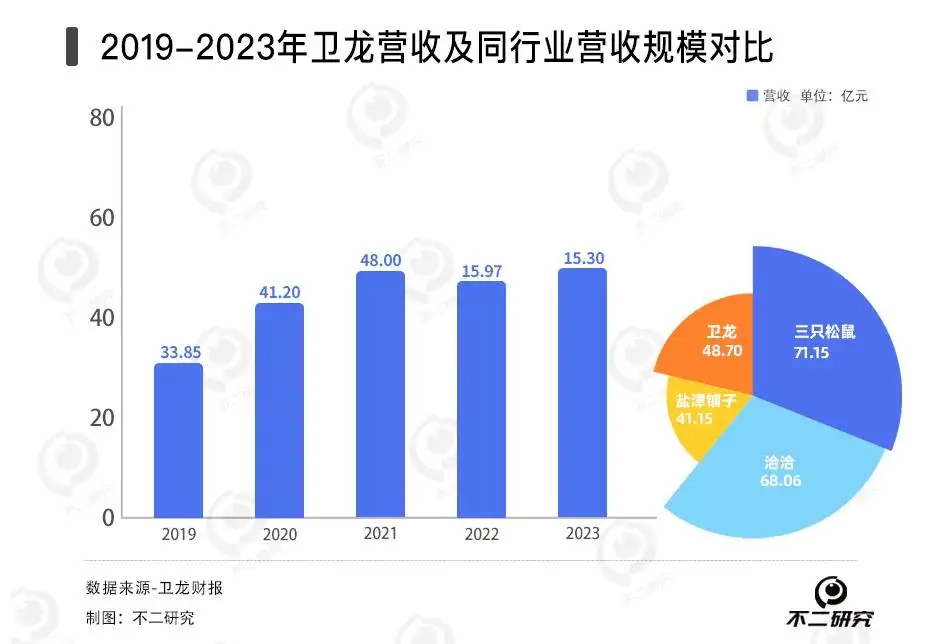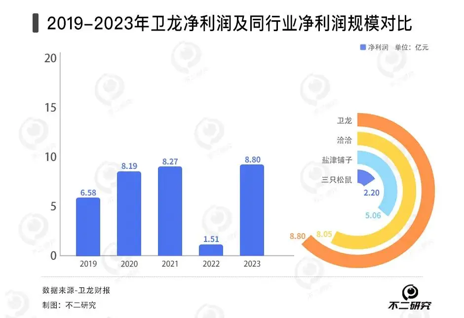 作者 | 若楠 永阳 排版 | Cathy 监制 | Yoda 出品 | 不二研究 频繁涨价后,年轻人吃不起卫龙了? 近日,卫龙美味全球控股有限公司(下称“卫龙”)发布了2023年全年财报,其业绩增长背后仍有隐忧。 「不二研究」据卫龙年报发现:2023年,卫龙调味面制品(辣条)收入同比下降6.25%、销量同比下滑2.62万吨。目前,卫龙主要面临主营业务收入及销量下降等问题。在「不二研究」看来,这主要是由于原材料价格波动,导致辣条售价略有上涨,进而造成销量下滑;与此同时,卫龙营收来源高度依赖线下渠道,若推动线上营销折扣,可能会减少经销商的利益,也是其不可忽视的风险。 卫龙是一家辣味休闲食品的企业,旗下产品线涵盖调味面制品、菜制品、豆制品及其他品类。 截至4月3日港股收盘,卫龙报收5.61港元/股,对应市值131.9亿港元(约折合人民币121.91亿元);对比IPO巅峰市值235.58亿港元,其市值已蒸发103.68亿港元(约折合人民币95.82亿元)。 ![]() 「不二研究」据其最新年报发现:2023年,卫龙营收48.70亿元,同比增长5.2%;同期,净利润8.80亿元,同比增长481.9%。 2023年5月的一篇旧文(《上市后首份财报,卫龙营收近四年首降》)中,我们聚焦于卫龙产品价格持续上涨,但并没有拉动其销量。 时至今日,卫龙不仅面临主营业务收入下滑、销量及产能利用率下滑等问题未解,且直面资线上渠道难转型的挑战。 随着休闲零食市场竞争日益激烈,抛开“童年滤镜”的卫龙,如何抓住年轻人的胃?由此,「不二研究」更新了5月旧文的部分数据和图表,以下Enjoy: 当你吃辣条的时候,你在吃什么? 味道?口感?还是童年的记忆? 近日,卫龙美味全球控股有限公司(下称“卫龙”)发布了2023年财报。 据卫龙最新年报显示:2023年,卫龙营收48.7亿元,同比增长5.2%;净利润8.8亿元,同比增长481.9%。 在辣味零食赛道上,高利润的辣条品类也吸引三只松鼠、良品铺子等品牌入局,卫龙的辣条腹地遭遇围攻;与此同时,卫龙仍需面临线上渠道转型所带来的挑战。 “辣条大王”不香了 辣条诞生于意外,而卫龙开创了辣条行业。 1998年,洪水造成湖南平江传统小吃酱干的原材料短缺,当地采用面粉替代生产,意外受到欢迎。1999年,来自湖南平江的刘卫平与兄弟刘福平一起,北上漯河开起了辣条小作坊。2001年,刘卫平成立平平食品厂;2003年,卫龙品牌正式诞生,并成功占领了孩子们的小卖部。 从廉价小吃走到IPO,卫龙花了十余年。为了摆脱负面评价,2004年卫龙就从欧洲采购自动生产线,并不断从生产、宣发各角度“洗白”,终于使得辣条成为干净卫生的零食品类。 作为辣条大王,对比零食上市公司,卫龙的营收规模并不算大;据招股书及财报显示,2019-2023年,卫龙的营收分别为33.85亿元、41.20亿元、48.00亿元、46.32亿元、48.70亿元。 在2023年,三只松鼠、洽洽、盐津铺子营收分别为71.15亿元、68.06亿元和41.15亿元。 ![]() 「不二研究」发现,卫龙的净利润和净利润率都很高:2019-2023年,其净利润分别为6.58亿元、8.19亿元、8.27亿元、1.51亿元和8.80亿元,净利率分别为19.4%、19.9%、17.2%、19.7%和19.9%。 对比同行业的年报数据,2023年,三只松鼠、洽洽、盐津铺子净利润分别为2.20亿元、8.05亿元和5.06亿元。 ![]() 从毛利来看,招股书及最新财报显示,卫龙2019-2023年分别实现毛利12.54亿元、15.66亿元、17.93亿元、19.60亿元、23.23亿元,毛利率37.1%、38.0%、37.4%、42.3%和47.7%。 ![]() 与三只松鼠等品牌不同,卫龙十分依赖线下渠道。招股书及最新财报披露,卫龙近9成收入来自线下渠道,其中又以线下经销商渠道为主。 2019-2023年,卫龙线下渠道收入分别为31.34亿元、37.39亿元、42.46亿元、41.46亿元和43.61亿元,营收占比高达92.6%、90.7%、88.5%、89.5%。 截至2023年12月31日,卫龙拥有1708名线下经销商,其产品通过经销商出售给不同国家或地区的147个购物商场、商超及连锁便利店运营商。 尽管卫龙也在线上持续发力:2019-2023年,线上收益分别为2.51亿元、3.82亿元、5.54亿元、4.86亿元和5.10亿元,但营收占比仅为7.4%、9.3%、11.5%、10.5%和10.47%。 ![]() 相较于坚果、炒货等品类,辣条因为成本低廉,因而拥有更高的加工附加值。这给予了卫龙远高于同行的净利率,但也暗藏危机:当众多品牌争相入局,卫龙凭什么继续当“辣条大王”? 当前,零食巨头皆已完成线上布局,其在抢占高线城市的同时,借力电商物流网络深入低线城市;而卫龙9成收入来自线下,已然错失发力线上的最佳时间,留给它的时间已经不多了。 除了辣条还有什么? 尽管卫龙开创了辣条行业,但并不是辣条的唯一代表。 1月29日,胡润研究院发布《2023环球首发·胡润中国食品行业百强榜》,榜单显示,2023年中国食品行业百强榜上榜企业总价值为8万亿元,比去年下降12%,其中,有57家企业价值比去年下降,卫龙价值下降比例最大,达55%。 由于辣条行业并不具备高门槛,潜力市场吸引到越来越多的入局者。在价格和口味方面,辣条品牌区分度并不强。 据「不二研究」不完全统计,三只松鼠、百草味、麻辣王子等品牌都有辣条产品;且不少地方品牌在不同区域“割据”,享有较高区域影响力,卫龙面临不小的市场竞争。 门槛低也体现在较低的研发费用上。根据卫龙此前的招股书信息,2019-2022年上半年,卫龙的研发投入分别为57.3万元、337.6万元、549.7万元和693.4万元,仅占总收入的0.3%左右。 ![]() 目前,辣条(调味面制品)仍然是卫龙最主要的营收来源,但占比正逐步缩减:2019-2023