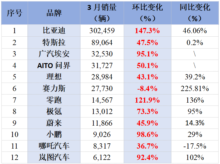 来源 | 松果财经 作者| 琴声奏响时 3月28日晚,小米SU7的闯入,有如“鲶鱼”的强势进场,发布会后4分钟大定破1万台。这样的战绩给小米带来一剂强心针,但对其他新势力而言,无疑是一枚深水炸弹,“水下”远比“水面”热闹。 4月1日,车企们3月的销量数据如期而至。 ![]() 对比来看,比亚迪的销量一如既往独占鳌头,达到302459辆,相比去年同期增长46.06%,同时销量环比增速也取得惊人表现,达147.3%。新势力中的“蔚小理”也录得超40%的环比增长。 验证成果后,我们会发现尽管各大车企增速不一,销量表现出现分化,但整体都处于增长区间。而这背后是什么在驱动?我们来一探究竟。 整体向好的同时,分化也在进行中 据乘联会预测,2024年3月全国新能源乘用车厂商批发销量82万辆,同比增长33%,环比增长84%。整体市场增速显著。 具体来看,比亚迪以及多数新势力车企的强劲表现,这背后离不开2月中旬,由比亚迪牵头的一场“蓄谋已久”的价格战。 春节刚过,比亚迪身为新能源汽车领导者,开始大刀阔斧的“变革”。虽然变革的内容与以往类同,依旧是价格,但“醉翁之意不在酒”,策略落点不只是针对新能源车圈,更多是将矛头对准了燃油车。 ![]() 图片来源于比亚迪官方 虽说之前9.98万元的比亚迪秦PLUS DM-i已经打响进攻燃油车市场的号角,如今比亚迪售价7.98元的混动紧凑车型一经推出,同日多数新能源车企紧随其后。 五菱星光PHEV 150进阶版下调6000元至9.98万元,长安启源也宣布跟进降价,启源Q05和启源A05最低7.39万元起,哪吒X其它版本车型全系直降2.2万元、AYA全系直降8000元、S全系直降5000元等等。 这一轮“价格”攻势彻底打乱了油电两方市场的“微妙平衡”,“天平”开始向电车倾斜。 原本,新能源车比同级别燃油车贵的情况就一直在掣肘新能源车的发展,再加上续航焦虑。新能源车始终未能全面渗透市场。 随着电池等原材料价格持续降低,厂商做到了油电同价,甚至电比油低。价格上的差距被磨平,用户在对比同级别同价位车型时,燃油车产品更新换代较慢,产品智能化程度不高等弊端,使得电车的优势变得更为明显,原本属于油车的市场份额不得不让渡给电车。 对此,中国银河证券认为,新能源车相比燃油车的领先优势愈发明显,这将推动消费者向新能源产品的持续转化,预计自3月起,新能源车渗透率将回升至2023年底的高水平之上,并在全年保持稳中向上趋势。 在上游原材料价格持续走低的背景下,电车的整车成本也显著降低,多家车企迅速拿出诚意争夺市场。除比亚迪外,环比增速最快的是零跑,达121.9%,3月累计销量达1.46万辆,同比增幅达136%。 这其中,零跑中型SUV的性价比一骑绝尘。新发布的C10售价12.88万至16.88万,在这个价格区间中,目前还没有能与之匹敌的竞品。由此可见,零跑跻身新势力第一梯队后,仍在加速打造差异化拉开差距。 而新势力中备受瞩目的“蔚小理”,月度表现已经开始分化。3月,理想汽车累计交付新车28984辆,环比增长43.1%;蔚来汽车累计交付11866辆车,环比增长46%;小鹏汽车累计交付新车9026辆,环比增长99%。尽管环比增速均较为显著,但实际交付量已经拉开不小的差距。 值得注意是,单一车型中销量最高的是问界新M7,3月累计交付新车24598辆,上市后累计交付量超过12万辆,荣登国产新势力车型销量榜首。 问界新M7之所以脱颖而出,华为隐藏其后的强大背书不容忽略。其次,基于华为在手机终端以及智能网联上的积累,其联合出品的问界在智驾上也居于领先地位。 此外,天眼查消息,4月1日,问界新M7入门车型起售价从24.98万元下调2万元至22.98万元,也引起轩然大波。 新能源车间的“较量”已经蔓延至整个汽车行业,燃油车的焦虑不言而喻。在原材料价格下滑之际,新能源车下探价格的同时,也没有让品质“掉分”。随着车企洗牌的加剧,市场或将形成新秩序、新格局。 下半场,新能源车企的决胜点是什么? “价格战”的背后,不仅仅是淘汰赛的上演,也是一个新秩序的建立。虽然,价格战不会停,但确保车企存活的重点不只是价格,而且经过长时间的市场磨砺,新能源车企已经过了不计回报的烧钱阶段,回本盈利成为关键。 在价格战中,“以价换量”是常见策略,但仅依靠调价来维系销量增加,这不可避免的会影响到单车利润水平。尽管,原材料价格下降会对成本优化形成一定支撑,但终归是不可控的。 2023年成功跻身新势力第一梯队,3月销量表现持续亮眼的零跑,之所以能够打造超高性价比获得显著的销售增量,这背后全域自研起到了至关重要的作用。 在全域自研的加持下,零跑的成本优势进一步扩大。截至目前,零跑已经完成核心电子部件自研,覆盖整车成本70%;此外,零跑发布的“四叶草”中央集成式电子电气架构,引入实现了四域合一中央超算,通用化率超过90%。 而比亚迪之所以可以将电车价格压至7万元水平,成为“油比电低”趋势的引领者、新能源车企的排头兵,也离不开全供应链布局和全域自研。早前,刀片电池、DMI这些名震汽车市场的黑科技,便均出自于比亚迪之手。 新能源车企中在率先盈利的特斯拉,之所以年销百万辆,同时毛利率高于20%。从技术到工程特斯拉都攥在了自己手里,整车EE架构、智能化、三电乃至芯片也都是自研。 由此可见,开启全域自研,掌握更多的上游议价主动权,是车企成功存活的关键之一。 除此以外,想要盈利的产品还需要顺应市场