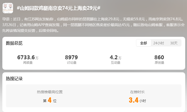 编排 | 日尧 审核 | 日尧 作者 | Hiu 来源 | 互联网品牌官 01 在传统大型商超接连闭店之际,有一个品牌迎来了逆风翻盘的时机。 它的名字很普通,它叫做山姆。 正所谓风浪越大鱼越贵,对山姆的骂声越多它越火。 接下来,《互联网品牌官》带大家回顾一下山姆出圈后备受争议的几大槽点与引发全网关注的“翻车事件”。 作为超市界绝对的黑红顶流,围绕在山姆身上的问题一直很多。 其一,最让人觉得不可理喻的——山姆仓储式会员店的“门票制”。 我去商场消费还要先交门票,不然真的“没门”。这是初次去山姆门店的消费者都会被“教育”的第一课。 要问门票几何?山姆员工会热情为您介绍:普通会员是260元,另一种可以享受更多会员服务的卓越会员是680元。 ![]() ▲ 图源:山姆App 划重点,门票是按年收费的,会员过期需要再次续费。 至于为什么要收费,山姆特意在门店的大白墙上给出了答案,“山姆致力为会员服务,为菁英生活提供高品质商品。” ![]() ▲ 图源:微博 瞧瞧这话说的,谁看了都会发出这样的感慨:“装,还是你山姆装。” 一张要价三位数的会员卡,已经从进入山姆会员店的凭证上升为一个社会层级和身份符号的象征。 想必,“在山姆装中产”的梗就是这么来的。 02 其二,付费进入超市后,另一个大槽点迎面而来,那就是山姆的超大包装。 ![]() 大包装可以缩减成本,为山姆带来更强的议价能力。 这种包装规模更符合西方家庭的消费习惯,他们习惯一次性在周末开车到卖场,采购一周至两周的生活所需。 但对于国人来说就没有那么友好了。在国内,绝大多数都是小家庭,甚至是独居年轻人,即使大包装拥有绝对的价格优势,但最终还是会因为吃不完、用不掉等问题产生浪费。算下来并没有比购买小包装商品更省钱,何况像食品类商品还会失去“新鲜”的保障。 ![]() ▲ 图源:《破产姐妹》 同时,大包装也意味着更高的客单价。 不少网友表示,自己随便逛一下,没买几样东西,动辄就要花费千元以上。“千元店”的名号也是这么来的。 以上两点是大多数消费者对山姆的“刻板印象”,此外还有因山寨、商品质量以及新疆棉等问题引发的翻车事件、因各地不同价被质疑的背刺消费者事件。 ![]() ▲ 图源:品牌百科新媒 03 前两日,又有消费者投诉称,在山姆南京一门店花费过百元购买的辻利茶铺蛋糕中吃出了头发,反馈给山姆平台后,对方虽做出了退款处理,但没有解释为何产品会出现品控问题,甚至连致电说一句道歉安抚的话都没有。 ![]() ▲ 图源:南都湾财社(受访者供图) 有网友指出类似的商品出现异物属于极小概率事件。 诚然,即使是机械化极高的标准化生产车间,在千亿次重复的生产步骤中也难免会出现一两次的差错。 对于一些保质期较短、同时对储存条件较为严苛的生鲜类食品,从生产、运输到被摆放在货架上、再到被消费者购买回家这个过程,如果其中一个环节出现问题,就会对产品的口感和品质乃至卫生安全造成明显的影响。 去年,《互联网品牌官》也写过一篇关于山姆会员店食安问题的文章,就因为是单一的小概率事件,更应该引起商家的高度重视。 千里之堤,毁于蚁穴。 对于一家卖货的商店,商品本身就是它安身立命的根本。 以提供高品质商品著称的山姆会员超市,进入中国市场后“自诩”定位高端,那么经由它售卖的商品,无论是品质还是售后服务,是否理应比不收“进场费”的普通商超更加严谨。 既然无法保证自己的商品百分百不出问题,那么出事后,就请拿出与山姆超市声量相匹配的处事态度来,该与消费者沟通清楚的、该真诚致歉的,都做好这部分售后服务。 ![]() 04 以上是山姆在品质问题上的“翻车事件”,再者就是最近又“喜提”热搜的价格双标事件。 就在前不久,#山姆同款鸡腿南京比上海贵45元#消息再次震惊各地消费者。明明大家逛的是同一家山姆,但价格的参差竟然那么大,而且卖得更便宜的城市还是人均GDP排在第二位的魔都。 ![]() ▲ 图源:微博 山姆“宠”上海地区消费者早有先例,去年5月份就有网友指出#山姆超市同款蛋糕杭州卖165上海卖95#的问题,上海地区售价足足便宜了70元,几乎是一倍的差距,不可谓不离谱。 于是掀起了一股各地网友比价的风潮,结果发现“山姆差价”不是一天两天,也不局限于某几款商品。 感到吃亏的消费者意难平,而山姆做出的回应也是“听君一席话如听一席话”:不同城市由于受到成本、当地市场情况,以及优惠活动等多种因素影响,价格可能会有所变化。 其实,消费者要的很简单,就是山姆在全国统一践行能给到的“最低价”,但山姆这边态度也很明确——办不到。 这背后涉及到品牌策略和当地市场竞争等因素,但这个差异定价是否也要适度,相差一两倍的定价实在让消费者“无语凝噎”。 在价格透明、城市之间信息不对称被抹平的当下,山姆在少部分商品上采取的“大数据杀熟”骚操作,“杀伤性”不大,“侮辱性”极强。 05 细数下来,是不是觉得山姆问题一箩筐而且槽点满满,这下更加想不明白为什么近几年它能火得一塌糊涂了。 ![]() ▲ 图源:微博网友 具体有多火? 表现在营收上:2022年42家山姆门店在中国总营收达660亿元,2023年总营收预计超800亿元。 表现在门店数量上:截至2023年年底,山姆会员店已经在国内的25座城市完成了47家门店的布局。 表现在会员数量上:2023年山姆会员超500
