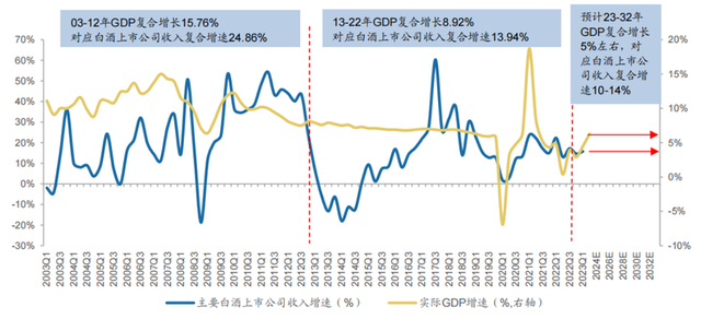 来源:价值事务所 前几天讲了海天未来五年的业绩增长中枢,那么对A股价值的锚来说,未来茅台的增长中枢是多少呢? 01、根据GDP增速 先要算一算白酒行业未来的增长中枢。这是一种比较粗糙的算法。 之前行业有这样一个说法,基建配白酒,越买越上头。说的是基建、地产开工率上去之后,白酒的销量也会比较好。这是业内人一个朦胧的感觉,但是它是对的。其实根本原因是基建开工率上升,经济回暖,白酒消费增加。 从历史数据回溯看,2003-2012年GDP复合增长15.76%,白酒上市公司收入复合增速24.86%,经济快速发展带来了白酒需求繁荣。 注:今天这篇文章来自《所长会客厅》,因《价值事务所》已是一个全网超过100万关注者的账号了,考虑到舆论影响的问题,无论是跟投资决策直接相关,还是比较敏感的内容,都没办法深入讲,甚至都不能涉及。所以建议大家最好尽可能加入所长会客厅。对比《价值事务所》,《所长会客厅》有更加深度的研究、更加敏感的内容、更全面的陪伴(有问必答)、更及时的解读以及更多精品内容补充…… ![]() 2013-2022年GDP复合增长8.92%,经济增速降速,对应白酒上市公司收入复合增速13.94%,经济增速降档对应白酒收入增速下降。 对比白酒上市公司收入与GDP的单季度同比增速,白酒需求与宏观经济紧密相关,发现白酒上市公司收入复合增速高于实际GDP复合增速约5-9pct。 ![]() 为什么白酒上市公司的收入增速会比GDP高一些呢,尤其是自2016年白酒行业整体增速下滑之后,龙头白酒公司的营收和利润反而加速? 这里面除了能获得跟随GDP的增长之外,龙头还能收割市场份额。 这样的事情曾经发生在空调、乳制品、啤酒、水泥、煤炭、挖掘机等各个行业。就空调行业来看,在2003年以前,行业都保持了双位数的增长。 这个时候群雄割据,很多人应该还记得海尔、志高、海信、科龙、奥克斯、春兰、TCL等系列品牌。这个时候价格战严重,格力的净利率只有小个位数,某些年份还是亏损的。 ![]() 此后空调行业增速逐渐放缓,特别是2007年之后,行业增长已经停滞,大部分小厂倒闭。这个时候龙头的市占率迅速提升,格力的市场占有率逐渐提高到30%左右。 而它的净利率也在逐渐提升,逐渐由小个位数提高到15%左右的水平。 对于白酒行业来说,2013年以前仍然是行业的甜美时期,品牌泛滥。2013年到2022年行业集中度有所提升,CR5从17.4%提高到42.7%。 ![]() 但是相比欧美成熟市场,或者相比国内的乳制品、啤酒行业,市场进入成熟期之后,前五名市场份额能达到70%,白酒龙头的市占率还不够高。 根据政府的远景目标,2035年人均GDP达到2万美元以上,则对应实际GDP2021-2035年十五年年均复合增长率不能低于4.73%,预计2023-2032年GDP复合增长5%左右。 那么按照上面的推算,未来十年白酒上市公司收入复合增速仍高于GDP复合增速5-9pct,预计在10%-14%。当然这只能让我们对行业有一个大概的判断。 02、业绩测算 我们从宏观和微观两个角度来验证,综合分析未来茅台的涨价空间。 茅台的消费主要是高净值人群。高净值人群数量的提升,是在人均GDP提升的宏观背景下,由房价上涨、固定资产投资增速提升带来的财富效应。也就是货币发行量增加,是高净值人群数量提升的最根本影响因素。 统计了最近十年以及加入WTO之后的广义货币供应量M2和茅台的批价涨幅,发现存在高度相关性。 ![]() 随着GDP增长,高净值人群体增长,对高端白酒的消费需求仍然会增加。 根据推论,我们假设茅台未来长期市场价格跟随广义货币供应量M2。 2012年之前,中国经济高速增长,M2在15%-26%的区间大双位数增长。最近十年M2的增长大约在小双位数。保守估算,我们预计未来永续增长在8%左右。 从另一个角度,长期M2增长=GDP+物价指数,中国未来长期维持5%的经济增长、3%左右的通胀率,那么M2比较合理的增长大约在8%,也就是未来茅台价格的增速中枢。 这就是从宏观货币角度看,对未来茅台的涨价幅度的判断。 从微观角度,就是跟踪茅台的出厂价。这是飞天的出厂价: ![]() 出厂价从2001年的218元涨至2017年的969元,年复合增长率大概9.77%。拉更长周期,大约也是11%左右的增速。 很多人对茅台未来涨价心存疑虑,飞天的出厂价从2018年到969以来,最近一次提价是2023年11月,涨价20%到1162元。提价的频率比较低。 但是根据年报披露的销售收入和销量,茅台酒的出厂吨价每年都有一定幅度上涨。 ![]() 那么茅台酒是如何完成出厂吨价的提升? 其实除了直接提高出厂价这种很直白的手段,茅台还有很多手段,通过产品结构的调整(提高高价值的非标占比)、提高直销比例占比来实现出厂吨价的提升,这种涨价更加隐秘。 飞天茅台已经成为茅台的符号产品,承载了公司的整体品牌形象,尤其之前官媒人民日报批评茅台酒是用来喝的,不是用来炒的,让茅台价值回归市场。茅台出厂价被更多人盯着,对飞天的提价更加谨慎了。 通过提高非标茅台的出货比例,变相完成涨价。 精品、生肖、珍品、年份相比普通飞天,品质和定位都是提升的,出厂价自然也是。精品茅台出厂价2699,其它生肖酒、年份酒出厂价也都高于飞天茅台。通过增加精品为代表的高价值非标茅台系列酒结构,出厂吨价不断提升。 一个测算,如果销量不增加,把所有的飞天茅台变成精品茅台,那么公司的营收能达到2500亿。 通过提高直销比例,也能间接提高出厂价。目前茅台渠道利润丰厚,飞天直
