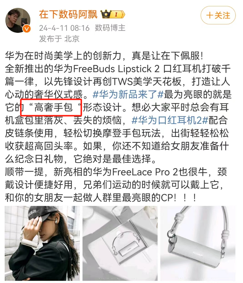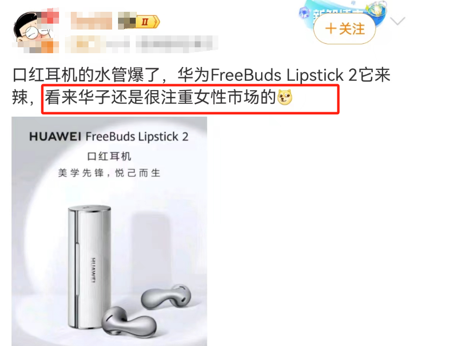 作者 | 杨阳 来源 | 顶尖广告 华为这2年就像新品收割机,随便丢个王炸就刷爆全网。 离谱的是,最近华为被曝居然卖奢牌手拿包了。 ![]() 图源:@在下数码阿飘 华为不是小米,其实大家说的是华为第二代口红耳机。 ![]() 图源:@林欣Anne 好看是好看,但是贵也是真的贵。 这款名为HUAWEl FreeBuds Lipstick 2口红耳机,定价1699元。 这价格多少有点离谱,第一感觉就像是像卖奢侈品。 ![]() ![]() 以至于有网友调侃:名媛社交神器。 ![]() 01 抛去价格不谈,就这个颜值和设计来说,必须承认华为确实很懂女性。 ![]() 这款耳机由内到外,融合“口红、耳机、宝盒、手包”四种造型,设计两种“弦乐白”、“魅影黑”两种颜色,细节之处都流露着高奢气息。 耳机外壳像极了口红,机身采用半入耳腰果的造型设计。 ![]() 图源:@林欣Anne 外包装融入珠宝盒设计,开启时就像打开首饰盒,仪式感拉满。 ![]() 图源:小红书网友 华为还参考大牌包包的设计,给充电座挂了一条链条挂绳。 ![]() ![]() 图源:小红书网友 不管是手拎聚会还是日常通勤,耳机变成行走的高奢手包、时尚挂件。 ![]() 图源:华为 看完这个设计和价格,似乎也能理解为啥大家调侃其为名媛社交神器。 说起来华为并不是第一次出口红了,之前在海外发布第一代口红耳机:FreeBuds Lipstick,外观同样按口红造型设计,第一眼看真不像耳机。 ![]() 图源:五月数码科技 所以第二代出来后,有人对比后,形容第一代像迷你冰箱,第二代像迷你空调,差点以为华为跟格力联名了。 ![]() 当然口红耳机只是华为讨好女性的缩影,这几年华为频频为女生整活儿,甚至有人造了一个段子: 成功男人: 手机用mate系列X系列,开问界M9或者7。 成功女性: 手机用P系列和小折叠pocket,开智界和问界M5。 段子归段子,但也说明一点: 在产品功能和美学的平衡上,华子可以说真的很努力,左手出口红、奢侈品包包,右手开花店、造梳妆台...... 别问为什么,问就是撕掉理科男的刻板印象标签。 ![]() 02 在女性营销上,华为首先就很注重细节营销,善于把女性的生活习惯融入到产品设计中,跟女性套近乎。 就说折叠机Pocket 2,比起高颜值,我觉得值得一说的是隐藏功能:抓小三。 这还要先科普下华为Pocket 2防晒检测的功能:可以识别防晒是否擦均匀,解决涂防晒不知道够不够的痛点。 ![]() 图源:@华为何刚 于是网友四舍五入推导出“鉴别渣男”的功能:假设男一女一不用防晒霜,但是三用防晒。那么男和三一亲,华为手机一拍就会一目了然。 ![]() 难怪有人称之为“渣男鉴别器”“照妖镜”,当然希望所有女生都用不上这个鉴别功能。 ![]() 图源:数字尾巴 除了手机,华为智界S7汽车功能,同样被夸对女车主考虑很周到贴心。 一是设计了一个女王副驾——零重力座椅,上班中午都可以在车上躺平;二是把纯平多功能仪表台变成梳妆台,满足女生车内补妆化妆的需求。 ![]() ![]() 图源:微博网友 说到这就不得不提华为几年前推出Watch GT2手表,设计了一个对女生比较友好的女生生理周期监测。 ![]() 图源:@魔法科技君 对于忙碌上班族女性来说,生理周期监测是个贴心功能,避免了每月那几天来临时手忙脚乱。 所以有时候创新产品并不是要多脑洞大开的功能,反而只需要加入一个暖心、人性化的小细节,就能换来大体验,为用户创造超出预期的用户体验。 03 其次是美学营销,从包装视觉或者产品体验融入女性化元素,赋予更多产品溢价。 当初华为Pocket 2上线就卖爆,与其颜值脱不了干系。 据传华为Pocket 2设计灵感取自浩瀚深海中的璀璨珍珠,还原大溪地黑蝶贝的天然纹理。 整机折叠起来只有手掌大小,主打的就是小巧机身、精致外观和奢华质感。 ![]() 嘉七Seven 作为一款在时尚百搭的高颜值产品,不仅是女性轻松拿捏的手机,还是女性行走的时尚艺术品。 再结合高奢手拿包造型耳机分析,对于部分女性消费者而言,颜值即为正义,华为为产品加入时尚、俏皮等具有视觉刺激的元素,可以更好地俘获人心,赋予产品社交货币属性。 04 产品会卖细节功能和颜值就算了,关键是华为也很会炒作。 张颂文姚安娜等主演《猎冰》上线后,姚安娜出演女一号,因为演技差被质疑是否带资进组。 ![]() 图源:real皮皮王 新剧播出在前,华为Pocket 2发布会在后,姚安娜还是迎难而上出席发布会,带上华为Pocket 2竖屏折叠屏手机,亲自下场代言。 ![]() 图源:微博网友 不是代言人请不起,而是二公主更有性价比,但也不要简单视为肥水不流外人田。 这一波商战实属高明,华为既能接住《猎冰》的流量,形成戏里戏外的话题联动;还能通过华为二公主站台,强化Pocket 2跟女性更配的联想。 除此之外,华为结合女性喜闻乐见的元素营销,提供关怀女性的情绪价值。 今年三八节,华为联合ELLE在上海打造了一场花园快闪,将华为最美旗舰店(华为上海旗舰店前滩太古里门店)爆改成超大花店,把“像养花一样养自己”具象化。 ![]() 图源:@ELLE官微 这背后也隐藏了华为的营销心机,“花园”概念是来自WATCH GT4绽放表盘。 ![]() 图源:微博用户@数懒小姐姐 华为是懂做三八节女性营销的,一边给华为 WATCH GT 4 系列做了波漂亮的植入,另一方面通过输出“爱人如养花”理念,应景地传达出对女性绽放的关怀。 05 华为开始疯狂发力女性营销,也是来自对女性消费主义的洞察。 网上曾经有个段子,是关于总结“天底下谁的钱更好赚”的排名: 女人>小孩>老人>狗>男人 