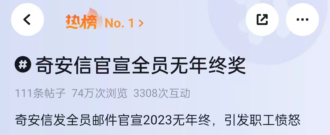 来源丨HR新逻辑 作者丨HRLogic编辑中心 嗨,这里是HR新逻辑·HRLogic 前几日,有关#奇安信全员无年终奖#的消息冲上了脉脉热搜上榜第一。 ![]() 在网传的全员信中,奇安信是这样宣布的 : 2023年,在寒风凛冽的市场环境下,奇安信人奋勇拼搏,取得了不俗的成绩,但是与2023年年初制定的经营目标计划仍然有差距,按照绩效考核规则,各组织奖金为0。 该消息一出,网友直接炸开锅。 作为网络安全领域的一哥都发不出年终奖了,那其他中小企业不是更加寸步难行了? 在当下的大环境下,很多企业都拿不出年终奖了。 企业为什么都发不出年终奖了? 大部分职场人一听到0年终奖、年终奖打折,就像热锅上的蚂蚁。 近两年来,取消年终奖、绩效不合格没有年终奖、年底裁员不给年终奖等情况,不时上演。 对于年终奖取消、缩水,一部分人表示理解: 另一部分人则认为: 小公司发不出年终奖已经变成了一种普遍现象,就连那些年终奖发到手软的大厂,这两年也变得抠搜了。 ![]() 年终奖打骨折、取消年终奖,不同的人有不同的看法。 站在职场人的角度看,盼了一年的年终奖,却临时被告知“年终奖取消”,心里难免酸涩。 还有一些公司只给一部分人发年终奖,那另一部分员工必然会产生心理落差,员工会觉得是不是自己工作没做好,进而陷入内耗。 另外,差别发年终奖还会引发一系列的矛盾。 最近,我们双证班有位学员和小逻辑倾诉:公司往年都发年终奖,今年老板觉得收益太差,不想发了,但考虑到公司的研发是重点,老板还是拿出一部分钱发给研发部门,其他部门则没有奖金; 此消息一出,其他部门的员工都炸锅了,纷纷觉得老板偏心,不公平,很多员工因此内心受挫,没了往日的干劲,还有一部分人直接离职了。 站在职场人的角度看,年终奖不发或者少发,都会引起较大的落差。 但站在企业的角度看,取消年终奖,确实是无奈之举。 年终奖并不是薪酬的固定部分,更像是一种福利,一般企业只有在盈利的时候才会给员工发放。 那当企业没有盈利,生存都是问题的时候,取消年终奖也是情理之中的事情。 随着大环境的变化,许多企业为了求生存、求发展都开展了节衣缩食的动作。 其中降本增效,成了众多企业的心头好。 降本增效是所有企业的真命题 越来越多的企业不再执着于用年终奖来激励员工,而是开始探寻提高人效的办法。 确实如此,在当下低迷的市场环境,能活下来继续发工资、还不给员工减薪的企业就不错了。 如何降本增效?小逻辑分享几个方法: (1)留人才,去庸才 人才密度,是衡量一家企业是否卓越的关键,无论是大企业还是小公司,都要提升人才密度的意识。 提升人才密度主要从把关好人才选拔关口,提高选人的精准度着手,通过不断地挖人才,培养人才,留人才,从而打造出一支强悍的人才梯队。 对于如何留人才很多HR都有自己的心得,但对于如何去庸才,很多企业都没有这个意识。 很多管理者都会发现,当企业做大了之后,难免会夹杂着一系列不干活的人,这类员工的壮大对企业的危害非常大。 因为在营收缩水的时候,企业照样要支付这类员工的工资,而其他任劳任怨的员工也会觉得不公平。 作为HR不仅要能够留住人才,更要学会甄别庸才,淘汰庸才。 (2)业务外包 业务外包顾名思义就是企业将某一环节的业务,或者将一些简单、没有太大技术含量的工作给到外包公司,从而来降低企业的人工成本。 比如很多企业的客服部、催收部外包出去,外包的优点颇多,例如客服和催收的工作重复单一,易上手,但是需要的员工数却很大; 将此类岗位外包出去,不仅能够减少企业的用工成本,还能节省人力资源部门的培训时间,让其将精力聚焦到重点部门上。 (3)优化结构、砍掉不必要流程 随着企业的不断壮大,大企业病也随之而来:组织结构越来越大,流程越来越长,人越来越多…… 员工从最开始的忙工作,变成了忙向上汇报、走流程。 长期以往,组织效率愈发低下,要想去掉这些大企业病,企业必须进行组织结构的优化,砍掉 不必要的流程。 优化组织结构:A公司原先采用的是传统直线职能式结构,组织架构有很多个层级,上传下达的效率非常低,后来该公司进行了架构调整,将原本7个层级的架构缩减成3个; 组织架构更加精简,责任划分更加具体,让组织的效率得到了很大的提升。 砍掉不必要流程:某公司的合同审批要经过9个审批环节,造成了员工时间浪费在走合同审批里;而后该公司采用删减重复冗余无效的审批流程。 最终,合同最多只需要走4个流程,不仅提升了合同审批流程,还精简了一部分冗余的人员。 (4)精简编制 降本增效,HR常有的动作还有精简编制,通过优化人才结构,让每个人手上都有活干,不让3个人干2个人的活,而是要让3个人干5个人的活,拿4个人的钱。 精简编制,能够较大程度地提升人效,但前提是精简人手的同时,激励也得跟得上。 人效的提升不仅能够给企业减重,也能让员工获得成长的机会。 降本增效不是“降本增笑” 提人效是一项长期战略,不能三天打鱼两天晒网,也不能一意孤行,否则便很容易“降本增笑”:人效没提上去,员工却没了。 为了避免双输,在人效提升这项工作中,HR需要怎么做? 1、人效管理切勿一刀切 在提升人效过程中,有些HR说“我们干预不了人效指标,我们只能减少人员或人工成本,而对于收入利润等产出指标却无能为力”。 但提人效不等于减员、缩编、控成本、