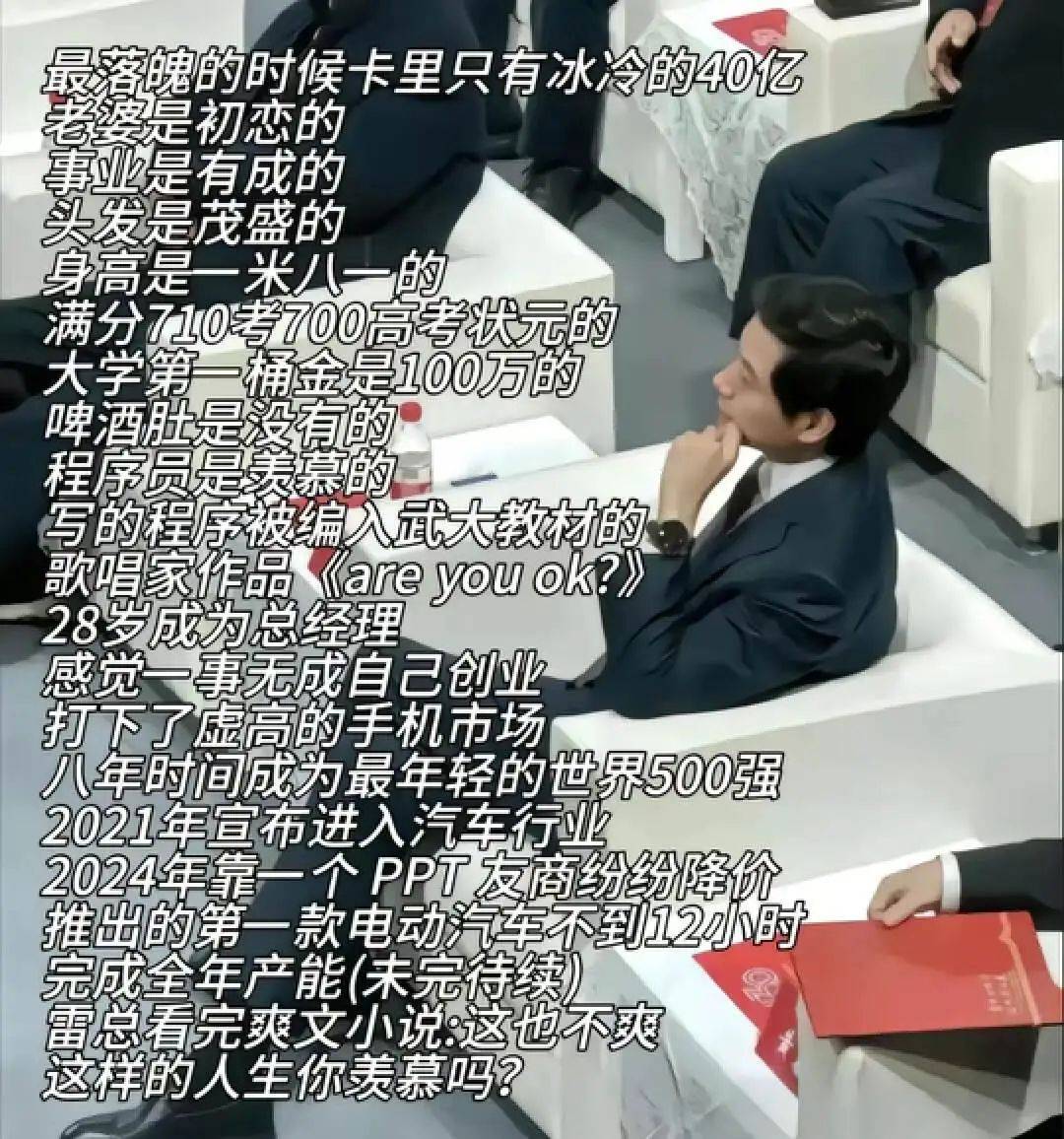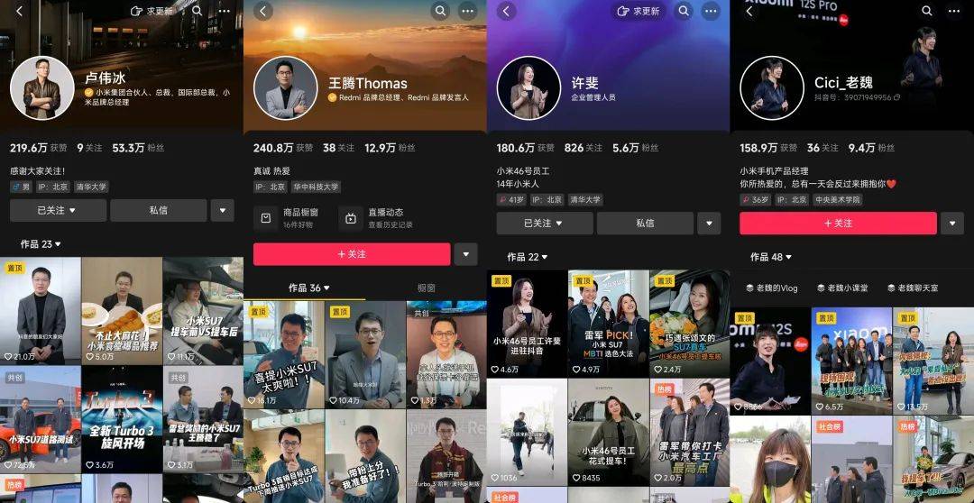 作者 | 云飞扬 编辑 | 小八 来源:新榜 一批汽车圈大佬决定跟着雷军学营销,成为中国企业通过社交网络构筑数字化内容资产的先锋队伍。 24小时大定88898台!最近,造车萌新小米汽车的新车销售数据明显刺激到不少汽车圈大佬。 长城汽车董事长、身价千亿的魏建军不仅首次开播,还反思:“以前(长城)都是光干不说,没有运用好互联网和媒体。我会起表率作用,主动与网友交流。” 360创始人、哪吒汽车投资人周鸿祎在参观哪吒汽车工厂时对哪吒汽车CEO张勇直言:“要学学小米汽车,要让用户(能够)看得懂。”张勇紧跟着在微博上回复:“接受老周批评,营销向雷军学习,不丢人!” ![]() 在一众车圈大佬中,雷军称得上网红级人物。据新榜旗下数据工具统计,近30天雷军的个人社交账号在抖音、小红书、B站分别涨粉405万、20万、26万,全网累计涨粉超451万。 从“爽文大男主雷军的一生”到“千亿霸总亲自为我开车门”,雷军创造出大批热门话题的同时,也为小米汽车赚取到大批流量。据新榜编辑部不完全统计,小米SU7上市发布会期间,微博、抖音、快手、百度等平台的相关热搜话题分别为37个、12个、4个、6个。 创始人雷军成为小米汽车营销的关键一环,也将汽车营销带入了2.0时代——老板做网红。 雷军式营销背后藏着怎样的秘密?汽车老板们是如何跟着雷军学习做网红的?通过观察最近雷军的社交动作,以及盘点汽车圈老板们的社交账号,我们或许能找到一些答案。 01.“爽文大男主”雷军,30天涨粉超450万 行业社群内流传的一份《小米SU7新车上市传播复盘报告》估算,为了小米SU7的上市宣传,小米汽车可能至少投入了1.1亿元的营销费用。 该报告提到,小米汽车的营销策略是借助雷军的个人IP影响力打造热搜话题矩阵,配合多场景高曝光资源引爆新车上市关注。 ![]() 我们无法确认这份报告的准确性,也无法分辨最近的话题事件哪些是小米汽车的主动策划,哪些是网友的自发创造,但从结果倒推,我们可以梳理出最有讨论度、传播力的热门话题,借此总结雷军式营销的几个关键。 第一,重塑人设 网友:小爱同学,谁是现实版肖奈呀? 小爱:当然是我的爸爸,雷军呀! 相比略显无趣的小米创办人身份,最近雷军的身份发生了180度反转。 有网友觉得,雷军的一生简直比爽文还爽,不仅少年得意,有贵人提携,早早实现财富自由,事业也从一个成功走向另一个更大的成功。 也有网友认为,1.81身高、发量惊人、体型良好、妻子是初恋的雷军仿佛走进现实的完美伴侣,称得上是现实版肖奈。(补充:肖奈是《微微一笑很倾城》中的男主,人设是天才男神。) ![]() 这些内容虽然有谣传夸张的成分,比如雷军虽然是武汉大学学霸,不过高考没有考出700分的高分,也不是湖北省高考状元,但这并不妨碍雷军身上的霸总光环。 相比《Are You OK》的搞笑,千亿霸总的新形象让雷军变得更有话题性,也激发了网友的传播讨论和再创作。随着《雷军的传奇一生》的传播,雷军还有了自己的专属BGM《小米进行曲》,仅在抖音就有超过128万人使用。 小米SU7交车现场,当雷军亲自弯腰为车主开门,并亲切合影的时候,网友调侃:“千亿总裁、世界500强CEO亲自开门合照,还送一辆车,太值了。” ![]() 部分线下店员模仿雷军为消费者开车门 不少车主将提车视频发布在社交网络上后,迅速引发网友的转发、讨论。比如“Nomy王化萌”的提车视频就在抖音获赞近100万,评论超5万条。 在汽车消费市场,汽车有着极强的面子属性,豪华版和大众版天然有壁。小米SU7虽然是汽车界萌新,但在千亿总裁的加持下,拥有了极强的社交货币价值。最近,不少汽车博主的流量密码之一就是将小米SU7开上街头,享受路人的围观和羡慕,“保时米”也成为潮流的代表。 ![]() 围绕雷军的霸总人设,网友们创作了不少热门段子,有的把雷军当成了“许愿池的王八”,希望他能把房子的价格也打下去,有的则好奇雷军流量那么大,为什么不接广告赚钱。层出不穷的段子进一步加深了雷军的霸总人设。 ![]() 第二,增加社交互动 相比其他中规中矩的汽车圈老板,雷军在社交媒体上要活跃得多。雷军也是少数在抖音、微信公众号、视频号、微博、小红书、B站等多平台同时开设社交账号的汽车老板。 近30天,雷军不仅在微博发布了207条博文,在抖音发布了45条视频,全方位介绍了小米汽车的各种细节,还将《答网友问》系列更新到了第18集,回应网友对小米汽车的好奇、质疑。 当看到小米手机代言人张颂文和网友讨论小米SU7后,雷军迅速回应,表示已经为张颂文准备好一辆新车。一来一回, #雷军回复张颂文#、#雷军送张颂文的SU7真车现身#两个话题相继登顶微博热搜榜。 当汽车博主们开始对小米SU7进行拆车级别的测试时,雷军很快表示:“大家现在都是拿着放大镜来看小米,我们压力很大。但很多拿放大镜看的问题,可能不是问题。”创始人亲自回应,降低网友过高的期待值,避免舆论翻车。 ![]() 最近,针对华为常务董事、终端BG CEO、智能汽车解决方案BU董事长余承东“车上为什么要搞手机支架”的疑问,雷军还专门在微博上发起了一个投票,询问网友是否支持车上有原装手机支架。 社交媒体快速、即时的特性要求品牌必须迅速回应网友关切。相比官方账号,创始人不仅更有人味儿,能和网友形成情感共鸣,也更能代表品牌,更能帮网友解决问题。也因此,雷军的社交账号成为