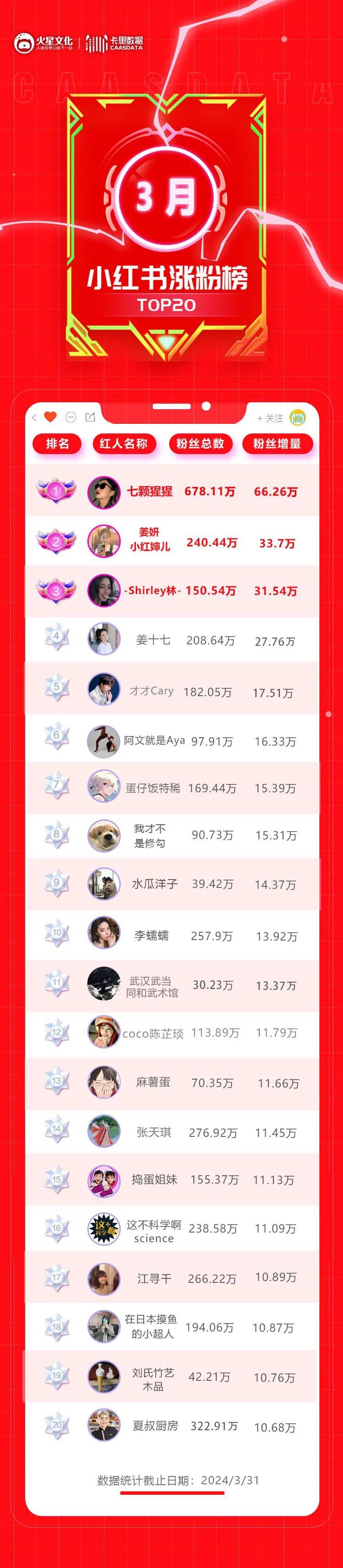 来源:卡思数据 首先让我们来看看3月涨粉榜,对上个月小红书创作者的情况有一个大致了解: ![]() 三月拿下榜首位置的是剧情创作者@七颗猩猩,该账号凭借《重生之我在霸总短剧里当保姆》系列视频在多个平台涨势凶猛,就此迎来了职业生涯的“第二春”。或许是因为团队的成员都比较年轻,@七颗猩猩 账号对热点的把握一直很敏锐,内容的形式与风格也相当多变。3月起,账号紧跟“短剧”热点,拍摄了多条“正常人穿越进短剧”主题的视频,其中以“保姆王妈”的角色最为出圈,全网累计涨粉超过300W,在小红书也拿下了单月涨粉66.26W的好数据。 排名第二的是演员@姜妍小红婶儿,姜妍入驻小红书后一直都维持着较为频繁的更新频率。和很多明星主要发穿搭和生活日常不同,姜妍喜欢在小红书分享各色美食的教程,卖相极佳的菜品让人食指大动,加上亲切善良的性格,让她收获了诸多粉丝的喜爱。进入2024后,其账号更是飞速涨粉,继上个月涨粉30.09W后,本月又涨粉33.7W,保持了很好的势头。 上月的涨粉第三名是美女博主@-shirley林-,在海外留学的她不仅口语相当地道,唱起英文歌来也是悦耳动听。虽然她只是坐在镜头前简单地演唱着歌曲,但表现出的气质却让很多人折服,有粉丝留言“这又是哪个大小姐在给我唱歌”“手机爹,咱闯不进的圈子,就别硬闯了”。颜值赛道从不缺流量,有钱又有颜的大小姐更是如此,面容和嗓音的双重加持下,@-shirley林- 单月涨粉31.54W,从一众博主中脱颖而出。 ![]() @-shirley林- 小红书截图 余下账号中,短剧博主@姜十七 涨粉27.76W,排在第4位,另外16名博主涨粉量均在10-20W区间,和上月相比,博主们的涨粉速度明显下降。除此之外,可以明显看到本次涨粉榜中TOP4的博主涨粉数量与其他博主相比差距很大,开始出现流量朝头部聚集的情况,对普通创作者来说,未来在小红书的竞争只会愈发激烈。 从上榜账号的内容类型来看,3月涨粉榜涵盖了剧情、明星、游戏、知识、家居、测评、美食8个品类。其中,剧情赛道有6位博主上榜,拿回了此前被游戏赛道“抢”走的领先地位,剧情之外游戏赛道有4人上榜,依然有着亮眼表现。其余6个赛道均有1到2位博主上榜,没有明显优势。 接下来,卡思将对3月涨粉榜中几个比较有代表性的账号进行更详细的分析。 @七颗猩猩 剧情创作者如何升级内容? 自2020年起,@七颗猩猩 就开始了短视频创作者的生涯,凭借和朋友们一起拍摄的与校园生活有关的搞笑短视频,账号收获了很多粉丝的喜爱,在搞笑/剧情赛道迅速站稳了脚跟。 彼时,她的作品还停留在“段子”阶段,虽然有很强的幽默性,但大多只是一两个没有剧情的片段,观众哈哈一笑看完后,也不会留下更多的记忆。 ![]() @七颗猩猩 小红书截图 随着短视频赛道的竞争日益激烈,创作者们也在不断“进化”自己的内容。 @七颗猩猩 账号的一大改变是选题范围的扩大。浏览账号的历史视频会发现,除了继续发布校园日常外,团队还会结合不同时期的热点,融入自己创意后进行的二次创作。 比如他们曾模仿过一些经典剧集,将里面有代表性的桥段搬入日常生活场景“还原”,形成的“诡异”反差感令人捧腹,《鱿鱼游戏》《狂飙》《爱情公寓》等大热剧都曾是其灵感的来源;又比如将账号目标受众从“大学生”群体放大至所有“年轻人”,很多作品的主题被定在“恋爱脑”“精致羞耻”“内耗”等时下热议的话题上,尝试在“不严肃”的作品中发表一些“严肃”的观点。 ![]() @七颗猩猩 小红书截图 近期,团队又敏锐地捕捉到“短剧”这一热点,推出了一系列短剧相关的视频,其中以《重生之我在霸总短剧里当保姆》最为知名。 在这个系列的作品中,王志猩的角色是“狗血”短剧中常被“迫害”的保姆“王妈”,日常的主要工作就是替男女主的各种“骚”操作收拾烂摊子:男主发疯扫饭桌,王妈就要一次又一次地重新做饭;男主让女主“冒雨”反省,王妈就得在一旁淋雨撑伞;女主生病请医生,王妈也一定会听见那句经典的“治不好你们所有人都要陪葬”。 短剧中男女主的各种“神经”操作在@七颗猩猩 的作品里被进一步放大,增加了作品的喜剧性,同时,“老实人”王妈化身为万千观众的“嘴替”,替大家狠狠吐槽那些“降智”的老套路: 看到“恶毒女配”强行进门,引发“混战”,王妈坐在一旁吐槽“说了不让她进来,真是班上少了”;照顾失去女主后喝醉酒的总裁,她一边呕吐一边不停抱怨着“这个颠公”;男女主吵架发疯,她还会在一旁替台词“计数”……吐槽的内容可能算不上犀利,但她“有仇当面就报”的性格,给足了观众情绪价值,迎合了时下很多年轻人的需求。 ![]() @七颗猩猩 小红书截图 在卡思看来,其实这系列作品称不上是短剧,因为各集之间的关联性不强,整个故事也没有主线支撑,从本质上来说,和剧情号里常出现的“吐槽短视频”更为接近。但是@七颗猩猩 团队巧妙选择了“剧中人”这一少见的视角,让观众耳目一新,同时因着短剧正火的“东风”,才有了现在大范围出圈的结果。 值得关注的是,从2020年到2024年,@七颗猩猩 的长红打破了短视频世界“大多数达人火不过三个月”的魔咒,着实令人佩服。究其原因,卡思认为最重要的还是其一直在线的内容能力。在他们的视频评论区,有很多粉丝留言称正是因为@七颗猩猩 的段子始终保持着较高的水准,演员的演技也都在线,自
