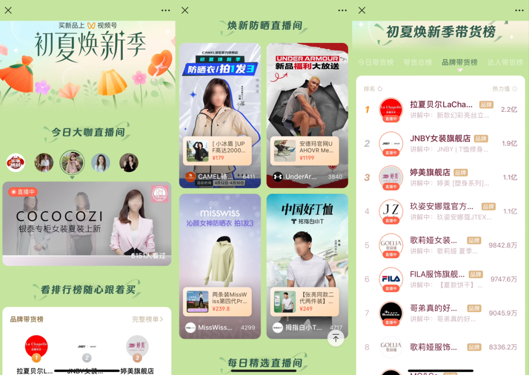 来源:友望数据 清明过后,雨水增加,天气渐暖。对于品牌商家来说,户外踏青正当时,虽然春日营销接近尾声,但也迎来了初夏焕新季。如何借平台活动东风、把握节日热点趋势,成为了商家阶段性营销的重点。 春日出游遇上初夏焕新 应季好价商品热销 春暖花开,风轻草绿,正是最美人间四月天。但对于走在前头的品牌营销来说,现在是春夏交替的时节,要开始下一个节点营销。 近期视频号针对服饰行业上线了“初夏焕新季”活动,活动专栏页展示每日大咖直播间、品牌直播间推荐,以及各类榜单,如今日带货榜、带货总榜、品牌带货榜、达人带货榜等。 ![]() 我们从友望数据「商品排行榜」上发现,冰丝裤、冰丝T恤、速干衣裤、防晒衣等夏日单品开始热卖。 ![]() 以雅鹿冰丝速干裤为例,连续两周在服饰商品榜上名列前茅。 ![]() ![]() 友望数据 - 商品排行榜 我们通过查看其30天的「热度分析」,发现主要是从3月底开始,通过直播带货的方式进行销售。 ![]() 从「带货直播」中可以看出,主要是与达人直播合作的形式。在4月17日时候,与达人“小月远嫁东北”进行了一场品牌专场直播,商品单日总预估销量破万件。 ![]() 除了专属合作外,也有达人从带货中心分销。从「带货博主」可以发现,直播带货次数最多的是一位象棋博主“刀锋象棋”。他直播间主要是讲象棋相关内容,但是橱窗也会带各类商品。近期销量较好的则是雅鹿这条应季的、价格优惠的速干裤。 ![]() 主推爆品 注重搭配 品牌商品销量大涨 在「品牌商品榜」中,我们发现拉夏贝尔上周的销量大涨至前三名内。 ![]() 我们从文章开头,视频号官方的活动榜单中也能看到,拉夏贝尔位列品牌带货榜的榜首。 点击品牌详情,我们从「关联直播」中可以看到,其主要采取了品牌自播的方式。 我们通过观察官方直播间发现,她们的主播会主推几款爆品,循环推荐,并且很注重成套搭配、同一款商品,有不同的sku,也伴随着不同的搭配。 ![]() 加上直播间的背景,浅色系,还有花朵,与春夏的主题以及服装的颜色都很搭,视觉上让人很舒服。 同时,主播很注重与用户的互动。想要的、已拍的、加急的等各种环节都尽可能与用户产生互动。一定程度上也加热了直播间。 我们从上周的「商品排行榜」中发现,拉夏贝尔的两款单品,都在榜单前列,可见在平台活动的曝光与品牌自身运营策略结合之下,直播效果显著。 ![]() 初夏来临 引领食品热度攀升 天气逐渐炎热,一些凉拌菜、捞汁菜又开始“开胃”了。自4月以来,海天凉拌汁销量就开始大涨。 ![]() 从带货博主的行业发布来看,主要是以美食博主为主。 ![]() 除了常规的直播带货外,美食博主最常见的带货方式就是发美食教程,附带商品链接。 ![]() 很多博主会发好几个类似的凉拌菜教程视频,有时候是食材不同,有时候则是一样的再发一遍,但万变不离其宗。 比如田田美食记T,4月以来,就有7条视频带了海天凉拌汁的链接。试图通过多个内容来博爆款视频,以便带动商品销量。 ![]() 友望数据 - 博主详情 近期视频号推出了“灯火人间·人文生活月”主题活动,围绕美食、手工艺、本土艺术等人文领域,鼓励相关领域从业者、专家、达人积极探索创新表达新方式,打造视频号“发现地域人文精神,分享城市人文之美”的暖春生活。 ![]() 在带货海天凉拌汁商品的博主中,就有美食博主迪迪美食优选参与该活动,并且多次带货该商品。 ![]() 从博主的「直播带货分析」中可以发现,近期他热销的品牌商品就是这款海天凉拌汁。 ![]() 一来也是在平台活动助推下,二来也是博主力推该商品,就有了不错的销量。 以上是近期视频号的营销热点趋势以及一些热卖的商品,更多内容可以登录友望数据官网查看。 注:以上数据来自【友望数据】的客观监测,部分数据或受限于监测机制,与实际数据相比可能有所偏差,结果仅供参考。 文章来源:“云略”,未经允许不得转载。 文章代表作者观点,版权归原作者所有,热传平台仅提供信息存储空间服务。 |