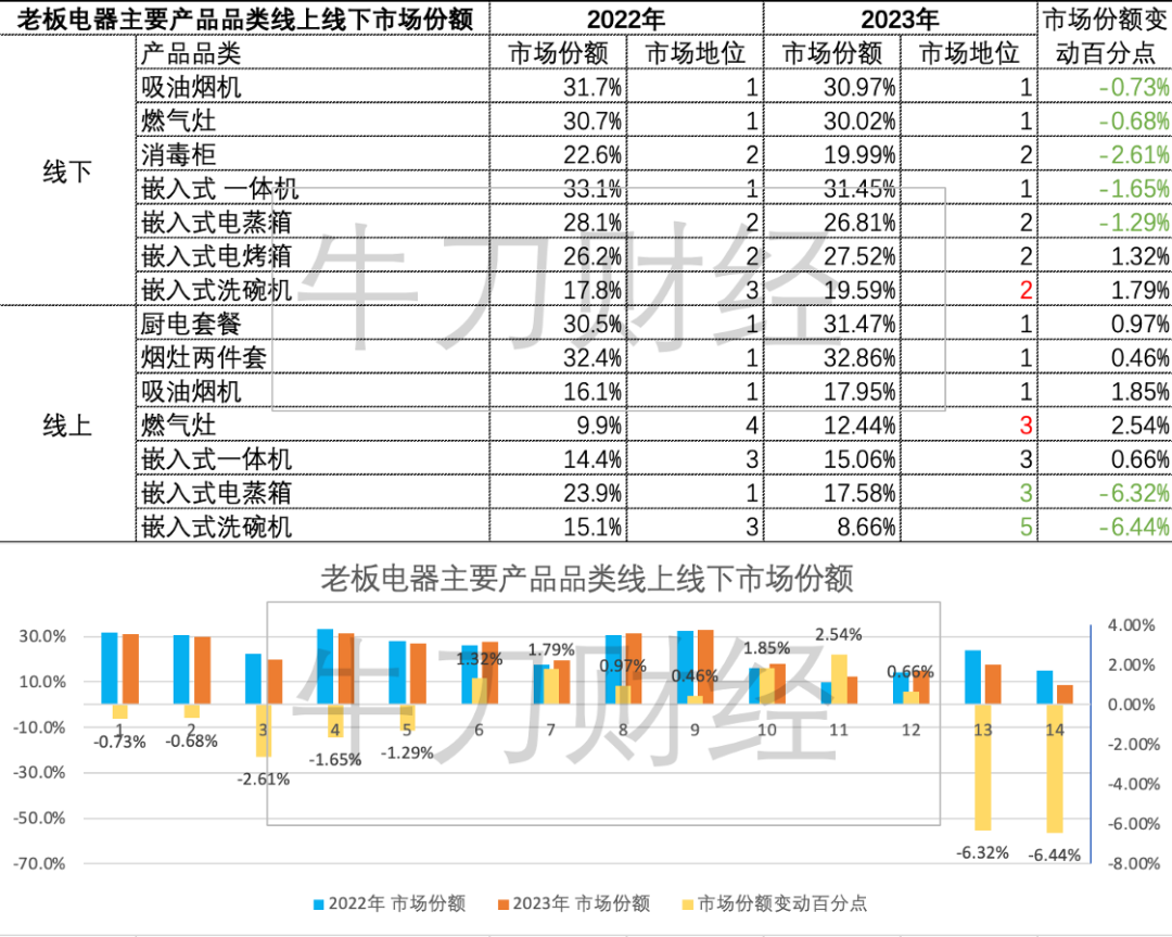 文丨方文 出品丨牛刀财经(niudaocaijing) 老板电器终于发布了2023年财报,此时距离A股市场要求的年报最晚发布期限已经不足一周时间。 市场的一般规律是,业绩好的会率先发布,而业绩较差的会踩着deadline发布。 老板电器拖到“交稿”截止日期,其实市场已经有预期,“成绩”不会太好。 索性老板电器将2023年年报和2024年Q1财报两个都不理想的成绩一同发布。果然,老板电器的增速,已经全面进入个位数时代。 1、低速增长,营收利润增速个位数 老板电器全面进入个位数、低速增长时代。 财报显示,2023年老板电器营收112亿元,较去年同期的103亿元增长9.06%,延续了去年的低位增长态势;归属于上市公司扣非后净利润为15.8亿元,较去年的14.8亿元同比增长7.06%。 看样子,老板电器短时间内还不能够从低迷的市场中回复过来。2022年财报时,老板电器曾经将业绩增速放缓归咎于市场低迷,而到了2023年,老板电器依然未见良好起色。 为了应对市场环境的变化,老板电器在2022年制定了一系列的发展目标,其中包括扩大第一品类优势、领先第二品类、稳步推进第三品类的整体目标,但是从2023年的业绩来看,离实现这一目标还较远。 老板电器的业务一共分为三类,分别是以烟机为代表的烟灶消产品群、以蒸烤一体机为代表的电气化烹饪产品群和以洗碗机为代表的水厨电产品群。从抽油烟机燃气灶起家,老板电器逐渐向烤箱、洗碗机等厨电方向扩展,甚至入局电冰箱这一传统家电业务。 但其实,过去一年老板电器第二、第三品类的新业务业绩都不算好。 ![]() 抽油烟机勉强实现两位数增长,燃气灶实现高个位数增长,而第二品类的一体机、烤箱、蒸箱实现负增长,第二品类业务增速全军覆没。 第三品类中洗碗机实现营收7.6亿元同比增长28%,热水器同比增长21.2%,净水器实现-25.4%的负增长。 值得注意的是,第二、第三品类所有业务加起来营收占比不足15%。这意味着老板电器经过几年的折腾,第二第三增长曲线都没有跑出来。 今年开年,依然没有走出低速态势。老板电器2024年Q1业绩与2023年财报一同发布,营收22.4亿元较去年同期增长仅为2.75%,归属于上市公司股东的扣非净利润为3.5亿元同比增长3.34%,依然低迷。 老板电器在2022年提出2023-2025年再造一个新老板电器,目前来说第二第三次都没有跑出来,2022年老板电器营收突破100亿元,2025年想要实现200亿的营收,从何谈起? 2、对手在外部 老板电器曾经作为工程渠道排名第一的厨电品牌,在近两年地产低迷的态势下,自身的业绩也受到了影响。 反过来,过去享受外部增长的红利,并没有做好自身的转型和升级,尤其是新的环境下,并没有抓住年轻人成为主力的消费趋势。 首先是集成灶业务失算。 集成灶过去几年成为厨电领域里增长最快的品类之一,却被老板电器错过,其高层也公开表示过,集成灶每个产品都不完善,功能不够,不会成为大规模。 到了2022年老板电器才发力集成灶,现在已经享受到了增长的好处。2023年老板电器集成灶业务营收4.6亿元,同比增长20.6%,是所有业务中增长较快的品类之一。 同样,在年轻人比较喜欢的线上渠道,老板电器业绩也不够好。 奥维云网报告显示,线下零售市场吸油烟机、燃气灶零售额较去年同期分别上升6.1%、4.5%,线上厨电产品线上零售额较去年同期上升5.9%,成为推动销售额增长的重要渠道。反观工程渠道,市场规模253.15万套,同比下滑32.9%。 2023年,在老板电器的产品组合中,传统的吸油烟机、燃气灶和嵌入式蒸烤一体机依然能够占据线下市场第一位置,而消、洗、蒸等产品排到了第二位。 线上则是除了吸油烟机排在第一位外,其他单品(不含套装)均只能排到第三。 另外值得注意的是,对比2022年的市场份额可以发现,老板电器线上线下,一半的产品的市场份额呈现出下滑。 ![]() 尤其是,厨电企业的竞争对手其实早就不是同行了,而是原先的家电企业下场做厨电。 可以看到2022年和2023年诸如火星人、浙江美大、万和等原先的厨电企业业绩都比较差,反而是海尔、海信、美的等原先的家电企业,厨电业务成为了一个增长点。 据各家财报显示,海尔2023年厨电业务全球收入416.54亿元,高端品牌卡萨帝全年收入增长超过10%;海信2023年厨电规模同比增长66%,厨电出口规模同比增长250.5%。 即便是老对手方太,根据去年方太的经销商大会公布的内容显示,方太厨电2023年上半年零售目标达成126%,销售额增长20%,实现经营两位数增长。 无论怎么看,老板电器都落后了。 3、股权激励还是分钱? 为了激励企业增长,老板电器还推出了经理人转合伙人计划、股权激励计划。只不过,老板电器的激烈考核标准较低。 据公告显示,老板电器为推动核心管理团队从“经理人”向“合伙人”思维转变,向括董事(不含独立董事)、总经理、 副总经理、高级总监、总监等管理人员提供股票激励。 其中,资金来源为计提的持股计划专项基金。 老板电器的《第二期事业合伙人持股计划》披露,通过公司将按照专项基金提取原则,提取相应2023年扣非后净利润的0.5%作为基础激励基金,划入持股计划资金账户,以持股计划证券账户购买标的股票。 而管理层的激励考核标准,是以年度营收复合增长率5%为触发值,10%为目标值,且年度归母扣非净利润不低于2023年水平。 ![]() 按照老板电器2023年的利润情况,合伙人股票激励基金应该在800万左右。 此前老板电器2021年和2022