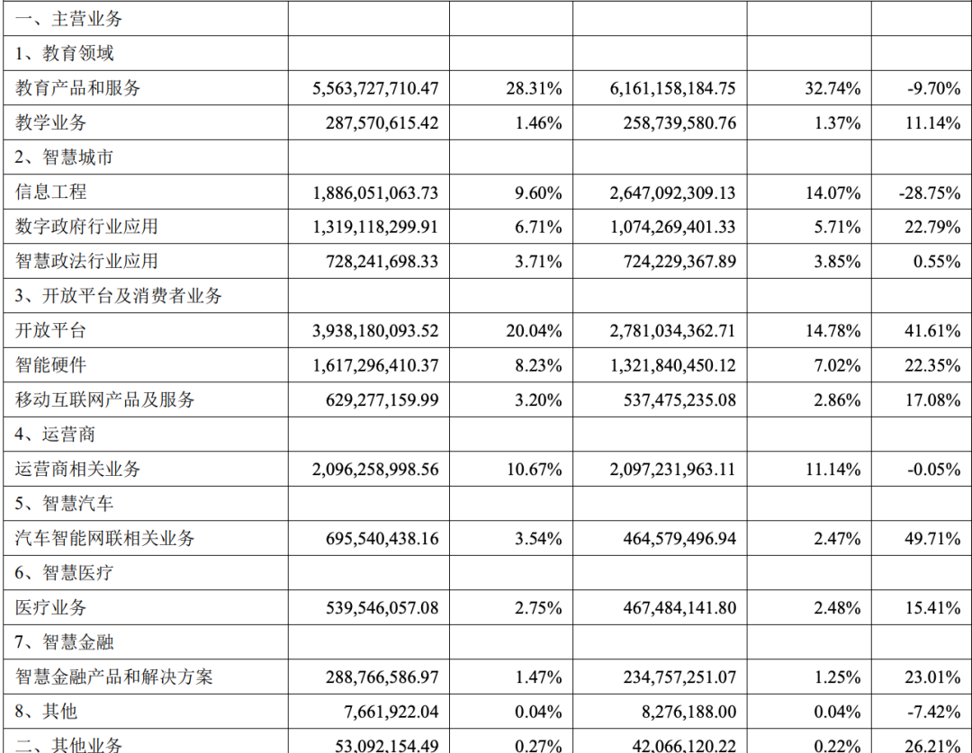科大讯飞透露,将在全国产算力平台“飞星一号”上持续提升讯飞星火通用底座七大核心能力,预计在今年上半年对标 GPT-4 turbo 当前最好水平,下半年对标 GPT-4V 和 DALL-E3 当前最好水平。 在国产算力层面,2023年10月,科大讯飞和华为合作,开发了支撑万亿参数大模型训练的万卡国产算力平台 “飞星一号”。 产业配套方面,科大讯飞的大模型和AI核心技术已经在教育、医疗、智慧城市、 运营商、汽车、金融等行业落地。科大讯飞在财报中透露,2023年共计有20个AI相关的行业项目投入了研发,其中有14个项目已经研发完成。 从AI所需的算力,到布局大模型在行业落地,科大讯飞的“重”投入注定了高成本,在财报中也印证了这一点。 科大讯飞2024年Q1在大模型研发以及核心技术自主可控和产业链可控,以及大模型产业落地拓展等方面,新增投入约3亿元。其中,研发费用8.42 亿元,相对于去年同期增加1.26亿元。 光锥智能在梳理完科大讯飞2017年至2023年研发投入费用及占营业收入比例后发现,七年间内,科大讯飞在研发上的投入持续增长。大模型来了以后(2022-2023年),科大讯飞研发费用占营业收入比例稳步上升,正在逐渐回归2018年的巅峰时期水平。 ![]() (光锥智能制图) 如此高昂的投入,最后给了科大讯飞什么? 基于对标GPT-4的星火大模型,科大讯飞正在进一步增强其生态的属性。截至去年年底,讯飞开放平台开放了647项 AI 能力与大模型技术能力,面向开发者团队开放助手生态、 构建 API 矩阵,全场景开放三方插件市场;同时开展行业共建、双创赋能、高校星火营。 在生态的拉动下,实现了快速的增长。自2023年5月6日讯飞星火发布至2023年底,讯飞开放平台聚集了超过578万开发者团队,同比增长52%。自5月6日星火大模型发布以来新增超过开发者167.6 万,同比去年同期增幅 229%,其中大模型开发者数量超35万。 尽管上述的增长还无法在新发布的财报中体现,但能清晰地看到科大讯飞投入大模型后的想象力空间,第一阶段的提效已经开始,离创造生产力和价值也不远了。 大模型时代 科大讯飞的变与不变 从2016年开始重押深度学习,科大讯飞一直很重视AI和应用的落地,也因此获得了5年业绩翻倍的成果。 在大模型之前,科大讯飞的业绩陷入了增长的困境中,就在这个关键时刻,又抓住了大模型的救命稻草。 “在保持单点核心技术的持续创新和领先基础上,持续拓展科技树的广度和深度”,科大讯飞曾如此阐述其做大模型的思路。 上升到整个AI业务层面,科大讯飞早在2017年就制定了“平台+赛道”的战略。在大模型时代,该战略被重新赋予了内涵,“平台”即讯飞开放平台,为开发者提供AI能力及一站式人工智能解决方案,构建AI产业生态;“赛道”指AI在教育、医疗、智慧城市、 运营商、汽车、金融等重点赛道落地应用,并在AI 学习机、 智能办公本、智能录音笔、翻译机、智能助听器、讯飞听见等C端消费者产品上形成品牌优势和可持续流水型收入。 ![]() 截至2023年底,科大讯飞搭建起了以大模型等核心技术为中心,城市+教育+医疗+消费者+企业的AI生态。 从2017年至2022年,教育领域的业务一直是科大讯飞的第一大现金牛业务,2023年成为了关键的转折。从结果来看,2023年开放平台及消费者业务占营收收入比例略超过教育领域业务,成为了科大讯飞第一大业务,其次是智慧城市、运营商、智慧汽车、智慧医疗、智慧金融。 ![]() (光锥智能制图) 开放平台及消费者业务是目前科大讯飞的第三大业务板块,也是科大讯飞的新兴业务中,增长最快的业务板块,被科大讯飞寄予了厚望。 ![]() 该业务板块具体被分为三部分:开放平台、智能硬件、还有移动互联网产品及服务。 财报数据显示,开放平台业务收入同比增长了41.61%,是科大讯飞增速最快的业务;智能硬件业务收入同比增长了22.35%;移动互联网产品及服务收入同比增长17.08%。 开放平台是当前科大讯飞最活跃的部分,既聚集了庞大的开发者和企业用户,也利用大模型盘活了一些老业务。 例如,在工业领域,羚羊工业互联网平台基于讯飞星火推出工业大模型,可针对企业需求给出专业化建议策略、精准匹配资源,发布后不到一个月时间平台用户总量提升59%,平台服务企业次数增加88%;在代码方向,讯飞星火应用级产品智能编程助 iFlyCode 最新版本可在编程的设计阶段提效50%、开发阶提效 37%、测试阶段提效44%。 C端的智能硬件用AI改造了一遍后也迎来了销售额增长的小高峰,2023年消费者硬件GMV 同比增长 84%;消费者硬件618全周期内销售额同比增长125%,双 11 全周期内销售额同比增长 126%;讯飞翻译机全年销量同比增长超300%。 但对于科大讯飞的老业务(教育、智慧城市、运营商)而言,却呈现出了下滑迹象。2023年,教育产品和服务收入同比下滑了9.7%;智慧城市部分业务收入同比下滑了28.75%;运营商业务下滑了0.05%。 在老业务面临增长乏力的同时,智慧汽车、智慧医疗、智慧金融等业务开始冒头。2023年,智慧汽车业务收入同比增长了49.71%,智慧医疗业务收入同比增长了15.41%,智慧金融业务收入同比增长了23.01%。 智慧汽车、智慧医疗、智慧金融行业利用大模型有一些相似之处。这些行业的场景和需求虽然明确,但存在数据量庞大、特定领域知识要求高和流程繁琐等痛点。大模型的文本总结、概括、分析和推理能力运用后,可以减轻人工的压力,提升工作效率,还能辅助决策