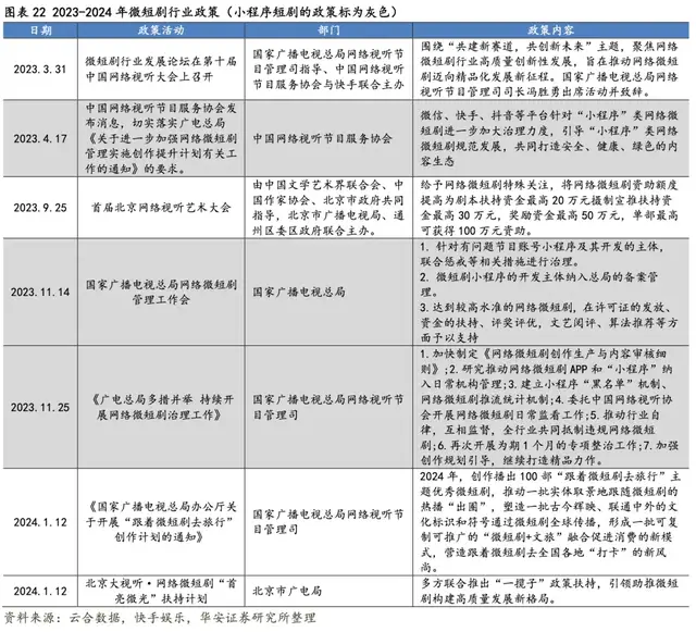 短剧,从边缘到主流 “虽然剧情很俗套,但就是让人欲罢不能。” “我已经七十多岁了,我到底在哪里才能看到大结局,不要再折腾我了” “‘扮猪吃老虎’的感觉实在是太爽了,很容易让人代入到里面,享受爽文人生” …… 这是海外短剧APP——reelshort爆款短剧《我的亿万富豪丈夫的双面人生》(中译名)在国外某视频平台上的用户留言。作为中文在线旗下头部出海短视频APP,Reel Short凭借着诸如《绝对不要和神秘亿万财富女继承人离婚》《我命中注定的alpha》(Alpha即欧美狼人文化里处于金字塔尖的等级)等霸道总裁、女主复仇和狼人逆袭等题材短剧,迅速成为短剧出海的头部APP。 据数据公司Sensor Tower统计,2023年前11个月Reel Short的累计净流水近3000万美元,频频登上美国苹果商店的总榜前三的位置。 ![]() 与此同时,嘉书科技旗下短剧APP——TopShort霸榜日本,成为日本市场短剧收入冠军;九州文化旗下shortTV成为东南亚市场下载量最高短剧APP……近一年来,点众科技《DramaBox》、新阅科技《GoodShort》、安悦网络《FlexTV》、畅读科技《MoboReels》以及《Kalos TV》等40多款短剧应用,密集登陆海外市场,累积创造1.7亿美元内容收入。其中,美国市场更是一骑绝尘,贡献了短剧出海收入的六成以上。 ![]() 某短剧公司创始人坦言,国内外的观众喜好差别并不大,“爱恨情仇这种要素在全球都是通用的”,霸总题材是国际通用的“内容刚需”,只是在身份设定上有所差异。国内用户比较倾向于在商战中傲视群雄的成功人士,而非洲用户偏好农场主、牧场主等“霸总”身份设定。 与海外市场相对应,国内短剧行业起步阶段在2018年左右,抖快短视频平台、爱优腾长视频平台完成短剧业务的最初布局、出品尝试,短剧行业开始在国内市场繁荣生长。随后在2020年8月,国家广电总局将单集时长不足10分钟的网络影视剧定义为微短剧,并将其纳入监管,这也为短剧行业打下爆发基础。 在被称作“短剧爆发元年”的2023年,《哎呀!皇后娘娘来打工》《无双》《逃出大英博物馆》《完蛋!我被美女包围了!》和《闪婚后,傅先生马甲藏不住了》等爆款涌现。尤其是创下“8天消耗过亿”(消耗=用户充值)记录的无双,成为了爆款短剧的“天花板”。 反响热烈的短剧市场,也让短剧概念股也随风而动,华策影视、完美世界、唐德影视等上市公司纷纷对外释放推动短剧业务的信号;微信、淘宝、知乎等手握流量、品牌、IP等不同资源优势的互联网企业,加入战局;周星驰、王晶、高亚麟和咪蒙等明星、网红闻讯出动。 “几十万以前只能做半集剧,现在却能做出一部100集的剧。”在高亚麟看来,“写短剧剧本很难,就像当年的小品。” 据浙江日报报道,在横店,(2023年)每天筹备、开机、杀青的微短剧就有近百部,热门场景五六个剧组同一天拍摄是常态。横店也被戏称为“竖店”。 短剧市场的头部玩家们 三年多时间,短剧从边缘走向主流,商业化路径也逐步清晰,即“短剧市场空间=用户付费+广告+平台分账”。2023年短剧市场规模达到373.9亿元,同比增长267.65%,预计2027年突破千亿,未来超越院线电影市场规模是一个既定事实。 在短剧市场营收结构中,付费短剧市场规模约为207亿(TO C-以用户充值为主),免费短剧市场规模约为166亿 (TO B-以平台分账+广告为主,分账短剧整体市场规模约8亿元,广告市场规模约158亿)。目前,付费短剧依旧是主流变现途径,而未来品牌商业合作的模式将快速增长。 ![]() 正如抖音副总裁陈都烨所说,5亿(短剧)用户里面很大一部分是未被电影、长剧集覆盖的新的人群。 ![]() 但正因短剧门槛较低,同质化、低俗化、不良价值观和粗制滥造的短剧充斥内容付费市场,行业监管政策紧锣密鼓地跟进。去年的11月,广电总局开展为期三个月的专项整治,微短剧小程序的开发主体,除应符合国家有关应用程序提供者和应用程序分发平台的管理规定以外,还应取得信息网络传播视听节目许可证,并依规纳入总局的备案管理。 ![]() 监管之下,行业也开始进入“大浪淘沙”阶段,平台逐步增加跳转站外播出的限制。咪蒙组建的短剧团队“听H岛”制作的《黑莲花上位手册》,因其"渲染极端复仇、以暴制暴的不良价值观,混淆是非观念"等原因被平台下架。过往诸如“战神”、“逆袭男”和“复仇女”等容易出爆款的题材,成了容易踩红线的品类,男频类剧本的量也明显下降。在2023年短剧备案量多达3000部,但最终上线数不到一半,平台自检自筛成为市场最后一道防火墙。 ![]() 而在供给侧层面,过往的混乱格局也得到明确分型,短剧类型可分为四类:长视频平台短剧、短视频平台短剧、小程序短剧(依托抖音、快手、微信小程序)、短剧 APP (番茄短剧、河马剧场、星芽短剧等)。 ![]() 例如在爱优腾芒四大长视频平台中,腾讯视频短剧投入最为突出。去年前三季度,腾讯视频上线了154部短剧,占四大长视频平台半数短剧供给。 ![]() 相较于小程序短剧的“爽文”题材路线,腾讯视频以“烟火气、少年气、新鲜气”作为重要方向,以“十分剧场”短剧品牌为阵地,以及“火星计划”等扶持项目,重点布局“温暖现实主义”短剧,制作水准更接近微电影质感,其中有两部微短剧分账票房破千万。而拥有上游IP版权优势的腾讯系阅文,也推出独立短语APP“奇迹短剧”。 ![]() “我们拿到的本子有两种,一种是平台提供,另外一种就是自己去拿本