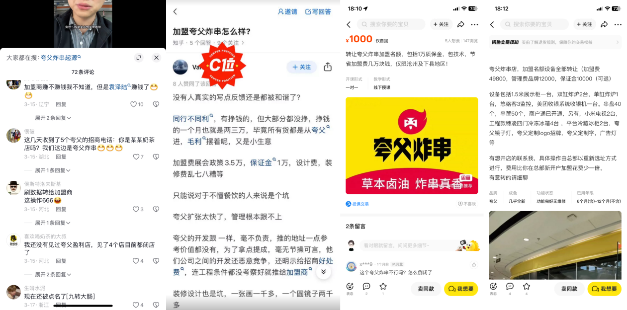 作者/史马 编辑/薛向 出品/壹览商业 “#夸父炸串#你对得起我三个月消费20+次吗? ”“昨天315看到别的都无所谓,看到夸父炸串和淀粉肠我破防了,因为我真吃,这对于一个大馋丫头来说实在是太残忍了 ”“夸父炸串被315之后,我的朋友圈一片鬼哭狼嚎”——这是315晚会曝光夸父炸串食品卫生问题后,夸父“粉丝”在社交平台上发表的集体“感言”。 ![]() 图源:微博 315次日,#夸父炸串被质疑靠吸血加盟商赚钱#冲上热搜,开出超2000家门店的夸父,在抖音、知乎等社交平台早有对其加盟“套路”、不挣钱、挣钱难的“诉苦”声音。甚至有加盟商将二手平台闲鱼当成“翻身”渠道,转让夸父炸串加盟店,名额、设备全转让,试图“低价”止血。 ![]() 图源:抖音、知乎、闲鱼 5年拿到近5亿融资,作为创投圈的“当红炸子鸡”,夸父却被视为近年来小吃连锁总融资额最高的品牌之一。其创始人袁泽陆则定下今年新开3000家、2026年实现万店的“小目标”。虽表示暂无上市计划,但对标品牌“喜姐炸串”去年便递表冲刺“炸串IPO第一股”。以平均每天新增8家店抢跑的夸父,很难不会在融资和IPO上加速度。 炸串赛道规模有多大?仅从头部看,至少超40亿;从整个赛道看,则被业内认为可以往千万级规模以上想象。 那么,在“油锅里狂飙”的夸父,到底是如何被消费者和加盟商“捧红”的?又该如何直面问题、解决问题,以免被消费者和加盟商抛弃? 两千多家加盟店,撑起了夸父的快速扩张,但加盟商“负重前行”、增收不增利,如何修复其对夸父的信心,事关未来能否吸引更多加盟及加盟商的“复购”。进而,关系到接下来的融资和IPO。 而“被质疑靠吸血加盟商赚钱”等问题,涉及的则是夸父模式本质,也是喜姐炸串乃至新茶饮、性价比咖啡等新消费赛道连锁品牌的“通病”。 要开万店的袁泽陆,将如何为消费者、加盟商、投资人和自己解题?在偌大规模、竞争残酷、花样抢跑的赛道里,夸父的潜力还有多大? 年入21亿 据夸父炸串官方公布的数字,其2021年营收近10亿、2022年营收21亿,2023年营收目标为36亿。在一二线城市为主的街头、商场,夸父炸串的门店越来越多,新店排长队也成常态。在微博、抖音等社交平台,夸父的声量也得益于粉丝的爆棚日趋放大。 那么,夸父炸串是如何成功起飞进而快速赢得市场的?其方法论何在? 其一,从“老破小”的细分品类中切痛点,差异化起飞。 由于有过西少爷肉夹馍的合伙创业经验,夸父炸串创始人袁泽路,坚持走“不开大店开小店”的原则,不求高客单价求复购,锁定街头小吃赛道中的细分品类,保证成本可控的同时,让消费者吃得起、愿意吃,即兴消费,不愁客流和复购。 炸串作为街头小吃,多年来给消费者的印象是“老破小”,门头甚至小摊毫无装修美学可言、设备破旧,像极了日常买水喝的夫妻老婆小卖店。 ![]() 图源:网络 虽为“老破小”,但深得吃货厚爱,或与油炸食品能激活人体多巴胺,促进多巴胺的合成和释放,缓解快节奏的工作生活压力“有点关系”。因此,作为“多巴胺加油站”之一的炸串,就有了如同奶茶、咖啡一样的吸引力和复购黏性。 创始人袁泽陆或许没有从多巴胺机制上琢磨得这么细致,但在他看来,客单价不高、选择性多的炸串摊店,若能用品牌策略加以包装,再用连锁加盟模式实现快速扩张,其中的品牌溢价,显然是“老破小”的摊位、小店难以做到的。 ![]() 图源:夸父官网 这可以视作夸父炸串一鸣惊人的“第一把刷子”。用差异化、连锁化、品牌化,强势锁定和重构炸串这一细分品类,想不惊人都有点难。 其二,要做大,做供应链。 夫妻老婆炸串店的优势是极低的成本,而使出品牌、连锁、差异化定位组合拳打法的夸父炸串,要想与小摊位、小门头贴地竞争,同样需要极致地压缩成本,方能获得最大化的品牌溢价后的真金白银。 而做供应链,便是做大的开始。夸父炸串创立不久,便着手建设冷链物流、食材及调味料等上下游工厂在内的供应链条,要么自己出资建,要么合作入股。 ![]() 图源:夸父官网 供应链做大后,夸父炸串也得益于规模效应,有了将自身体量做大的更大资本。因为,基于供应链,可以实现所有加盟门店无需自行采购食材,加工处理也能做到标准化。 于是,“炸串界”的“开封菜”也就能实现大拱门的虹吸能力。短短几年,夸父炸串门店达到2000家。而今年袁泽路要将数量突破5000家,算下来,平均一天要开8家店。没有供应链,想都不敢想。 其三,向全链数字化要竞争力,驱动B、C两端。 多年前,能在星巴克蹭个网都是高端的消费体验。而如今,新消费用上数字化,更是有了超强的作战能力。 夸父炸串发力数字化,先是以B端,即加盟商以及供应链端为主,推出夸父商家客户端,用来高效沟通、高效管理、高效采购,从而降本增效。 ![]() 图源:夸父官网 而在C端。数字化的玩法更“多彩多样”。“花式开店”甚至成了夸父炸串C端的隐形战斗力。基于数字化,实现线上线下形成天地包围圈,开一家店爆一家店的“底座”成为其数字化运营能力的标签。 由此来看,懂网红品牌打造逻辑,用网络品牌包装重塑街头小吃“老破小”的价值,基于对网红品牌打造的深刻洞察与独特理解,夸父炸串是将网红效应从门店到大单品层层渗透,从而实现店火、“串火”。 通过花大价钱买下的“夸父”商标,包装成年轻人乐于接受的国潮IP。加之选址上