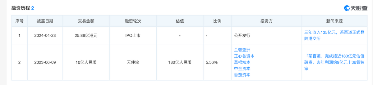 文:向善财经 这次茶百道IPO,算得上教科书式的“灾难级”的IPO。 上市首日,港股盘中一度跌超37%,到24日收盘跌幅仍达33.71%,股价从17.5港元的发行价,跌到11.6港元。 破发之后,媒体惊呼,上市一小时跌没了3年净利润…… 谁能想到,三年之后的新茶饮IPO,还是这个配方,还是这个味道。 2021年奈雪的茶赴港IPO发行价19.8港元,当日随即破发,股价跌了13%,一个月后到7月27日,股价暴跌26%…… 此时此刻,恰如彼时彼刻。 平心而论,比起动辄流血上市的公司,茶百道的业绩表现还是不错的,近三年的归母净利润分别是7.56亿、9.54亿和11.39亿。23年的营收更是破了57亿。 对比之下,同样营收50多亿的奈雪的茶,净利润只有一千三百多万,茶百道业绩还是有含金量的。 为什么茶百道业绩含金量这么高,IPO首日还破发这么严重?新茶饮赴港为何这么会被这么看空? 这些问题,值得深究。 “灾难”级的破发背后,为什么市场不买账? 新股破发总是有原因的,要么就是时间节点太差,市场情绪悲观,要么就是估值太高。 茶百道IPO,这两点原因可能都有。 市场对打新不感兴趣,似乎跟近期港股的市场热情不高有关。上周五开始恒生指数“三连阴”,回调近5%,空头的趋势明显。这个时候新股上市,并非最佳节点。 从估值的角度看,20倍的PE以及30倍的PB可能还是有高,雪球博主“星辰大海的”评价很中肯:“20xPE 30xPB,在这种背景下的港股市场贵到离谱,因为pre-ipo30亿美金,不想倒挂”。 虽然说茶百道的盈利比奈雪要好看不少,但投资人也有话要说,作为市场参考标的奈雪上市后跌了这么多,这个估值究竟划算不划算,答案已经显而易见了。 毕竟,新茶饮过去的估值泡沫还没出清完毕,又有多少人敢于在这个时候坚持看好未来增长? 大家心里更没底的是,茶百道能火多久,增长能持续多久?或者换个角度,用管理层的话术翻译一下就是:茶百道的差异化究竟在哪? 在我看来,新茶饮这个赛道,是很难真正意义上做出差异化的。 传统茶饮的差异化,本质上是人群的差异化,或者叫购买力的差异化。龙井跟毛尖的差异在哪?是产品力?其实都不是,最大的差异其实是购买力差异。 奶茶、果茶这几个大众消费的品类,最难做出差异化的原因是购买力太大众了。所以市面上竞争到一定程度,就一定会有严重的同质化。 因此,茶百道管理层始终需要回答的一个问题是,你有什么是自己能做到,而别人做不到的优势? 是品牌吗?恐怕不是。 新消费品牌能够快速建立起品牌认知,但很难真正建立起品牌壁垒,因为品牌壁垒不光是要有让消费者记得住的产品,也要做大量的营销投入。 可口可乐的品牌壁垒够强吧?那是因为可口可乐是世界上最舍得投广告费的公司之一,营销费用常年在销售收入的30%。农夫山泉也差不多,2023年营收426亿,销售费用92.84亿。 而茶百道呢,2023年营收57.04亿,销售费用只有1.31亿。当然,茶百道是赚的加盟商的钱,营收95%来自销售货品及设备,4%是加盟费。 ![]() 换言之,茶百道其实是靠给门店卖货赚钱,模式上更像瑞幸。 但问题是,瑞幸某种意义上在咖啡赛起到了一个教育市场的作用,让很多人认识到原来咖啡也可以这么便宜,所以,在咖啡这个品类中,除了星巴克,瑞幸是有自己独特的品牌生态位的。 茶百道不是这个市场的引领者,也就没有品牌红利,同样都是果茶和奶茶,我可以买霸王茶姬,也可以沪上阿姨,消费认知中大家其实都不差。 所以,在品牌上要想站稳优势,甚至支撑起二级市场的高估值,长期的高额营销费用投入必不可少,显然,目前的茶百道还做不到。 那么,是门店渠道吗? 恐怕也不是,奈雪门店也不少,可为啥股价还破发得厉害?所以,这么高的溢价,还是要给一个大家都认可的理由。 开门店这个事儿,本质上是个资金的问题,有钱了就能在好的地段开门店,产品做得不差,生意也不会太差。 所以,做门店终端,为的是做大营收和市占率,让财务数据好看一些,并非真正意义上的经营壁垒,因为你辛辛苦苦做起来的份额很容易就被后来者用低价打穿。 最后,最终优势会是产品吗? 也许是,但产品上玩出的花样再多,也不能算作是优势,因为果茶和奶茶的研发成本不高,也几乎没什么壁垒。 既然品牌渠道产品上,茶百道都没有足够的说服力,那么20倍的PE又怎么会有说服力呢? 的确,茶百道之前的估值确实很高。天眼查APP融资信息显示,2023年6份的天使轮融资,投后估值180亿人民币。 ![]() 但实际上,机构信的故事,市场未必真的信。 这轮茶百道请了11家机构发售股票,中资券商有中金国际、招银国际、建银国际等机构、外资机构有花旗。请了这么多“救兵”,最终结果是获得1.11倍认购。 从认购的情况看,市场的反馈还不错。这次IPO,茶百道全球发售1.48亿股,根据披露的信息,中签大部分是甲组的投资者(金额小于或等于500万港币的投资者),乙组的大户投资者总共认购了190万股。 有热心的网友帮投资人算了一笔账:如果按照收市,跌26.86%计算,甲组的投资者中10万股要亏损47万,乙组买100万股的投资者要亏470万。 茶百道这波IPO,属实让投资者亏麻了…… 所以摆在管理层面前的问题还是那个问题,要用怎样的差异化优势来支撑茶百道在二级市场的估值和定价?这一点是需要深思的。 茶百道破发,最难受的是雪王和沪上阿姨 茶百道破发至少说明了一件事,港股市场似乎对于茶饮这个品类不买账。 有人可能会说,谁说港股对消费品不买账?这么多年