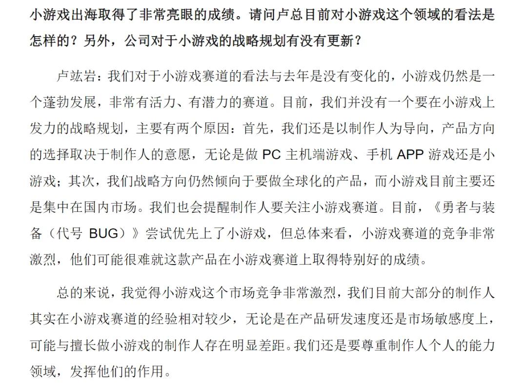 来源:游戏陀螺 近段时间,上市游戏公司陆续公布2023年度业绩报告。整体来看,上市游戏公司发展情况较去年有所改善,但仍承受着较大的生存压力。基于此,他们也在寻求新的生机,如布局小游戏新赛道,研究AI的实战应用,探索中东北非新兴市场等。 那么,过去一年各大上市公司新赛道、新市场布局情况如何?财报中他们还透露了哪些信息?近期游戏陀螺重新捋了一遍上市公司的财报和业绩会,并整理了一些企业提到的产品流水、小游戏、AIGC、中东北非市场信息,以期让大家更清晰地看到企业的经营状态。 产品流水:16款游戏年收入过亿,SLG品类吸金强,MMO长线稳健 在已公布2023年业绩的上市游戏公司中,我们整理了青瓷游戏、神州泰岳、IGG等8家公司22款主要游戏的流水数据。其中有16款游戏年收入过亿,且收入靠前的大多是熟悉的面孔,如神州泰岳的《旭日之城》《战火与秩序》、IGG的《王国纪元》、网龙的《魔域》、青瓷游戏的《最强蜗牛》等。 ![]() 这些游戏中,有一部分是本身质量过硬,同时上线数年依然通过稳定地优化更新来保持用户留存,如《旭日之城》;也有些上线时间短,但依靠高品质强营销虏获高人气与高收入,如《以闪亮之名》。 从营收情况来看,大部分厂商还是靠老产品在打天下。品类上,SLG仍是最稳定且最吸金的品类,16款年收入过亿的产品中,SLG占据了半壁江山。 其中,神州泰岳旗下壳木游戏推出的《旭日之城(Age of Origins)》年营收最高达到31亿元。该游戏2018年上线后一直稳居年度出海收入排行榜前列。据神州泰岳透露的消息,《旭日之城》游戏季度流水从2023年第一季度的7.38亿元增长至第四季度的9.26亿元,目前流水正在稳定增长中。另一SLG游戏《战火与秩序》上线已达8年,流水依然保持在高位区间,实现营收11.35亿元。这两款游戏也让神州泰岳在没有新品上线的情况下轻松实现“躺赢”。 ![]() ![]() 同样的,IGG的SLG游戏《王国纪元》去年也获得了31亿港元(约28.73亿元人民币)的收入。该游戏上线至今已有8年,累计贡献超300亿港元收入。在这一游戏之后,IGG还推出了《Doomsdayast Survivors》《Viking Rise》两款SLG游戏,并且进行了大规模地投放。目前这两款游戏年收入分别为7亿港元(约6.27亿元人民币)及4亿港元(3.78亿元人民币)。 IGG在财报中提到,《Doomsdayast Survivors》于2021年8月推出后便虏获了3300万用户粉丝,2023年年初月流水突破8200万港元,2024年3月月流水攀升至1亿港元。而《Viking Rise》目前流水也处于上升阶段,这两款游戏或有望成长为IGG营收新支柱。 ![]() 需要注意的是,智明星通的两款SLG游戏成绩也很不错,其授权腾讯开发的《列王的纷争(COK)》游戏年收入4.73亿元。自主研发运营的SLG游戏《The Walking Dead:Survivors》去年月活用户数量超过了《列王的纷争》,并且成为新的营收主力,年流水5.38亿元。 ![]() SLG之外,MMO产品输出也很稳健,青瓷游戏的《新仙剑奇侠传之挥剑问情》、网龙的魔域(端游)、电魂网络的《梦三国》系列端游年收入均过亿。同时我们也发现经典端游产品回暖。在年报中,金山软件、网龙、电魂网络都提到端游产品的高收入。 金山软件去年实现4.8亿元净利润,原因之一便是端游《剑网3》收入增加。网龙的魔域系列去年也实现了大幅增长。端游《魔域》收入同比增长14%至29亿元,并在互通的手游版本中,实现月活用户和游戏时长双双增长50.4%。电魂网络在财报中表示,《梦三国》系列端游的营业收入仍占总营业收入的 65.07%(约为4.4亿元)。 在我们看来,依托高水准的内容迭代,经典端游的生命周期和创收能力强劲。今年各大企业加速布局游戏的多端互动,端游回暖趋势明显,而这也许会是厂商发力的方向之一。 小游戏:腾讯流水增速50%,中手游净赚6亿,心动观望,吉比特试水 毫无疑问,小游戏已成为游戏厂商竞逐的赛道,并且这一赛道也确实让不少企业赚到了钱。在已公布2023年业绩的游戏厂商中,有超10家提到了小游戏赛道布局。部分厂商已深入其中,并且取得了不错的成绩,如腾讯、中手游、掌趣科技;部分则正在积极布局或试水,如青瓷游戏、君海游戏、完美世界、友谊时光、心动、吉比特等。 腾讯在年报中提到,小游戏的总流水增长超过50%,微信小游戏已成为中国领先的休闲游戏平台。在电话会议中,腾讯管理层也表示目前没有看到小游戏和APP游戏之间有任何蚕食,APP游戏付费用户只有个位数百分比是小游戏的付费用户。近期,微信小游戏平台也在扩大其用户规模,不断向厂商递橄榄枝。 中手游是少数直接给出小游戏具体收入的厂商,其在财报中表示,2023年公司小游戏业务收入超过6亿元,主要来自《九州仙剑传》《全民枪神:边境王者》等产品,小游戏已成为中手游新的业务增长点。 ![]() 中手游认为小游戏扩展了轻度游戏玩家的数量,提升了新增用户及活跃用户规模,2023年中手游新增加约9290万注册用户,累计注册用户达到7亿。今年中手游计划推出包括《乡村爱情之经营人生》《新仙剑奇侠传之挥剑问情》《火影忍者:木叶高手》在内的超过10款小游戏产品。 掌趣科技、完美世界、青瓷游戏、君海游戏、友谊时光都表示正在积极布局。掌趣科技提到旗下小游戏产品《大圣顶住》在上线后取得良好的流水表现,未来陆续将有新的小游戏产品逐步上线。完美世界在业绩会上表示,公司一方面是制作原生轻量级小游戏,另一方面是将符合