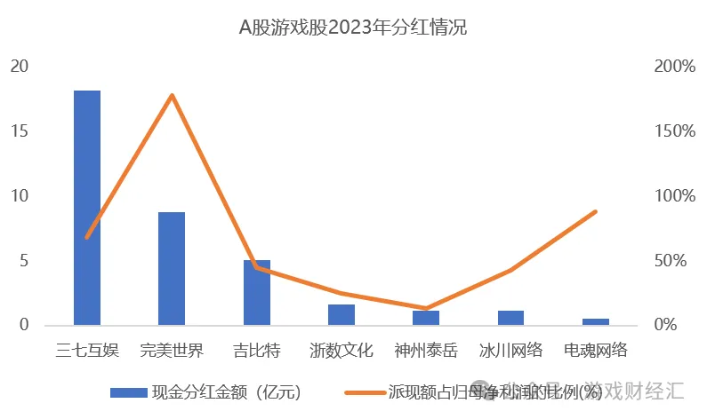 来源:DataEye 2023年A股游戏股财报陆续出炉,我们发现:今年游戏股发生较大变化: 比如,一向“豪气”的吉比特分红大缩水; 再如,世纪华通旗下点点互动2023年海外收入冲进前五; 又如,三七互娱2024年计划一年分红4次。 2023年A股游戏股表现如何?“新国九条”背景下,有哪些新看点? 我们来盘点已披露财报的7家A股游戏股的财报,揭秘“成绩单”中的新看点。 一、游戏股分红盘点:三七互娱全年现金分红超18亿,吉比特分红大缩水 “新国九条”背景下,上市公司分红成为关注点之一。已经发财报的A股游戏股表现如何呢? (一)2023年A股游戏股现金分红盘点 根据游戏财经汇的不完全统计,截至目前,有7家A股游戏股发布了2023年财报。 从2023年全年分红情况来看,三七互娱现金分红达18.12亿,是2023年分红金额最高的A股游戏股,完美世界分红总额超8亿,吉比特超5亿,浙数文化、冰川网络、神州泰岳分红总额均超1亿。 ![]() 来源:公司财报;游戏财经汇制图 值得关注的是,三七互娱在公告中宣布了2024连续季度分红计划,拟2024年第一季度、半年度、第三季度结合未分配利润与当期业绩进行分红,每期不超过5亿元,合计不超过15亿元。 4月29日,三七互娱发布公告,预计2024年第一季度现金分红金额约为4.66亿元,预计第一季度现金分红金额占当期归母净利润的比例将高达75%。 这也意味着,三七互娱的分红频次将从原本的半年一次提高为每季度一次。这也是新“国九条”发布以来,A股首家提出连续季度分红的上市公司。 (二)2023年A股游戏股收入、净利润盘点 那么,这7家游戏股2023年业绩表现如何? ![]() 来源:公司财报;游戏财经汇制图 ![]() 来源:公司财报;游戏财经汇制图 综合来看,神州泰岳、冰川网络增速较快,吉比特、三七互娱表现稳定,而完美世界、电魂网络则是下降明显。 其中,三七互娱2023年实现营收165亿元,归母净利润26.6亿元,两项指标均连续两年蝉联A股游戏股之首。 (三)A股游戏股现金分红原因分析 通过上面的分析可以发现,已披露2023年度分红预案的A游戏股主要分为两类: 第一类,“大手笔”分红。代表公司:三七互娱、完美世界、神州泰岳、浙数文化。 上述游戏股大手笔分红的原因主要有两点: 一方面是积极响应新“国九条”要求,加大对投资者的回报力度,提振投资者信心。 新“国九条”对上市公司现金分红提出要求。其中重点提到“增强分红稳定性、持续性和可预期性,推动一年多次分红、预分红、春节前分红”。近日,三七互娱提出计划一年分红4次,正是对该政策的响应。 另一方面,部分游戏股2023年净利润大幅提升,使得公司有能力实现“大手笔”分红。 比如,神州泰岳、浙数文化2023年归母净利润分别同比增长63.84%和34.91%,相应地两家公司2023年分红金额也有所提升。 第二类,暂时选择减少分红。代表公司:吉比特、电魂网络。 吉比特由于2023年收入、净利润双降,加上公司考虑到后续储备项目的发行投入、海外业务发展资金需要、回购计划执行资金需求,故2023年分红总额仅为5.04亿,还不到2022年的一半。 电魂网络2023年归母净利润同比下滑超70%,故现金分红约5000万元,远低于去年同期的1.99亿元。 二、游戏股出海盘点:5家跻身海外发行商TOP30,《Puzzles&Survival》累计流水超100亿 1、2023年A股游戏股海外收入盘点 从海外收入看,已披露财报的7家公司中,三七互娱、吉比特2023年海外收入与去年同期变动不大,神州泰岳、冰川网络大幅提升,完美世界、浙数文化、电魂网络则出现大幅下滑。 ![]() 来源:公司财报;游戏财经汇制图 从海外收入的金额来看,三七互娱位列第一,海外收入超50亿元,神州泰岳第二,海外收入超40亿元,其余游戏股海外收入均不足10亿。 从海外收入占比来看,专注游戏出海的神州泰岳海外收入占比最高,三七互娱海外收入占比达35%。 2、2023年A股游戏股海外发行收入排名 根据Sensor Tower数据, 2023年中国手游发行商海外收入榜TOP30,有5家A股游戏股上榜。其中,三七互娱位列第3,世纪华通旗下点点互动第5,神州泰岳旗下壳木游戏第7,宝通科技旗下易幻网络第27,游族网络第30。 5家游戏股中,除了游族网络,其余4家海外收入排名较2022年均有所提升。其中,点点互动凭借冰雪末日策略新游《Whiteout Survival》,2023年海外收入排名上升13位,跃居收入榜第5名。 从月度排名来看,根据data.ai数据,三七互娱、神州泰岳、冰川网络表现稳健,世纪华通、宝通科技受爆款产品推动排名大幅上升,游族网络高开低走。具体来看,三七互娱2023年海外收入排名稳居TOP4,神州泰岳稳居TOP10,冰川网络在25名左右。 ![]() 来源:data.ai;游戏财经汇制图 从产品维度来看,根据Sensor Tower发布的2023年中国手游海外收入榜,A股游戏股旗下4款产品入榜。三七互娱《Puzzles & Survival》位列第5,累计流水超百亿,点点互动《Whiteout Survival》第7,壳木游戏《Age of Origins》《战火与秩序》两款产品入围。 3、2023年A股游戏股海外新品及模式分析 从新品表现来看,过去一年,点点互动推出的冰雪生存SLG《Whiteout Survival》表现最为突出,堪称2023年出海黑马,三七互娱在韩国市场上线的MMO手游《데블 M》表现稳健,此外《小妖问道》在中国台湾、美国市场表现出色,吉比特海外新品表现平平,神州泰岳、完美世界、冰川网络海外新品寥寥。 从模式来看,2023年A股游戏股出海“路径”主要有以下几种: 路径1:【国内小游戏→国内APP→出海港澳