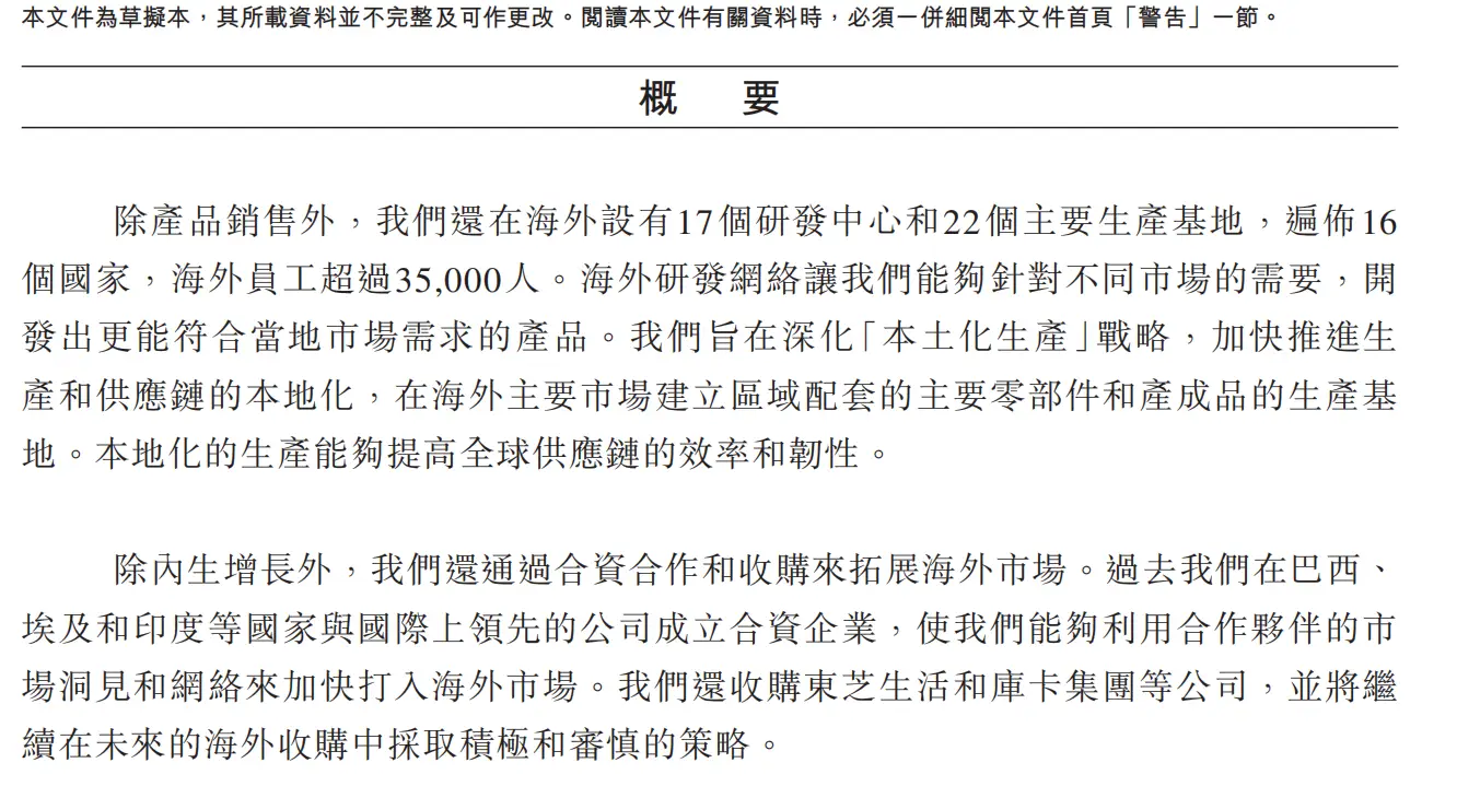 作者/史马 编辑/薛向 出品/壹览商业 美的又向港交所发起冲击了。 4月29日,据港交所披露易显示,美的集团提交上市申请。这是继去年10月24日后,美的集团第二次冲刺港交所。 ![]() 图源:港交所 披露易网站 巧的是,当晚美的集团发布了其2024年一季度报告。报告显示,其实现营业收入1061亿元,同比增长10.22%,净利润为90亿元,同比增长11.91%,扣非净利润为92.37亿元,增速20.39%。此前3月27日美的集团发布的2023年年度报告则显示,其年营收实现3737亿元,同比增长8%,实现归母净利润337亿元,同比增长14%。 ![]() 图源:美的集团2023年年度报告 另外,年报显示,其账上现金816.73亿元,应收账款166.46亿元。 由此来看,一个业绩双增、账面“不差钱”的家电巨头,缘何一次不成、还要再冲一次港交所? 资本市场喜欢听故事不假,但经历了浮躁洗礼后,即便是投资者也开始务实。当审视一家企业时,不再只看其风光的表面,而是要细究其资本运作背后的真实动机。 美的集团,执着于“A+H模式”意欲何为? 在美的集团递交的新版招股书中,美的集团将自身标称为“我们是一家全球领先、技术驱动的智能家居和商业及工业解决方案供应商。” ![]() 图源:美的集团招股书 这个含有“技术驱动”的标签显然比“领先的家电企业”这类说法,更具“含金量”。但自从美的集团按下“技术驱动”的“快捷键”,其“科技大厦”的高高筑起背后,实则离不开美的集团发家至今擅用的“收购策略”。 技术驱动,技术是前提。 目前美的集团的主业“家电行业”,在存量时代技术同质化状态下,很难凭借“颠覆式创新”的差异化来提升一家家电巨头的科技“含金量”。 尤其是美的集团所依仗的白电行业,更是凸显其技术演变进入漫长周期的产业特性。例如,洗衣机除了波轮便是滚筒,空调有定频、但变频成主流,冰箱也是要么直冷、要么风冷无霜……可以说,大的技术为行业定了“调”。 美的显然明白,核心技术难有大变化,便意味着营收、利润等一如庄稼人在天气不出现大变化之下,便能对年产多少斤麦子、玉米盘算对十之八九。 问题正是,家电行业增速放缓这一带有极强警惕性的“天气预报”,给美的集团迅疾带来极大危机感。而另一块天地,却似乎给了美的集团未有过的体验。 这就是To B。对于抛出“寒冬论”的美的集团掌舵者方洪波而言,或许是再恰当不过的发力点了。 相对于家电产业的边界,单独把To B作为一个整体拎出来,确实没有边界感。这就为美的集团的“技术驱动”找到了靶向。于是,围绕To B业务,几年的工夫,美的集团挥金如土用“买买买”迅速织就了一张To B的网。 ![]() 图源:美的集团招股书 上图来源于美的集团新版招股书所列其业务板块,这中间,实际上在To B领域,多是“买买买”的结果。如,从引起国内外行业高度关注的跨国收购库卡机器人开始,随后接连收购意大利克莱沃、尤里卡、以色列高创、菱王电梯等多家企业,进而并入到美的集团相应的To B板块。而无论是美芝、威灵、美仁、东芝、合康、日业、高创,还是东菱、万东医疗、科陆电子,在“各司其职”作战于美的集团To B阵营时,实际上,于整个美的集团宏观战略布局而言,“技术驱动”已然藉此有名有实了。 但无论是对这些满载“技术”的“心头好”,进行日常维护、运转所需的人力物力财力支出,还是B端技术日新月异、更新换代更快的现实,无不意味着,美的集团要永葆“技术驱动”的企业新面貌,势必离不开越来越多、持续不断的资金注入来保持技术的“含金量”不会缩水,或是通过更多“买买买”来构筑更大的“技术驱动”护城河。 那么,“买买买”是美的执着于要实现A+H结构的唯一意图所在吗? 代工业务占比高、毛利率水平低,逆转海外局面或更离不开“钱钱钱” 美的集团急于赴港上市,或还与这艘巨轮在出海布局的方方面面,都需要“钱钱钱”有关。 尽管海外布局多年,但相较于海尔智家、海信等同业,美的集团更多困在代工业务为主的路径依赖中,致使其出海业务毛利率水平过低成为亟需解决的问题。 以2022年为例,美的集团官方数据显示,其OBM(自有品牌)业务模式下的收入占海外智能家居收入的比重首次超过40%。这个数据则从另一个角度说明美的集团约六成的海外家电收入,仍然是以OEM为代表的代工业务实现的。 这带来的则是一个关系其海外盈利能力的灵魂拷问,即,如何提升毛利率水平?根据Wind数据,针对三星、索尼、松下、海尔、海信以及美的集团这六家企业的毛利率水平,美的集团以24.12%位列最后。其他五家体量相近的巨头,毛利率水平则在24.24%至41.08%之间。 这就又将美的集团面临的问题拉到了海外——如何在“海外再造一个美的”? 面对国内主业增速放缓,美的集团为了在国内造出“以技术驱动”的“新美的”,其数年如一日不惜代价买买买,建立了“技术驱动”的To B板块。 但是,在海外市场,即便是美的集团所在的主业家电行业本身,也早就离不开技术“含金量”或品牌竞争力带来的溢价能力。 以技术为例,支撑三星高毛利率的是其一直以来在半导体领域的领先;而索尼则是凭借其深耕多年的影音技术保证其毛利率处于理想水平。即便是本文所说的“大技术定调”的白电,松下仍然凭借将技术做精做细、持续朝高端发力,虽然并未颠覆一个品类,但在白电领域却以实打实的高端,构成了国内家电巨头难