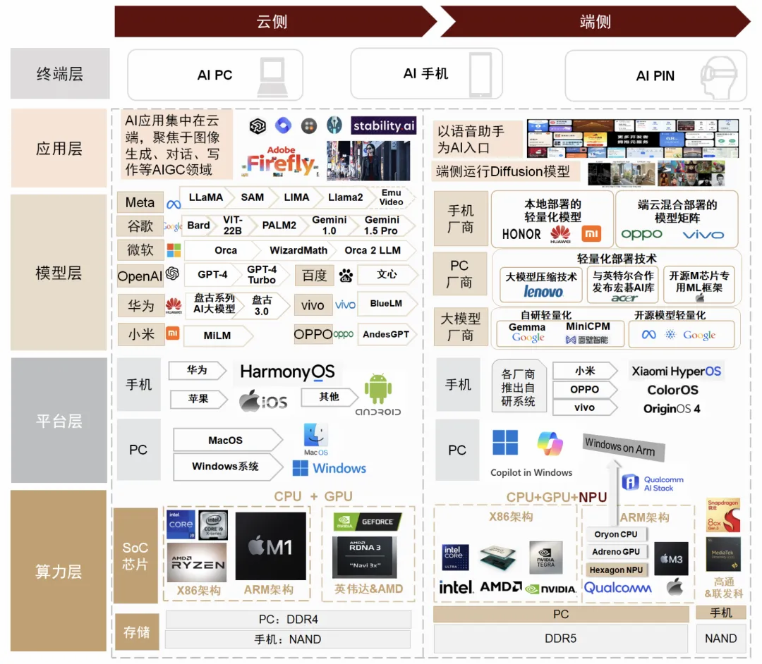![]() (图源:联想集团) 所以,4月举行的2024联想创新科技大会上,联想带来了内置个人智能体“联想小天”的 AI PC系列产品,并且确立了内嵌个人大模型与用户自然交互的智能体、配备CPU/GPU/NPU相结合的本地异构算力、建立个人知识库、连接开放AI应用生态、保护个人数据和隐私安全等几大特征。 这不是埃尼阿克式的创新,但对AI的未来发展而言,联想站在AI PC的“造物主”行列里,成就绝不会低。 新物种时代:智能体 今年1月的CES 2024上,Google Brain创始人、斯坦福大学副教授、OpenAI首席执行官山姆·奥特曼的老师吴恩达,和斯坦福大学Human-Centered AI研究所联合主任、谷歌云(Google Cloud)前人工智能/机器学习首席科学家李飞飞,进行了一场举世瞩目的对话。 双方一致认为,人工智能将在2024年继续深化,成为“下一次数字革命或工业革命真正的变革性驱动力”。但双方分别提到了对个人来说更有价值的一点: 吴恩达认为:“在你的笔记本电脑、个人电脑或工业 PC 上运行边缘人工智能,这方面的能力实际上比大多数人认为的要好得多。我认为这将推动很多设备的销售,也将推动很多计算机科学的发展。” 李飞飞则认为,人工智能实际上会替代具体的“任务”(task),而不是整个工作岗位(job)。 一个是AI PC的使用方式,一个是具体的工作逻辑,合在一起,就为普通人指点了迷津。 首先,AI PC具备“端”的价值。过去这些年,智能手机离普通人更近,PC总是扮演上班工具的角色。这是因为,很多人其实并不需要用到PC的高阶性能或配置,英雄没有用武之地。 ![]() (图源:中金公司) 但是可以预见,因为大模型和AI技术的介入,PC溢出的能力将得到更多利用。甚至对现实的端侧应用来说还不够,还需要加码——有多大算力,办多大的事儿。所以,联想提供了CPU/GPU/NPU相结合的本地异构算力。搭配上引入端侧智能体,人人都有可信可靠的AI。 这不是说PC加上大模型就变成了AI PC,而是说在大模型的引导下,普通人将能更多发挥硬件的潜能,进而带动PC和大模型的升级。当然,端侧布局的安全性也明显提升,尤其是对企业级应用而言。 其次,要激活“端”的价值,需要“云”的协同。更确切地说,是需要一个符合AI时代需求的基础设施网络的支持。中金公司指出,若只依靠云端算力支撑模型推理,成本及能耗会显著增加,所以端侧有独特的应用驱动价值。而同时,如果是企业级的复杂应用,能和云侧部署的通用大模型协同工作,创建一个AI全能覆盖的空间,自然会让AI PC更聪明。 联想从2017年就开始基于“端-边-云-网-智”新IT架构着手全栈AI布局,目前已成为中国首个完成全栈AI布局的AI解决方案与服务提供商。而且,联想在自身具备丰富的AI服务器、AI存储等高性能计算产品的基础上,提供了智能混合云平台、AI平台工具等服务支持,提升了端云协同的潜力。 最后,贾维斯之所以是贾维斯,是因为能力,而非酷炫的操作方式。AI PC的价值要让更多用户看到,不但要“复刻”通用大模型和云端智能体的功能,还要和PC应用结合起来,创造感官体验的直接进步。 ![]() (图源:联想小天) 这是联想AI PC个人智能体——“联想小天”的领地。“联想小天”既可以实现通用大模型智能体擅长的绘画、PPT制作、文档处理等能力,还能和PC宿主的使用情况相结合,提供即时型服务。“联想小天”是一个智能体,PC本身也有智能化能力,通过和“联想小天”的自然语言交流,用户的需求和工作就会被拆解、规划、执行。 如果是企业版,企业智能体会分散入企业系统内的多个终端,宛如一支AI“军团”,将所有的数据信息管理利用起来,变成生产力。 这就是李飞飞所说的,人工智能对任务的替代,也是普通人能和AI PC擦出的火花。下一个时代,我们将和智能体共生。 后中争先 如果按最初创造PC、AI这些事物的人的想法看,今天的所有人,都是后来者。因为,那一个引爆世界的想法早就酝酿出来了。 但是,我们一般褒奖敢为天下先的行动,是因为我们赞誉他们的突破性。而从实际行动来说,时代不会总是给天才写“爽文”,第一个吃螃蟹的创新者,往往很难把实际行动贯彻到十年、二十年之后。它们大多只能开路,无法远征。 相反,贡献最长久的,是和行业一起走了很远的人。在恰当的时候,这些人和企业会推动天才想法落地,变成社会的生产力,这就是“后中争先”。它之所以如此演化,是因为技术和商业的发展,都要遵循周期的规律。 比如,在大模型初生之时,百亿千亿的参数量是无法放进PC的。但是,谷歌和Meta这样的公司用轻量化思维,创造了7B参数量的Gemma模型和Llama模型,并且不断迭代。而目前,联想在端侧的模型大小也约为7B,由异构算力共同决定。不经过模型压缩的过程,超大参数模型也落不了地,AI PC很难向应用的完全体靠拢。 ![]() (图源:中金公司) 另一方面,联想在端侧和基础设施侧都具备巨大优势——全球PC市场占有率第一,全球平板电脑前三,AI基础设施全球前三,科学计算供应商全球第一。这些成就的取得,经历了漫长的建设。没有这些时间和贡献,就不会有AI PC的发展,和“一体多端”战略的贯彻。 这个世界浮躁地追逐概念,但联想沉稳地守护了整个PC时代的发展,直到成为AI PC的定义者,将未来的画卷徐徐铺开。 几十年后,奥斯本只留给世界一个传奇,但世界正在回到奥斯本想象的轨道上来,只是接棒人已经变成了联想这种差不多同时代存活下来
