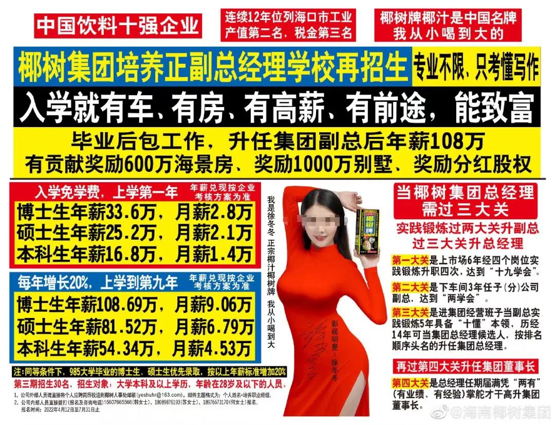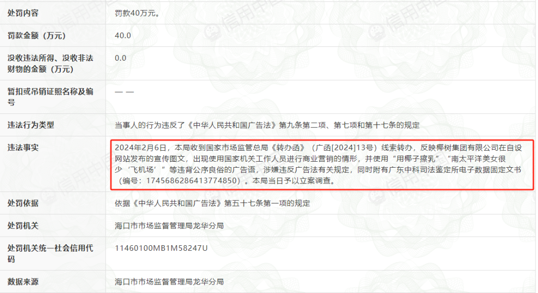 作者 | Hiu 来源 | 互联网品牌官 01 椰汁从小喝到大,椰树从小擦到大。 在“擦擦更安心”这一点上,一意孤行的椰树已经不是在违法边缘疯狂试探了,而是坚定地把一只脚踩在法律的红线上。 贡献2024开年“第一擦”的椰树挂历,直接打出“用椰汁擦乳”、“南太平洋美女很少‘飞机场’”等广告语。 如此直白、“口无遮拦”的广告语只有一直坚持做自己的椰树才这么“敢说”。 椰树我行我素,不改擦边本色,面临的后果就是罚单虽迟但必到。 近日,据信用中国网站,椰树集团有限公司被海口市市场监督管理局龙华分局罚款40万元。原因是其在自设网站发布的宣传图文,出现使用国家机关工作人员进行营销的情形,并使用违背公序良俗的广告语,涉嫌违反广告法有关规定。 ![]() ▲ 图源:信用中国网站 据《互联网品牌官》了解,椰树官网已经删除了相关广告语,但在其周边如专供供应商的椰树挂历上,那句“用椰汁擦乳,每日多饮椰汁能使乳房饱满”的表述依旧抢眼。 椰树并非“空口说白话”,它特意指出“椰汁增大乳房”的说法转载自香港《东方日报》。 椰汁是否真有奇效?真的能丰胸? 其实椰树转载的文章中早已指出该说法并无科学依据,多位医生也证实了椰汁并没有丰胸的效果,这都是椰树“以偏概全”的营销噱头罢了。 02 年年擦枪走火,年年都有椰树家的罚款新闻。 有些网友想不通了,这些罚款和曝光到底有什么用呢? 诚然,近几年,椰树因擦边营销和被处以罚款而冲上热搜的次数数不胜数。 从产品视频广告到企业招聘广告,从旧媒体延续到新媒体,从平面广告大张旗鼓擦进直播间。 在思想没那么开放的年代,椰树就奠定了“一擦到底”的企业文化根基。 女性模特穿着泳装奔跑的画面,因为过于狂野奔放,反倒助力椰树品牌在“软色情”广告中占领一席之地。 ![]() ▲ 图源:微博 别人出道即巅峰,而椰树的巅峰,一峰更比一峰高。 最最离谱的是,椰树直接将波澜起伏的峰展现在自家产品的包装设计上。 2016年一款以女性胸部形状当做瓶身的“胸模瓶”矿泉水,一举将椰树推向了被大众口诛笔伐的坠崖边缘。 人们都指摘说这是赤裸裸的物化女性,简直俗不可耐。 而“目空一切”的椰树甩出一句:这是产品与艺术的结合。 ![]() ▲ 图源:椰树 可能这就是当代企业对“别人笑我太疯癫,我笑他人看不穿”演绎的最高境界吧。 自己笑着打广告,笑着把钱赚了,笑着交罚款,笑着发布招聘信息,笑着交罚款,再笑着把钱赚了……商业闭环锁得死死的,至今无解。 03 以下是《狂擦的椰树》“上映”时间线: 2009年,椰树集团在海口市公交车上打出“木瓜饱满,我丰满的”、“老婆喜欢老公喝椰树牌石榴汁”等广告语,最终工商部门认定违规并处罚款1000元。 2019年3月,椰树一则配文“白白嫩嫩”、“从小喝到大”的视频广告被监管部门认定“妨碍社会公共秩序,违背社会良好风尚”,被罚款20万元,还被全国“扫黄打非”办作为负面典型案例。 ![]() ▲ 图源:椰树 椰树集团极力为“我从小喝到大”宣传文案辩解,称该广告词指的不是椰汁丰胸,而是指从小孩开始喝到长大成大,以此突出消费者对椰树椰汁的信任度和忠诚度。 最终,保住了这句“全岛的骄傲”。“我从小喝到大”slogan依然在包装最显眼的位置上。 2021年3月,椰树将网友调侃的“有着香港的霓虹广告格调,同时兼具澳门赌场广告之精髓,更有宾馆门缝小卡片之风骨”的产品包装设计运用在招聘广告上了。 乍一看,迎面扑来的椰树味十足,再细看内容,写着“入学就有车、有房、有高薪!肯定有美女帅哥追!”,符合椰树一如既往的作风,更符合市场监督管理局开出罚单的条件。与上面相同的原因,椰树又缴了40万罚款。 ![]() ▲ 图源:微博@海南椰树集团 在其他企业内部,这几单罚款绝对要被作为反面教材钉在营销“耻辱柱”上的,但到了椰树那儿“不以为耻,反以为荣”,甚至被写进了集团喜报。 椰树之心,路人皆知。 人家摆明了要的就是这种黑红的效果。 04 越擦越得劲,越擦越红火! 在互联网甚至出现一股声音:椰树没有擦边,它只是热衷于给大家送福利。 椰树:你们人还怪好嘞(那我放心加大力度擦了)~ 2022年10月,努力跟上时代步伐的椰树,率先派出当家女主播,为全网送来一股很新的土味擦边风潮——似擦非擦,一种很“严实”与“严谨”的椰树独有的擦边风。 半年之后,椰树开窍了,不能只擦这边,不擦那边。 它将一帮“身高180+,有腹肌有肌肉,健康阳光帅气”的男主播请到了直播间,从此开启“平等物化所有人”的主打主业娱乐、副业带货的欢乐直播之旅。 ![]() ▲ 图源:微博 这种免费娱乐大众的精神,它真的,我哭死。 椰树只是想宣传:男人有男人味,女人有女人味,椰汁有椰汁的味道,主打原汁原味。 关键是好这口的网友,也看得有滋有味。 说到底,在直播间“擦边”是椰树传统的引流手段,最终目的不是带货,而是旨在为品牌做宣传工作。 椰树集团直播间的操刀人尹丹丹曾表示:“在我说要椰树集团直播的第一天,老板就说了,椰树直播可以,但不能卖货。直播卖货会挤占经销商的生存空间,这是违背我们企业的传统文化的。椰树现在也是不做电商的,天猫、京东、拼多多都没有直营店。” 线上做引流,线下经销商做卖货。 品牌曝光度上来了,被更多年轻消费者看到了,椰树产品被选择的可能性也就提高了。 在前段时间,