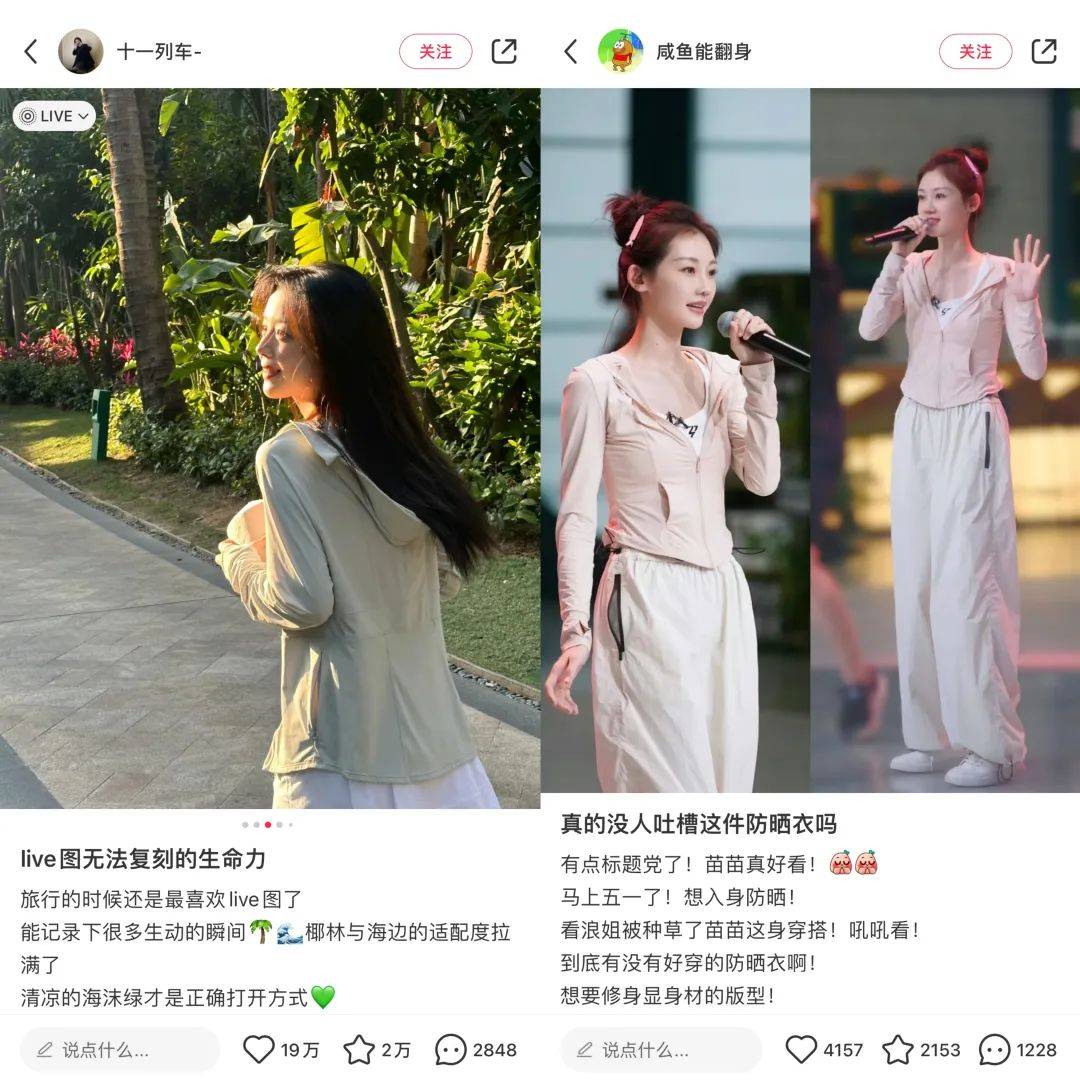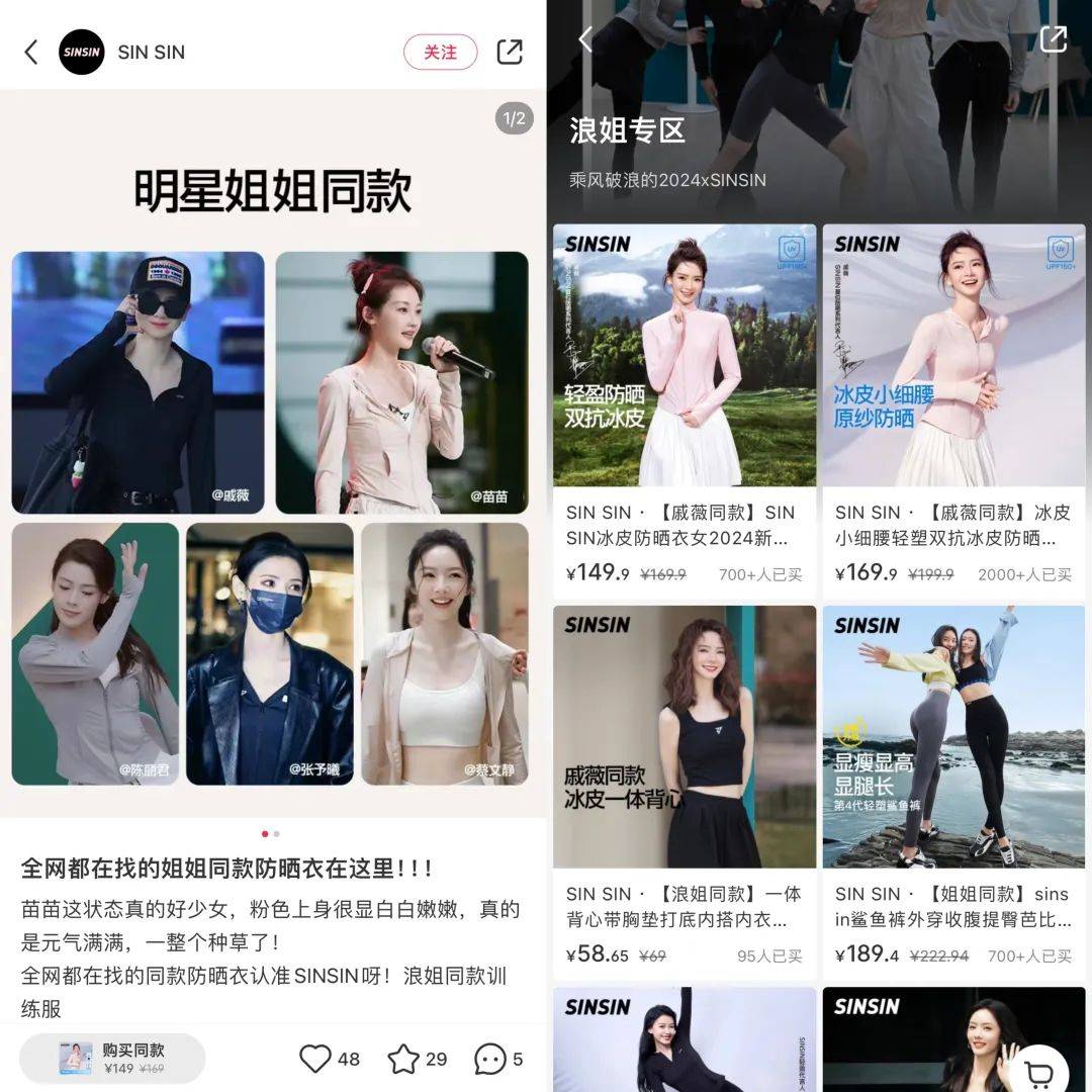 来源:新榜 今年春夏,防晒衣正成为户外出行标配。 “防晒好看我都要!” “春夏的太阳会惩罚每一个不做防晒的人!” “再厚的防晒霜,也不及一件防晒衣的物理保护有用!” 以“防晒衣”为关键词在小红书进行搜索,显示有超过96万篇笔记和91万件商品,轻盈、透气、修身等特点被频繁提及。 防晒衣不再局限于功能性,也卷向颜值穿搭赛道,剪裁更为简约时尚,进一步拓宽穿着场景,进可当春夏外搭,退可做打工人工服,就连近期综艺《浪姐5》中也有明星穿着防晒衣的身影。 ![]() 冬有羽绒服,夏有防晒衣,两者的刚需性正在逐渐同步,防晒衣的市场规模也迎来稳步增长。 艾瑞咨询数据显示,2021年至2026年,防晒服饰市场规模预计将以9.4%的年复合增长率增长,将成为新的千亿规模产业。户外品牌如骆驼、迪卡侬,服装品牌如优衣库、波司登,新锐品牌如小野和子、茉寻,甚至连工厂白牌都纷纷推出防晒衣产品线。 以抖音为例,据新榜旗下抖音数据工具,近30天内,以防晒衣为春夏主推单品的品牌小野和子累计销售额达到5000万-7500万元,蕉下、SINSIN、茉寻、觅橘等品牌的销售额也均在千万元左右。 防晒衣如何从遮挡紫外线的功能性外套,一步步成为网红单品?究竟是智商税,还是人手一件的刚需?品牌又应该怎样把握这一流量风口? 人手一件,防晒衣的网红单品之路 防晒这门学问,细究起来只深不浅。 不管是划分细致的防晒系数,还是种类繁多的防晒霜、防晒喷雾,亦或是款式各异的防晒衣、防晒面罩……防晒已然成为一门显学,每到春夏时节都会成为热门选题。 ![]() 抖音多个防晒话题播放量超百亿次,小红书的防晒笔记篇数超过1030万 虽然防晒知识点琳琅满目,但近年来物理防晒优于化学防晒的呼声日益明显,即防晒衣效果优于防晒霜。 有博主在相同的日晒环境下测评过防晒霜与防晒衣的效果,通过对比皮肤状态发现,防晒衣的效果更佳。同时,防晒衣随穿随走,更加轻巧灵活,不需要像防晒霜一样经历涂抹、卸妆等步骤。 前几年网友们还在质疑头戴“脸基尼”的青岛大姨,现如今纷纷理解并成为青岛大姨,防晒衣、防晒帽、防晒面罩一个不落,力争从头武装到脚。 为了满足好看易搭配的穿着需求,防晒衣的剪裁设计逐步向时尚感靠拢,由功能性外套向日常百搭外套转型。防晒衣主打轻薄、低饱和度,与时下流行的薄荷曼波穿搭相适配。在小红书上,“防晒衣穿搭”相关笔记超过63万篇。 博主“一小只细细”在小红书视频笔记中展现了防晒衣搭配连衣裙、半裙、瑜伽裤的3种穿搭思路,凸显该款防晒衣的灵活百搭,获赞2.7万。 ![]() 好看之外,防晒衣也升级了更多功能属性,比如黑胶涂层的宽帽檐、袖口可调节的手套、延伸成面罩的领口、可收束伸缩的下摆,主打一件抵多件。 ![]() 董洁在商业笔记中展示某款防晒衣的多功能性 近几年户外风的流行,也让防晒衣的使用场景更为专业化。 有意思报告发起的“2024防晒衣调查”显示,徒步、登山、露营、骑行等硬核户外项目中,防晒衣的穿着频率明显增加。城市户外玩法升级,对防晒衣的需求也随之提升。防晒衣不仅要防晒凉爽,更要防雨防泼水,集聚机能感、科技感为一体,颇有无缝衔接冲锋衣的势头。 ![]() 不管是版型设计,还是多功能性,现阶段的防晒衣基本满足不同人群的多种需求,并且能够自行选择和搭配,让消费者自主挖掘出复合功能。这不仅是防晒衣产品进步的体现,也拓宽了消费市场。 明星同款+KOL种草+高频开播,防晒衣的热销密码 用户基础打好,防晒衣纷纷在线上线下等营销端开卷。 四五月气温回升,正是主推防晒衣的好时节。据新榜旗下小红书数据工具新红,近30天内,#防晒衣#话题的浏览量增量达到1.68亿,参与人数增量达到6.76万,新增笔记数达到4.1万。 在这其中,点赞量最高的是博主“hello葡萄儿”发布的视频笔记,指出如何用3个公式找到合适的防晒衣,获赞3.3万。在这条时长1分40秒的视频中,前40秒是在介绍防晒的重要性,随后1分钟快速衔接某品牌防晒衣,从防晒力、面料材质、上身效果进行推荐。 ![]() 这种软植入的形式常见于商业笔记中。新红数据显示,近30天内,含有#防晒衣#话题的小红书商业笔记达到2116篇,骆驼、茉寻、小野和子的投放数量分列前三,均超过550篇。 值得一提的是,茉寻、小野和子在内的多个新锐网红品牌奉行大单品策略,根据季节不同灵活调整产品线,此前这两个品牌在秋冬季节主推的便是光腿神器,其中小野和子更在抖音创下了30天累计破亿的销售额。 ![]() 除了广撒网的KOC种草笔记,新锐品牌也借助明星营销打开局面。 近期《浪姐5》中,SINSIN品牌代言人戚薇在内的多位女明星身穿防晒衣现身排练,加速品牌破圈。SINSIN小红书账号中设置了“浪姐专区”,便于消费者购买明星同款。 ![]() 头部KOL的影响力同样不容小觑。 据新榜旗下抖音数据工具新抖,近30天内,点赞量前3的防晒衣商单视频依次来自“王七叶”、“白昼小熊”和“方圆”,合作品牌分别是小野和子和茉寻。在这3条视频中,几位博主都没有循规蹈矩地介绍防晒衣的材质功能,而是结合穿着场景展现品牌优势。 ![]() 直播带货是防晒衣达成销售目标的关键一环。 据新抖数据,近30天内,茉寻、小野和子、SINSIN的累计关联直播场次均超过2500场,茉寻的直播场次居于第一,达到3586场,累计直播销售额在2500万-5000万元。在这其中,品牌自播与达