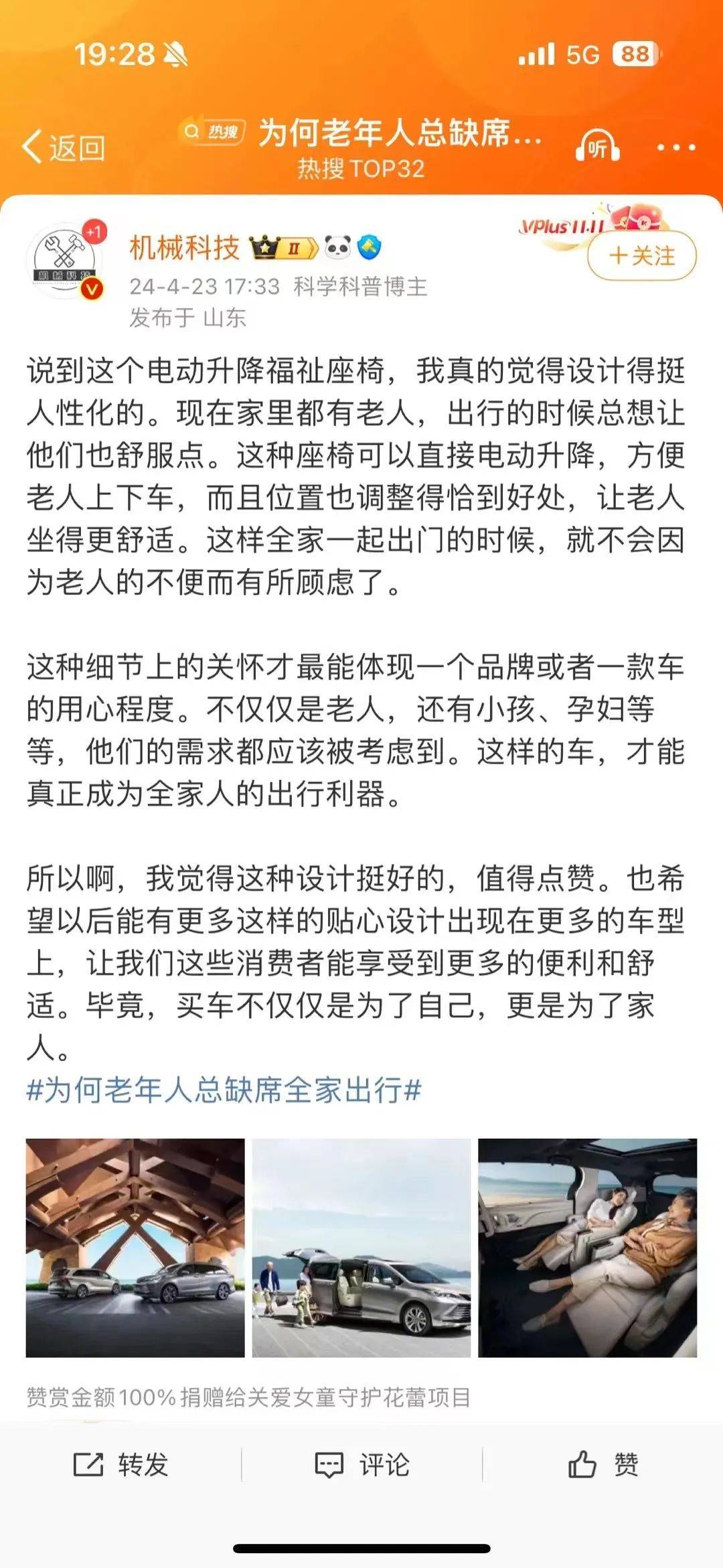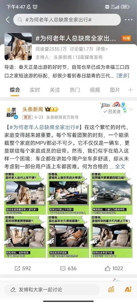 来源:寻空的营销启示录 汽车产业,作为现代工业的缩影,其复杂度和精密性堪比“现代工业皇冠上的明珠”。 近年来,一个趋势是,汽车制造逐渐开始像电子消费品一样进行快速迭代,新车的推陈出新速度不断加快,这无疑是消费者所乐见的。 然而,如今一些新能源车花样频出的宣传,很多都着重于展示大屏幕、冰箱、彩电、炫酷的电子后视镜等功能,造车的本质反而提及的少了。 造车依然脱不开传统车厂多年积累的技术,同时,传统车厂在面对新技术和新趋势时,也要在充分发挥自己技术优势的基础上,与时俱进地进行营销创新。 01 “最好的赛那在中国”:赛那的升级与承诺 作为拥有深厚历史积淀的传统汽车品牌,广汽丰田近年来一直秉承着“为中国,造好车”的理念,不断进行创新实践。通过精心优化产品线和提升服务质量,广汽丰田赢得了市场的广泛认可。 2023年,广汽丰田全年累计销售901025台,这一数字在日系品牌中排名第一,在合资品牌中也稳居前三。 进入2024年,广汽丰田继续保持着强劲的发展势头。新车型的推出,如全新一代凯美瑞和铂智品牌的纯电SUV,以及市场策略的不断创新,都引起了消费者的热烈讨论,销量和口碑均呈现出积极的趋势。 这些动作,充分体现了广汽丰田在技术和产品上的底蕴,以及强大的粉丝基础。 在广汽丰田的产品矩阵中,赛那无疑是一款具有标志性意义的车型。作为丰田的代表车型之一,赛那凭借其宽敞的空间、舒适的乘坐体验以及可靠的品质,一直是MPV领域的“红人”,赢得了无数家庭用户的青睐。 多年来,赛那因这些独特优势积累了大量的忠实用户,这些用户群体不仅对赛那有着深厚的情感,也是广汽丰田最宝贵的品牌资产。 2024款丰田赛那针对中国市场进行了全面升级,并举办了发布会。没有过多的渲染,一切直抵重点:诚意和价值——新款赛那升级了E-FOUR 电子四驱系统、面容 ID 识别系统、高通骁龙 SA8155P 车规级芯片、福祉座椅等专供中国市场的配置,而且价格权益优惠2.5万元。 新车配置远高于全球其它市场,以满足中国消费者对高端MPV的多元化需求,可谓是名副其实地独宠中国用户了。 广汽丰田还为2024款赛那提出了新的口号——“最好的赛那在中国”,这一口号体现了其致力于为中国消费者提供最好产品的诚意。 ![]() 通过这些新动作,广汽丰田再次证明了其作为传统车企的创新能力和市场洞察力。 02 打造话题矩阵,赛那激活用户共塑品牌 对于丰田这样的传统车企而言,它在产品和技术方面一直处于行业领先地位,在营销声量上似乎相对较弱。但实际上,广汽丰田有着深厚的品牌底蕴,也不缺乏关注的用户,只是需要有效的传播来展现其优势。 针对新车上市,广汽丰田在社交媒体上进行了新的尝试,围绕赛那开展了一系列社交营销活动。 通过精心设计的话题矩阵——行业热点+社会热点,广汽丰田成功地调动了用户们的讨论热情,激活了庞大的粉丝基础,推动了品牌声量的释放,使广汽丰田重新回到了主流的市场讨论之中。 行业热点:精准定位,以用户为中心优化配置 产品配置一直是当今汽车在社交网络上被用户讨论的焦点。 广汽丰田赛那在配置方面进行了精细的市场调研,针对车辆配置进行了调整和升级。包括第二排座椅升级、E-Four电子四驱系统、智能座舱和本地化改动等。 通过微博发起#最好的赛那在中国#和#赛那为了中国家庭能有多卷#这两个话题,广汽和用户一起讨论针对中国市场的配置升级。这些话题吸引了广泛的用户关注和讨论,展示了广汽丰田在优化产品配置方面的创新。 ![]() 在价格方面,广汽丰田赛那通过发起#赛那独宠中国车主官降2.5万#的话题,不仅有效传递了降价的信息,更重要的是展示了广汽丰田愿意为中国消费者提供更具性价比的产品,同时也显示出品牌的市场敏锐度和灵活性。 ![]() 这些举措充分体现了广汽丰田赛那的新口号——“最好的赛那在中国”,真正做到了以用户为中心,针对国内消费者的实际需求进行精准定位和优化配置。这不仅加强了品牌与消费者之间的情感连接,也进一步巩固了广汽丰田在中国市场的领先地位。 社会热点:激发情感,与用户共情共鸣 在当今的汽车市场,产品的功能价值固然重要,但消费者同样倾向于获得产品之外的情绪价值。 广汽丰田赛那针对中国市场的推广活动也充分考虑了这一点。他们在微博上推出的#为何老年人总缺席全家出行# 社会话题调研,就是一个典型的例子。 ![]() 与欧美不同,在中国,老年人对于儿女生活的参与度是比较高的,从筹办儿女婚礼,到帮儿女带孩子,他们的身影无处不在。但年轻人在带孩子出行时,老人经常缺席,这是因为长时间坐空间小、座椅不舒服的车,老人难以适应。 广汽丰田赛那洞察到了这个独特痛点,从产品设计上针对国内市场提升后排座椅,升级为埃尔法同款的一体式零重力航空座椅,增加通风、加热、按摩、电动调节等功能,提升了乘坐舒适性。同时还有搭载了电动升降福祉座椅的车型配置,从此全家出行不再是难题! 这是洞察市场需求的表现。针对这个痛点,赛那联合头部新闻媒体再把这个痛点延展为社会议题,结合春季出游的热点,让用户一起来讨论,引发了他们的共鸣。 ![]() 通过这种方式,赛那不仅提升了产品的社会认知度,也让用户深刻理解到其产品特性,这一策略最终使话题登上了微博热搜TOP31。 粉丝激活:互