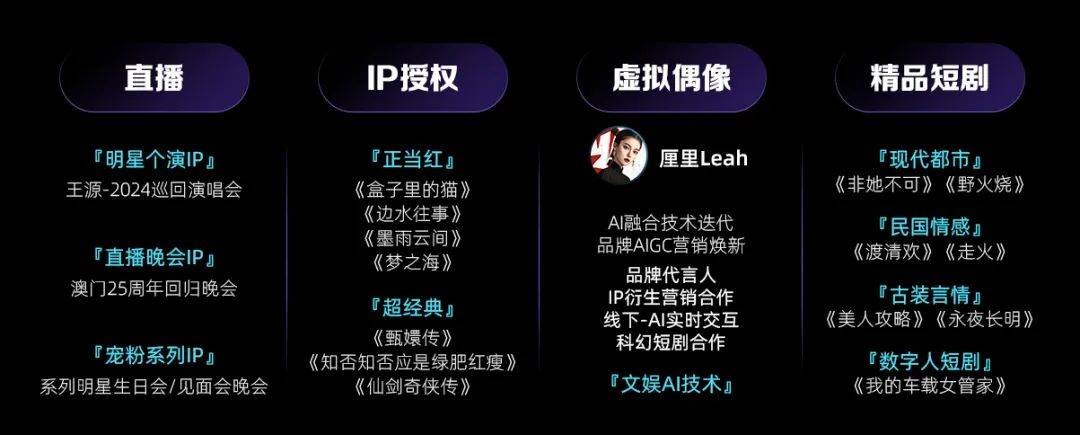 来源:TopMarketing 2024年行至中旬,文娱市场的火热胜于2023年。 《花间令》《新生》等剧集让用户追更热情一浪高过一浪;《无限超越班2》《盒子里的猫》《这是我的岛》等综艺火爆社交平台,持续为用户输送玩梗素材。击壤数据显示,2024Q1网剧招商同比上涨77%,其中优酷招商同比增幅第一,达131%。另据云合数据,截至4月23日,优酷综艺正片有效播放同比提升63.2%,优酷在播综艺累计51次登顶云合全舆情热度日榜TOP1,占比46%,为全平台第一! 线下影演亦高热不下,五一期间《维和防暴队》等院线大片撬动15.28亿元票房(数据来源:灯塔专业版);据中国演出行业协会统计,全国营业性演出(不含娱乐场所演出)场次3.44万场,观众人数1026.73万人次,同比增长18.63%。 好内容的热情蔓延不止于此。5月15日,2024阿里大文娱商业春季云发布启动。剧集、综艺、泛文娱、影演在内的200部精品内容及5大内容营销资源重磅升级再一次点燃用户和品牌的热情,也焕活内容营销更多可能和想象空间。 「剧集」 五大赛道全面上新 AIGC打开剧集营销新姿势 从青春剧《要久久爱》到古装剧《花间令》,再到即将收官的悬疑剧《新生》,多赛道全面开花是行业对优酷剧集的第一体感。2024年,优酷大剧会继续坚持头部战略,力求“以大博大”,深度布局古装巨制、悬疑罪案、都市精品、热血传奇、港剧焕新五大优势赛道,打造头部化、精品化的全新爆款。集结张颂文、白百何、周一围等诸多实力派演绎的《清明上河图密码》,讲述了北宋宣和年间在汴梁城雀儿巷生活的赵不尤一家人,屡破奇案守护汴梁百姓安乐的故事;由赵露思、刘宇宁联袂出演的《珠帘玉幕》谱写了一段经商传奇;由田曦薇、辛云来领衔主演的反乌托邦爱情寓言剧《半熟男女》揭示都市男女情感浮世绘;由杨阳导演执导,杨洋、金晨领衔主演,改编自忘语同名小说的《凡人修仙传》讲述一介凡人韩立历经万壑千岩、与天争命,最后得以遨游天地的修仙故事;由赵今麦、张凌赫领衔主演、首部“多人重生”设定的《度华年》以长公主李蓉和驸马裴文宣的情感为主线,展现了一段一梦两世仇人变“闺蜜”、“闺蜜”变情人的爱恨纠葛。 ![]() ![]() ![]() ![]() 以优质IP为核心,优酷大剧营销通过创新广告、宠粉剧综、厂牌伙伴和高光角色四大营销模式,助力品牌合作伙伴吃透热剧红利。 ![]() 创新广告模式一直是品牌抢占C位焦点的利器。此次升级,优酷引入时下大热的AIGC技术,系列化内生产品通过「系列化品牌头条」、「系列化小剧场」等创新产品助力剧情与品牌理念深度融合,润物细无声地传递品牌信息;微动效内生产品通过「微动效品牌头条」、「微动效品牌标版」的创意呈现让品牌广告夺目吸睛。 内容营销离不开用户的喜好,宠粉剧综模式拿捏的正是这一点,通过内容的破壁联动,助力品牌拉近与用户之间的距离。比如在剧集《少年歌行》热播时,优酷为用户定制主演生活番《少年特别企划》。生活番内容与剧集内容交相呼应,交错更新,让观众的追剧愉悦感从剧中延续到戏外。待播剧《度华年》、《嘘,国王在冬眠》是2024年宠粉剧综模式的重磅项目,值得关注。 ![]() 厂牌伙伴模式聚焦剧集五大赛道为品牌带来持续曝光和打透核心用户的能力。高光角色模式则在潜力主演上做文章,剧内、剧外深挖明星全链营销价值,让品牌与角色一起出圈。 「综艺」 联结时代话题对话年轻用户 “曝光-互动-增长”品效销全局打通 2023年优酷综艺上线数同比增长230%,其中豆瓣评分8分以上综艺占比达70%,实现「质」和「量」双丰收。2024年优酷综艺锁定年轻用户情绪发力点,发力游戏推理、青春先锋、情感生活、欢乐喜剧、剧综影联动五大赛道,储备了由谢涤葵王牌团队打造的盲盒旅行社交真人秀《盲盒旅行局》、优酷首档掼蛋竞技真人秀《掼蛋大师赛》、全新厂牌经营类真人秀说唱综艺《说唱梦工厂》、平台超头部综N代确定性爆款综艺《这!就是街舞7》、与村BA首次综艺联动的标杆篮球综艺《这!就是灌篮6·村BA季》、全明星新能源赛车真人秀《风驰电音》、深受年轻人欢迎的头部青春综艺《怦然心动20岁4》、首档综艺咖竞技类综艺《我爱综艺咖》、喜剧综N代王牌IP《火星情报局7》、《甄嬛传》十二年团综《甄嬛爱不停》、中国首档创作回访影综联动真人秀《何以封神——向着电影出发》、影剧综联动音综赛道OST新切口《剧好听的歌2》以及年度话题演综《无限超越班3》等精品综艺。 ![]() ![]() ![]() ![]() ![]() ![]() ![]() ![]() ![]() ![]() ![]() ![]() 在内容上新的同时,优酷的综艺营销也进行多维升级,推出酷酷综挚友、赛道合伙人、粉丝团长、内生套餐四大营销产品,为品牌量身打造年轻用户情绪挖掘指南。粉丝团长作为最具互动性的玩法,为品牌搭建与用户沟通的桥梁。以《这是我的岛》IP为例,用户在用漂流瓶给嘉宾写信后,可以号召好友助力获取信件上节目正片的机会,也为内容和品牌带来社交裂变价值;品牌定制抽奖和社区二创的激励玩法也进一步调动用户参与积极性、激发品牌喜爱。 ![]() 酷酷综挚友将优酷热播综艺进行整合,硬广触达让品牌收获稳定的大曝光,用户观影全路径的创意互动和抽奖互动为品牌创造更多与用户深度沟通的机会。赛道合伙人从游戏出行、竞演、喜剧和恋综四个赛道分别推出高度适配的营销产品,助力品牌与用户