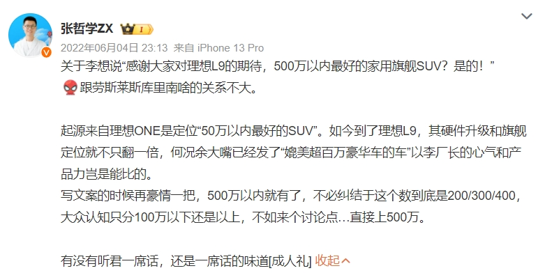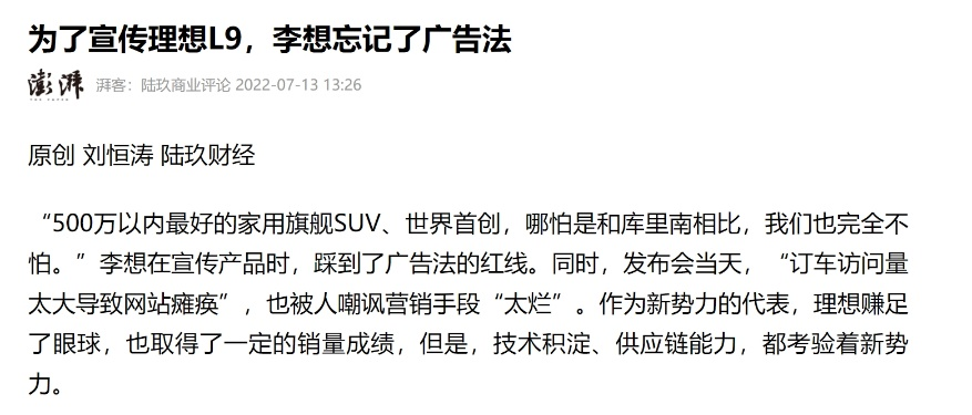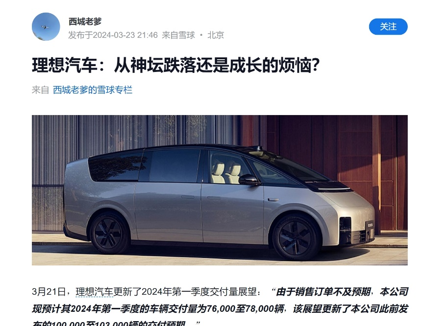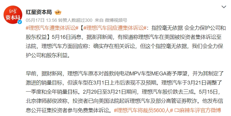 作者 | 张凯旌 编辑 | 趣解商业 “理想MEGA将是理想汽车下一个爆品,能够做到50万元以上汽车销量第一。”理想汽车CEO李想,曾不止一次为理想首款纯电汽车MEGA放出豪言,然而现实是被狠狠“打脸”。 ![]() 图源:微博截图 MEGA刚一上市,就遭到一系列恶搞,外观甚至被PS成“棺材车”,其销量也因此大受影响。后续,舆论持续发酵,还引得河北衡水警方介入调查,多家公关公司和“水军团伙”牵涉其中;而就在调查结果尚未水落石出时,5月15日,北京郝俊波律师事务所通过其官方微信公众号透露,理想汽车因证券欺诈案已经于近日被投资者集体诉讼至法院,背后正是与理想MEGA交付量对财报造成的负面影响有关。 ![]() 图源:公众号截图 被誉为“2023年造车新势力最大赢家”的理想汽车,不久前还风头无两,甚至被拿来和传统车企比较;然而迈入2024年后,围绕MEGA产生的一系列负面事件,却开始让市场重新审视这家“过热”的车企。 3月以来,理想汽车(LI.US)美股股价已跌去45.1%,接近腰斩;截至5月17日,公司市值267亿美元(约合1928亿元人民币)。 被同行称为“微博之王”的李想,也一改往日的活跃;其上一次发微博是4月28日理想L6新车上市,再上一次则要追溯到3月2日。这种“噤声”,会持续到何时? 01.交付预期“坐过山车”,理想遭集体诉讼 虽然北京郝俊波律师事务所近日刚发布消息,但理想汽车引发诉讼其实是两个月前的事。 理想MEGA于今年3月1日正式上市,3月11日开启交付,售价55.98万元,而且仅推出一款产品,没有高配低配之分。 ![]() 图源:罐头图库 在此之前的2月26日,理想汽车刚刚发布了“振奋人心”的2023年业绩,并给出2024年一季度10万辆-10.3万辆的交付预期,公司对MEGA的预期则是每月交付8000辆。 作为对比,2023年一季度,理想汽车交付52584辆;公司给出的目标相较上一年翻了一倍。 然而真正下线交付后,MEGA的市场表现却“大跌眼镜”。“易车网”数据显示,理想MEGA上市首周销量仅1000辆出头;有媒体报道,MEGA上市72小时内,大定约3218辆,退订10297辆。 ![]() 图源:微博截图 与此同时,因MEGA外观引发的风波愈演愈烈。3月21日,李想发微博“认错”,称“MEGA出现节奏问题,公司从上到下过于关注销量和竞争,让欲望超越了价值”;同日,理想汽车发布公告,将此前一季度的交付量预期调降至7.6万辆-7.8万辆。 短时间内过山车般的业绩预期变化,成了美股投资者集体诉讼的导火索。发布后不久,美国罗森律师事务所就开始了针对理想汽车证券索赔的调查。这家律师所成名已久,2019年时就曾发起对蔚来(NIO.US)的集体诉讼,理由也是虚假陈述。 ![]() ![]() 图源:官网截图 本案索赔的范围被界定在2月26日至3月20日之间买入理想汽车(LI.US)股票或期权的投资者;期间,理想汽车(LI.US)股价先涨25.11%,后跌25.72%。 理想汽车被指控在案发时间的公开声明存在重大虚假和误导性,在推出MEGA时,夸大了市场对车辆的需求和运营策略的有效性,导致交付量不达预期,进一步对公司财务状况产生重大负面影响。 对此,理想汽车回应称,官方已经确认存在相关诉讼,该指控毫无依据,会全力保护公司和股东利益。 ![]() 图源:微博截图 北京郝俊波律师事务所主任郝俊波表示,美股这类情况比较常见。只要有重大不利消息,股价下跌,有表面证据证明可能涉嫌虚假陈述,就可以去起诉。整体来讲,这类诉讼获赔比例约50%,能否胜诉还得看之后取得的证据。 在郝俊波看来,该诉讼对公司的影响不会太大。一方面,这是先有不利消息,股价下跌后才有的诉讼,而非诉讼导致的股价下跌;另一方面,通常公司本身有严重问题的情况下,诉讼才可能会让其雪上加霜。 不过,市场也有持相反观点的投资者。 雪球网友“西城老爹”就认为,尽管MEGA的不及预期不至于让理想就此跌落神坛,但其确实会令投资者对理想管理层驾驭市场的能力判断打一个折扣,并对以后公司业绩预测与信息披露的质量报以更审慎的态度;褪下有色眼镜后,市场预期可能会更现实、更保守,这会体现在盈利预期、估值水平等多方面。 ![]() 图源:雪球截图 其还补充道,2024年行业面临的环境与2023年完全不可同日而语,而理想仍然在2月26日给出如此激进的业绩展望,是有些令人无法理解的。 02.李想“大嘴”吃官司 理想汽车被告,作为CEO、且营销方面一直“冲锋”在最前线的李想,并不能置身事外。 虽然MEGA下线交付后很快进行了反思,但在宣传MEGA时,李想可谓“不遗余力”;其不仅多次强调自己对MEGA成为50万以上乘用车销冠的信心,还在朋友圈声称“乔布斯在的话,苹果汽车应该就是这样的”。 ![]() 图源:朋友圈截图 无论是白纸黑字写的交付量预期,还是口头上的宣传,李想都在不断拉高外界对MEGA的期待值;然而现实的反差却直接引来了集体诉讼,这可能让李想付出真金白银的代价。 其实,素以“大嘴”著称的李想,在对外宣传上一向敢于放话。 李想曾把售价近46万元的理想L9称为“500万以内最好的家用旗舰SUV”“哪怕是和库里南相比,我们也完全不怕”;售价在35万元-40万元的理想L8称为“世界上最好的工业产品”;并称售价30-36万元的理想L7有“50万以内SUV最好的二排舒适度”。 ![]() 图源:微博截图 而这些“豪言”,一度也转化成了不错的销量。2023年,理想全年共计交付37.6万辆,高居新势力车企第一。其中L7、L8、L9分别卖出13.41万辆、11.8万辆、11.44万辆。 除了产品,理想汽车的营销费用率是李