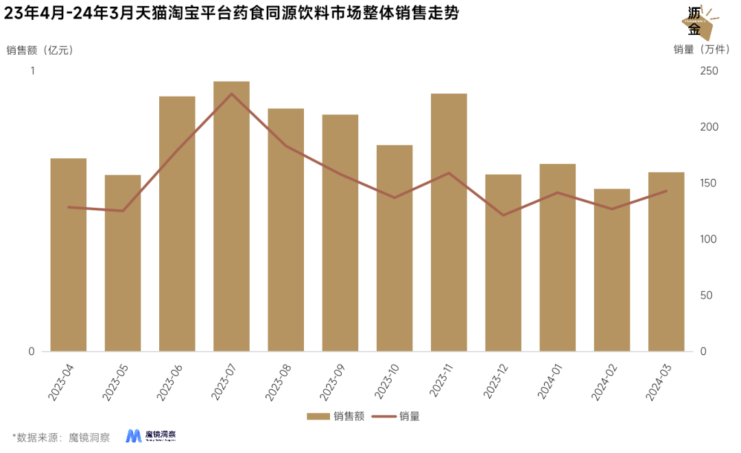 来源:魔镜洞察 盛夏又要来临,仍记得去年夏季流行起中药版酸梅汤,一时间年轻人挤爆中药铺。 万万没想到,打败奶茶店的竟然是中医院。中药界的泼天富贵,竟是由一杯奶茶开启的。 茶饮品牌也想不到医院竟也来抢生意,中医院也不仅满足于奶茶了,还推出中药糕点、中药棒棒糖,企图用中药成分承包年轻人的下午茶。 中式风潮吹向了各行各业,中药成分也乘此东风,饮品界的下一个爆点或许就埋在这中药成分里。 01中式烘焙:年轻人挤爆中医院,中药成分激发新鲜感 养生再也不老土,脆皮年轻人在养生道路上可谓是花样百出,练八段锦、晒背、食补食疗各种招数应有尽有。年轻人养生话题近一年社媒声量达到148.6万条,23年12月在官媒发文影响下,声量达到峰值,话题曝光量持续增加。 ![]() 22年1月-24年3月社媒平台年轻人养生话题声量及互动量走势 在这股风潮作用下,中药的受众也出现了细微的变化,16-25岁年龄段占比提升了1.6%,年轻人对中药的接受度正在不断提高。 ![]() 22年4月-24年3月社媒平台中药话题受众年龄分布变化 中药受众年轻化一方面得益于药食同源理念的风靡,年轻人对传统药材成分有了更多的认知和信赖,另一方面则是中药产品形式不断创新,打破“难喝难吃”的刻板印象,中药成分以非常友好的全新姿态走进年轻人视野。 在中药产品创新方面,全国各地医院不断整活,各种中药糕点拼出一桌中药成分下午茶。 浙江省中医院相继推出秋燥润肺饮、煲汤三宝方和冬令进补膏方;柳州中医院东院的药膳坊“食药同园”推出了菜、汤、粥、糕点、饮品、面点等不同形式的药膳产品,其中中药奶茶最受年轻人好评。 ![]() 图源:小红书平台 中医院药膳的走红原因有三方面原因: 一是官方权威做背书,消费者对医院有天然信任度。二是创新产品形态,中药成分融入甜点、饮品等,好吃是消费者复购的核心动因。三是健康与负罪感的平衡,大众对其功效也不会有太高预期,用成分天然健康,买一份心安来对抗食物的负罪感。 中医院被年轻人挤满的同时,也给了糕点品牌、茶饮品牌创新新思路:以中药成分作为新兴卖点。 ![]() 图源:小红书平台 目前中式烘焙赛道已有不少小众品牌在尝试,但市场尚未跑出头部品牌。杭州中药面包品牌“四气五味药食无界灵感烘焙局”已在杭州积累下了一定的社媒热度,并于23年入驻深圳。 中药成分加入面包烘焙,一方面以新鲜感取胜,另一方面则以养生、降低负罪感吸引当下年轻人。但目前中药成分也尚未完全开发,成分和创新的探索空间仍很大。 或许,下次和朋友逛街会说“吃个面包调理一下”? 02养生茶饮:时令+人群成为破局新方向 国风养生赛道正在被茶饮界看好,新锐品牌层出不穷。 23年下半年,荷田水铺、青楠五味茶、陆藜开了个方子等品牌持续扩店。山东品牌荷田水铺门店数量稳步增长,并逐步向周边省份拓展品牌版图。青楠五味茶于23年3月开设首家门店,24年2月门店数量近50家。 养生茶饮热度加持下,2019年便入局该赛道的椿风品牌终于迎来了它的“第二春”。椿风接连推出的“熬夜大补水”、“青汁刮油水”等单品,凭借功效性和视觉冲击性在社媒平台掀起话题热度,可谓是养生茶饮赛道的头部品牌。 ![]() 图源:小红书平台 目前椿风品牌店铺数近100家,椿风品牌的增长瓶颈也正是养生茶饮赛道的增长痛点:将消费者需求由尝鲜向日常化转变。 养生茶饮带有天然热度,差异化的定位让消费者眼前一亮,进店尝鲜并不是什么难事,提高复购和消费者粘性才是品牌保增长的关键。对此,品牌可从两方面出发。 一是顺时养生,围绕季节不断调整主推产品,夏天主推绿豆沙、秋天主推小吊梨汤等,全方位满足消费者的养生需求。 二是人群及场景的细分,针对女性生理期需求推出系列产品,针对困顿、疲劳、肝火等生理症状推出对应饮品,市场上已有不少品牌切入该细分点,如半年内门店数达到60+的瑞燕姨妈热饮、以中草药为茶底不断创新的周荣记等。 03药食同源饮料:元气森林领跑,中式成分静待爆点 当下饮料市场,若只从中药成分出发来看会略显匮乏,但从药食同源角度来看,品牌们已经玩的风生水起。 一方面药食同源饮品持续被资本看好,草本先生品牌于24年1月获得百万元天使轮融资,开怀山药汁品牌于24年1月获得千万级天使轮融资,草本未来品牌于24年2月获得数千万元天使轮融资。 以中药草本成分为核心的饮料品牌,成为资本押注的潜力股。 ![]() 中式健康品牌JUZTLAB草本未来旗下产品 另一方面,近六个月,淘宝天猫平台药食同源饮料市场规模达4.2亿元,销售额同比下滑1.8%,市场规模相对较小,但较多品牌已陆续布局该赛道。 ![]() 23年4月-24年3月天猫淘宝平台药食同源饮料市场整体销售走势 元气森林近六个月销售额同比增长418.9%,23年推出的自在水单品在24年迎来了爆发,红豆薏米水、红枣枸杞水正中养生年轻人的下怀。 跳出饮料市场,从原浆类滋补营养品来看,天猫淘宝平台近六个月市场规模达到5.1亿元,同比增长25.2%,健康功能性与即饮便携性成为其快速增长的主要动因。 ![]() 23年10月-24年3月原浆及细分产品销售额及同比增速 沙棘、枸杞是原浆产品目前最畅销的成分,枸杞原浆销售额同比增速达到45.0%,高认知度、高功效认知度成为原浆成分选择的核心。在原浆产品持续热销的同时,成分认知度及受众也在不断积累,沙棘