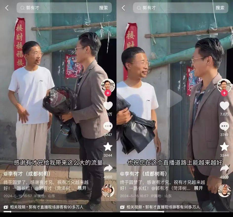 来源:新榜 一首《诺言》全网刷屏,郭有才爆红出圈。 他梳着上世纪90年代流行的大背头,戴一副银丝框眼镜,身着复古风格的宽大西装,打着一条红白条纹领带,手上戴着副黑色皮手套,在直播间里声嘶力竭地唱着这首老歌: 郭有才的身后,是停止运营多年的菏泽南站,黄色的低层小楼透出了年代感。他还为直播间额外加了个复古的黄色滤镜,怀旧感氛围拉满。 即使唱功不算专业,但郭有才为歌声注入了丰富的感情,用略显沧桑的嗓音将不少观众拉回了那个70、80年代,回忆起曾经的青葱岁月。 ![]() 今年5月初,郭有才直播演唱《诺言》的片段火了,多条切片或搬运视频在抖音、视频号等平台上被转发数十万次,越来越多的网友涌入他的直播间想要一听现场。 新榜旗下抖音数据工具新抖显示,4月底郭有才直播间观看人次10万-20万左右,5月3日之后每场直播观看人次保持在百万以上,5月16日单场直播观看人次超过2774万,点赞破亿。 ![]() 截图来自新抖 郭有才的粉丝数更是一路狂飙。 据新抖数据,5月9日起,账号“郭有才(菏泽树哥)”开始高速涨粉,3天涨粉314万,仅5月15日一天就涨粉了113万。截至目前抖音粉丝数达到600万,其中超过一半是31-50岁的人群。 ![]() 菏泽这个位于山东的小城,也在一夜之间出了名,很久没有客运列车停靠的菏泽南站因此人声鼎沸,旅客日流量达到近百万人次。当地政府连夜修路、扩建南站广场,提供游客服务,想要抓住这波流量。 很多网友不知道的是,这其实是郭有才在互联网的第三次走红,第一次是2017年的“菏泽步”,第二次是2022年直播连麦唱《真的爱你》,第三次就是这首《诺言》,真正地出了圈。 ![]() 郭有才的三次走红 如何去描述这种爆红全网的感受?郭有才在视频中说:“本来感觉能给我吹一缕春风就心满意足了,没想到收获的是大家给的一整个春天。” 3天涨粉314万:五年烧烤无人知,一曲《诺言》天下闻 郭有才的火,在于他会唱歌,又没那么擅长唱歌。 《诺言》原唱是台湾歌手李翊君,歌曲发行于1995年。李翊君的演唱柔和婉转、充满悲伤,而郭有才的演绎是另一种风格,大胆直接、撕心裂肺。 不少网友留言说他的歌声“没有技巧,全是感情”,从中能听出“平凡人不屈服于命运、奋力抗争的感觉”。 很快,网友们发现郭有才的个人经历恰好是“不屈服于命运的平凡人”的真实写照,他没有专业技巧的歌声正是奋力抗争命运的励志佐证。 这样一个普通人逆袭的故事,不仅承接住了《诺言》刷屏的流量,也将郭有才的形象推到台前,热度再上一层楼。 ![]() 郭有才在以前账号上分享的个人故事 这个看起来复古又沧桑的小伙子,实际上是个出生于1999年、今年才25岁的年轻人。他本名叫郭壮,因为喜欢国学,给自己取字“有才”、号“中道”。 据郭有才讲述,他出生于山东菏泽的一个农村家庭,10岁母亲去世,父亲组建了新家庭,他则被“流浪式散养”。 由于生活困难,他13岁就辍学打工,修电车之类的杂活都干过,曾经一个月工资2000块,但也慢慢攒下了些积蓄。2017年他创业开了饭店,最终倒闭收场;2019年又和未婚妻苏畅一起再创业,经营烧烤摊,一干就干了五年,直到现在。 ![]() 这段艰难的创业日子里,郭有才也在摸索拍短视频、做直播。 2017年,他的账号还叫“郭有才(发扬菏泽步)”,在快手上大玩“菏泽步”,就是一种脚呈外八字跑路的步伐,剪个锅盖头,穿着紧身裤,颇有些精神小伙的气质。 ![]() 2022年,郭有才换了账号,直播唱歌。他一直有个音乐梦想,一边为生计奔波忙碌,一边自学唱歌。没钱上专业的音乐学校,他就在网上花6块钱买了教程,还咬咬牙花300元买了把吉他。 ![]() 那时候也没多少人看他直播,转折点发生在2022年9月,他和百万粉主播“大远哥”连麦唱《真的爱你》,直播间在线人数首次破万,有了一波小范围的流量和热度。 ![]() 可惜好景不长,当时不懂如何利用流量的郭有才因为带货引发争议,账号没有持续经营下去。直到2023年11月,他注册“郭有才(菏泽树哥)”的抖音账号,重新尝试直播唱歌,走怀旧路线。 郭有才每天早上7点起床,9点赶到菏泽南站直播,这是他小时候经常玩耍的地方。他觉得这里能感受到前人的淳朴和故事的沉淀,“一到那儿就有一种穿越的感觉”。 就这样,他的直播间人气从0开始慢慢增长,几百、几万、几十万,再破百万、千万,直播间里各种礼物被刷个不停。草根出身的背景、朴实的形象、励志的追梦故事,加上感情充沛的歌声,郭有才走出了一条普通人逆袭之路。 ![]() 郭有才直播间人气飙升 截图来自新抖 一首歌带火一座城,百万游客涌现菏泽南站 火了之后,郭有才仍过着白天唱歌、晚上卖烧烤的生活。 或许是吸取了上一次走红后带货的经验教训,他没有立即用流量变现,而是只用账号直播唱歌,自己也表示“直播带货不在计划之内”。 ![]() 下了播之后他休息一会儿,就开始串烧烤串,为晚上的烧烤生意做准备。对他来说,“白天唱歌是梦想,晚上烧烤是生活”。 不过,无论是梦想还是生活,都比之前多了数百万围观群众。 烧烤摊被慕名而来的网友、主播们挤满,没开张的时候就人山人海,郭有才一出场全场欢呼,像是场粉丝见面会。 ![]() 不确定有多少人是真的来吃烧烤的,但可以确定大部分人都是来拍或者直播郭有才卖烧烤的。现场手机摆了一圈,单是转播他做烧烤的直播间,在线观看人次都有好几千。 拍郭有才的太多,也