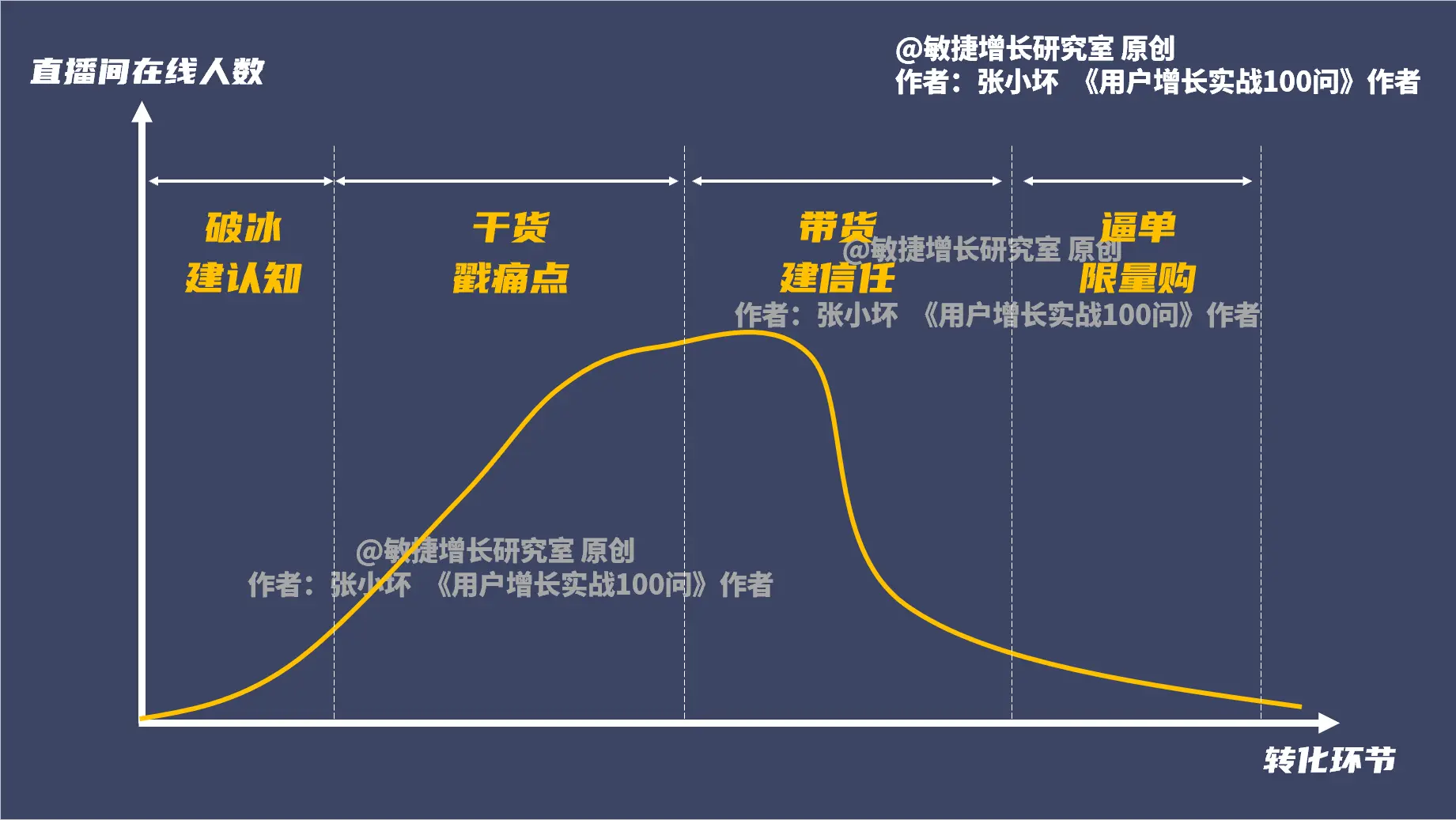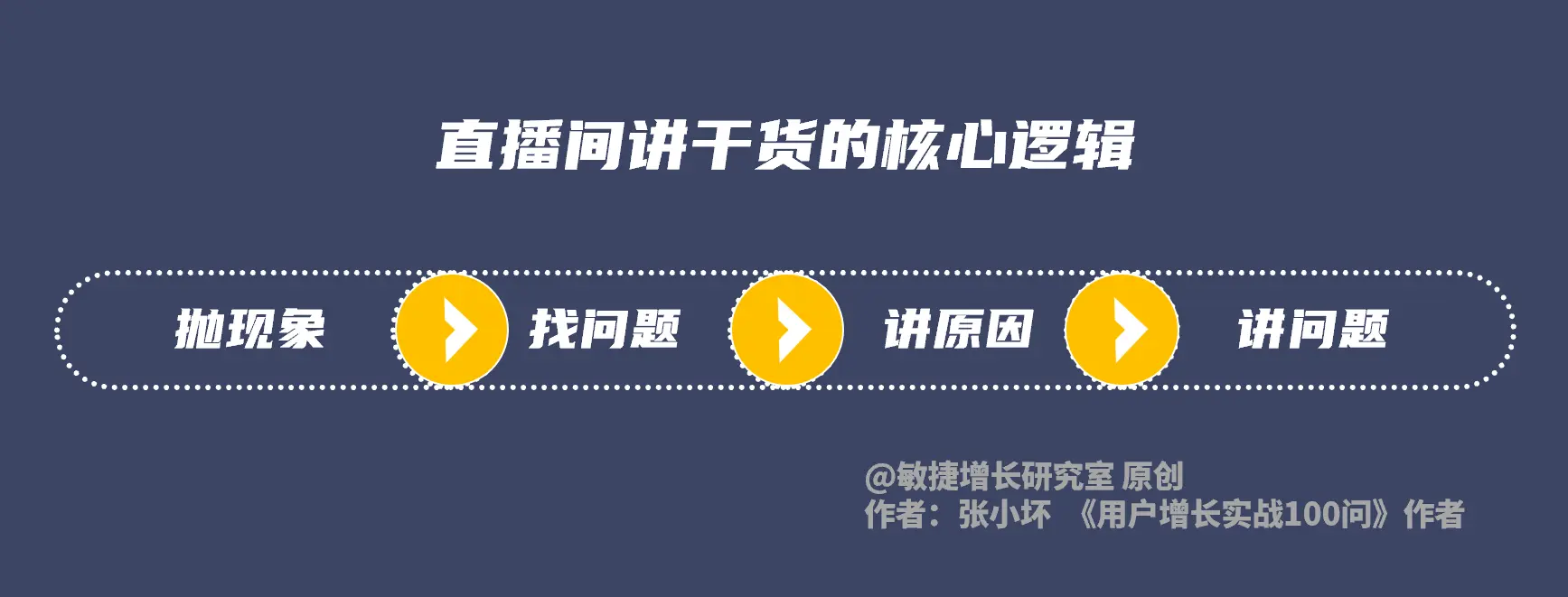 作者:张小坏 最近半年,服务了一位抖音百万粉的知识博主,这个博主是典型的夫妻老婆店,女生做IP,男生做运营,主要讲职场沟通类课程。 女生是主持人出身,有语言表达的功底,直播表现力很好,男生每天重复做的事就是盯直播间流量,盯话术,给老婆做复盘。创业2年,靠短视频+直播的内容输出,积累了100多万粉丝,经过半年的产品、话术调整,现在靠纯自然流直播,3小时直播GMV平均在2万左右。 夫妻档,没有团队压力;自然流,没有流量成本;知识付费,没有仓储、物流成本;3小时直播收入2万,一半的时间用来做直播赚钱,另外一半的时间用来读书更新自己的知识体系,做课程,学员答疑。 这是一个听起来就让所有人都向往的个体创业模式,经过半年的合作,对他们也很了解,总结起来成功的关键点有3个:精准的用户痛点洞察+简单但有卖相的课程产品+没废话的直播转化话术。 我会分3篇文章来分享夫妻档知识付费直播的3个关键点,这是第一篇,专门说明什么叫“没废话的直播转化话术”。 一、“没废话的直播转化话术”整体逻辑 ![]() 如果你没有做过直播,首先你需要建立2个认知: 认知1:直播话术的设计,是为满足平台的流量机制,而不是IP的营销诉求。 上面这张图,概括了一个知识付费直播间的流量曲线变化,对应流量曲线,直播话术分为4个环节,建认知–戳痛点–建信任–限量购。 认知2:直播间讲干货的目的,是为了戳痛点、戳痛点、戳痛点。 直播话术只有3个指标:流量数量、留存率、转化率,相比干货,更有效的是戳痛点+讲故事,通过戳痛点不断与用户互动,来提高互动率和留存率,平台才会分发更多流量。 二、直播间第一印象:破冰-建认知 公域流量进入到直播间,是否能够停留,取决于黄金3秒,也就是能否在3秒内引起用户兴趣。 引发用户兴趣有4个元素:有用、有关、热点、有趣,知识付费的直播间更多的要满足前2个元素,有用+有关。 破冰-建认知环节由2部分组成,直播间贴片+主播话术。 1. 通过直播间贴片建认知 直播间贴片一般有3个部分:大主题+痛点表现+讲师介绍。 ![]() 以这个直播间的贴片为例,这是一个卖改变拖延课程的直播间,大主题是无需自律,解决拖延,自律和拖延是2个痛点关键词。主题下面呈现的是拖延的3点表现,一般来说,主播会围绕着这3点在整场直播中反复提及,目的就是不断戳痛,让用户觉得有用、有关。 2. 通过主播话术留住用户 贴片解决的是用户进入直播间后的黄金3秒,但如果半分钟内,没有让用户觉得主播讲的和他相关,只要手指轻轻一滑,就离开了。 所以,除了解决黄金3秒,还要解决关键30秒的问题。用户停留的关键30秒,要靠主播话术来提升留存。 直播间讲师和课堂讲师最大的区别在于,课堂讲师讲好内容,关注到学员的反应来调整即可,但直播间讲师看不到这些,直播间讲师要看的,是直播间的流量变化。 当新开播或一轮带货结束,平台继续推流的时候,主播要靠这样的话术来留住用户: “我再给新来的朋友介绍一下,我们这里是讲职场沟通的直播间,帮你解决不敢拒绝、害怕冲突、说话直得罪人、清高讨厌人情世故等等这些职场沟通问题,大家有没有这样的问题啊,有的话评论区打一个有字”。 这是第一段破冰话术,讲完第一段还会讲第二段: “在我的直播间里,大多数人都有这样的问题,我今天也给大家准备了几份职场沟通宝典,如果你是在职场里干得多,得到的少;不会应对职场小人;处理不好领导与同事的关系,如果你是这样的同学,点击右上角加入粉丝群,直播结束后我会把资料的电子版发到粉丝群里,进群就可以领取。” 第一段话术是为了在直播间留住你,第二段话术是为了在粉丝群留下你。主播在直播过程中也会盯着流量,在线人数涨了20人以上,就要停下来讲这2段话术,把用户留住,再继续讲干货。 3. 留住用户的前提,是识别到用户的普遍性痛点 现在人人都知道要找用户痛点,但很少有人能找的到用户痛点。 我会把用户痛点分成3级,以知识付费直播场景为例,提到职场沟通与表达,你以为的用户痛点是什么? 不会请示汇报?不会沟通方案?不会演讲?这些其实是第3级痛点。 一级痛点,是性格上的痛点,清高、不懂人情世故、不敢拒绝、害怕冲突、说话直容易得罪人,这些是性格本身带来的表面现象,一级痛点大而泛,能够覆盖80%的目标用户特征,适合作为直播间的大主题或贴片呈现的痛点; 第二级痛点,是一类事情上的痛点,干得多回报少、不会应对职场小人、处理不好领导和同事的关系,二级痛点是对一级痛点的细化,适合在直播过程中不断的戳痛; 第三级痛点,是具体场景上不会做的痛点,如何请示汇报更容易获得支持,如何提出升职加薪的请求更容易被批准,如何让上级知道自己的功劳,同事当面甩锅该如何回应,怎么让别人愿意帮忙,这些痛点适合放在课程中作为章节标题。 接下来我会再写一篇文章专门讲知识付费如何洞察用户痛点,在这里就不展开讲了。 三、直播间话术第二阶段:干货-戳痛点 在前面说了做直播需要具备的2点认知,讲干货的目的是戳痛点,戳痛点带来互动,平台会给高互动、高停留、高转化的直播间推流。 直播话术就是在围绕着这3个指标来不断迭代:互动、停留、转化。 那么干货部分要怎么讲? 讲干货的核心逻辑是:抛现象–找问题–讲原因–讲现象。 ![]() 举个例子,还是上面提到的那个讲拖延的直播间,老师是这么讲的