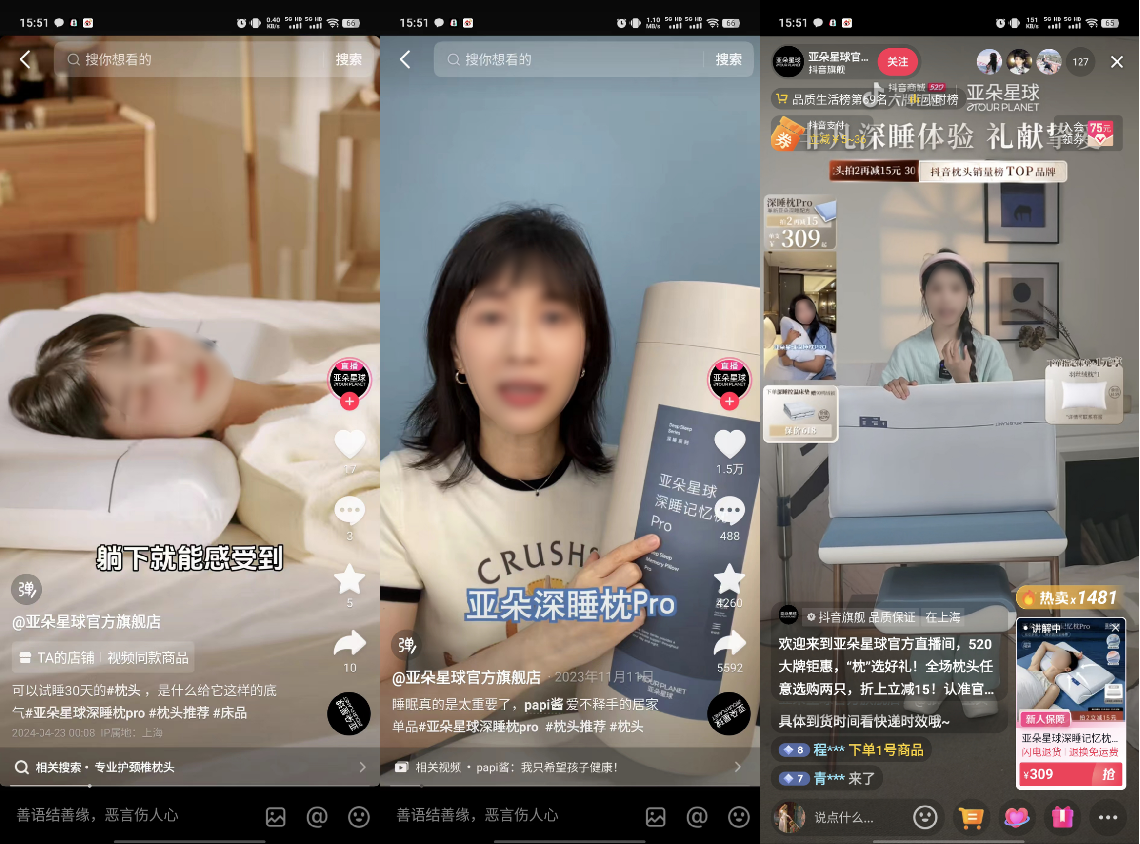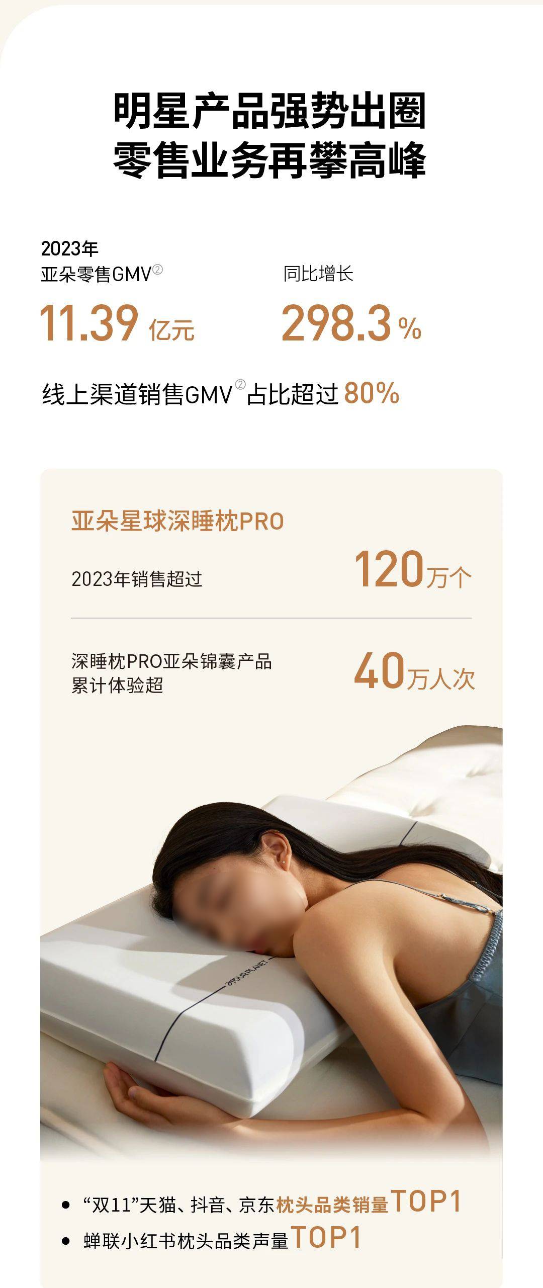 亚朵,一个酒店品牌,活生生做到了枕头类目的第一名。 前段时间,亚朵集团发布了上市以来第二份年报,这份年报中显示聚焦“深睡”场景的新零售业务GMV超过11亿,同比增长298.3%,其中线上渠道销售额GMV占比超过80%。 ![]() ▲图片来自亚朵 其中,明星产品亚朵星球深睡枕pro全年销量超过120万个,在2023双11期间登顶抖音、天猫、京东多个电商平台销量榜TOP1。 近年来,不少睡眠品牌崛起,而其中不少品牌正是从枕头品类切入的。 睡眠生意为何如此吃香?还有哪些机会可以发掘?为了睡个好觉,人们到底多舍得花钱? 01、亚朵朵出圈,从“不务正业”开始 如果要问哪家酒店最有带货潜力,那一定非亚朵莫属。 亚朵,一个创立于2013年的中高端连锁酒店,如今枕头比酒店更出名。 打开社交媒体搜索关键词“亚朵”,你会发现更多绝大部分的推荐关键词指向“亚朵枕头”,以抖音为例,#亚朵星球、#亚朵枕头 等话题播放量超过6亿次,而#亚朵酒店 播放量只有2亿次。 ![]() ▲图片来自抖音 2023年开始,亚朵在各大电商平台开启了激进的、迫切的带货模式。频繁地发起饱和式营销,在社交媒体上开启了轰炸式种草,官方旗舰店开启了“日不落”直播模式。 ![]() ▲图片来自抖音 在抖音上,亚朵发起了话题挑战赛#亚朵星球深睡枕pro,联动何洁、曾黎等明星,还有痞幼、聂小雨、papi酱等头部KOL达人,开启了疯狂种草模式。 ![]() ▲图片来自抖音 话题内也打通非常丝滑的转化路径,下拉话题页面直接跳转@亚朵星球官方旗舰店 的直播间,点击页面内的产品详情按钮则会直接跳转到商品详情页。 产品方面,亚朵拥有千万会员深睡反馈,知道用何种方式满足人们“睡个好觉”的诉求,拥有了属于自己的「亚朵深睡配方」。 并在产品上进行创新,比如2023年亚朵推出新产品亚朵星球深睡枕pro,采用上层深睡眠,下层记忆棉的“双层枕芯”设计,能够更好地解决人们的睡眠困扰。 ![]() ▲图片来自抖音 亚朵还在场景营销上下足了力气,除了购买枕头能享受到的30天的无忧试睡服务。在线下酒店,也支持通过亚朵锦囊定制深睡体验,享受深睡枕pro的送枕上门服务。 ![]() ▲图片来自亚朵星球公众号 本就拥有数千万会员的亚朵,在一连串的饱和攻击之下,在社交传播上,快速形成裂变,给品牌带来了极高的流量和热度。在产品、体验、服务、营销多方面的加持下,目标客群始终非常清晰亚朵深睡枕pro的爆火,自然就水到渠成了。 2023年,在抖音平台枕头类目销售额超过25亿,占家居家纺市场份额7.94%,同比增长81.16%。在枕头类目TOP200中,亚朵耳星球市场份额占比超过12.42%,销售额同比增长1701.88%。 亚朵成为了名副其实的枕头类目的头部品牌。 02、老品牌式微,新锐品牌抢占市场 抖音上的消费者也越来越舍得为一个好枕头花钱,目前抖音的枕头类目价格带主要集中在10~50元、50~100元、100~300元三个价格带,其中100~300元价格带的销售额占比超过29.08%,销售额同比增长了87.47%。 其中纤维枕、乳胶枕、保健枕三种品类瓜分枕头市场超过94%的市场份额。 传统的水星家纺、富安娜等家居家纺巨头依然被新锐品牌远远地甩在后头。目前,枕头品类的品牌TOP5整体集中度为29.90%,其中TOP5品牌为亚朵星球(12.42%)、翼眠(9.76%)、南都圣草(3.97%)、埃尔维卡(2.34%)、觉中阁(1.41%)。 而激烈的市场竞争面前,这几个品牌走出了各自差异化的路线。 翼眠是一个专注于睡眠领域的国货新锐品牌。2019年翼眠瞄准抖音平台,成为最早一批入驻抖音的“原住民”,2023年抖音平台上年销售额超2.5个亿。 ![]() ▲图片来自抖音 翼眠主打无压枕,材质上选用TPE高弹体聚合物,这种材质具备强回弹、强支撑,能够为肩颈部位释压,更能做到颈椎的保护,从而有效促进深层睡眠。 而主攻“艾草枕”细分品类的南都圣草,也迎来快速地爆发。 2023年全年销售额超过1亿元,环比增长3,521.77%与亚朵、翼眠不同的是,南都圣草瞄准的是低端市场,品类平均成交价为51.88元。 ![]() ▲图片来自抖音 南都圣草的成功主要有两个关键点。一是抓住精准人群,和新锐睡眠品牌不同,主推艾草枕的南都圣草的主力消费人群是的41岁以上的中老年群体,占比超过54%。 另一方面,南都圣草非常重视达人营销种草, 全年合作抖音号超过8400个,远超同类目的其他品牌。在达人选择上,更加偏向小达人,通过海量的小达人触达更多的下沉市场。 另一个品牌觉中阁,则是追究极致的性价比,平均售价在20元左右羽丝棉枕,全年卖出100多万个。主打低价策略也让觉中阁,成为TOP5品牌中,唯一一个以视频带货为主品牌,视频带货占比超过60%。 随着越来越多的人渴望睡一个好觉,曾经作为床品类配角的枕头,也不断开拓出属于自己的市场。从乳胶枕、纤维枕的新品类,到羽绒枕、棉花枕等传统枕头,以及注重功效的保健枕、花草枕,市场越分越细,价格也越来越高。 03、3亿人入睡困难,苦睡眠久矣 人的一生,有1/3的时间是在床上,但想睡个好觉,却并不简单。 根据《中国睡眠研究报告2024》显示,2023年国人睡眠指数再次下降,每晚平均时长与2022年持平,但被调查者出现了主观睡眠质量更差、入睡时间更长、更多使用睡眠药物等情况。 ![]() ▲图片来自中国社会科学社会学研究所 在高速发展和内卷的今天,睡眠也孕育出巨大市场,艾媒咨询的报告显示,2023年市场规模达到4955.8亿元,并预计到2027年将达到6586.8亿元。人们关于睡眠