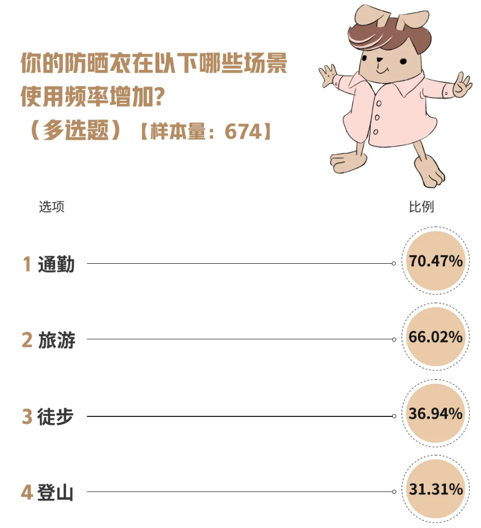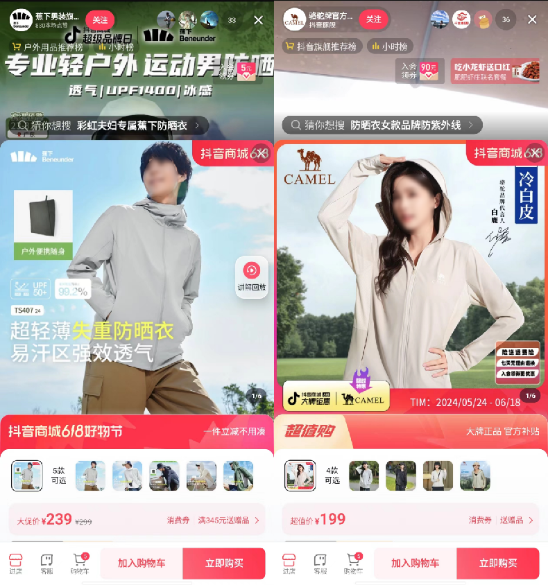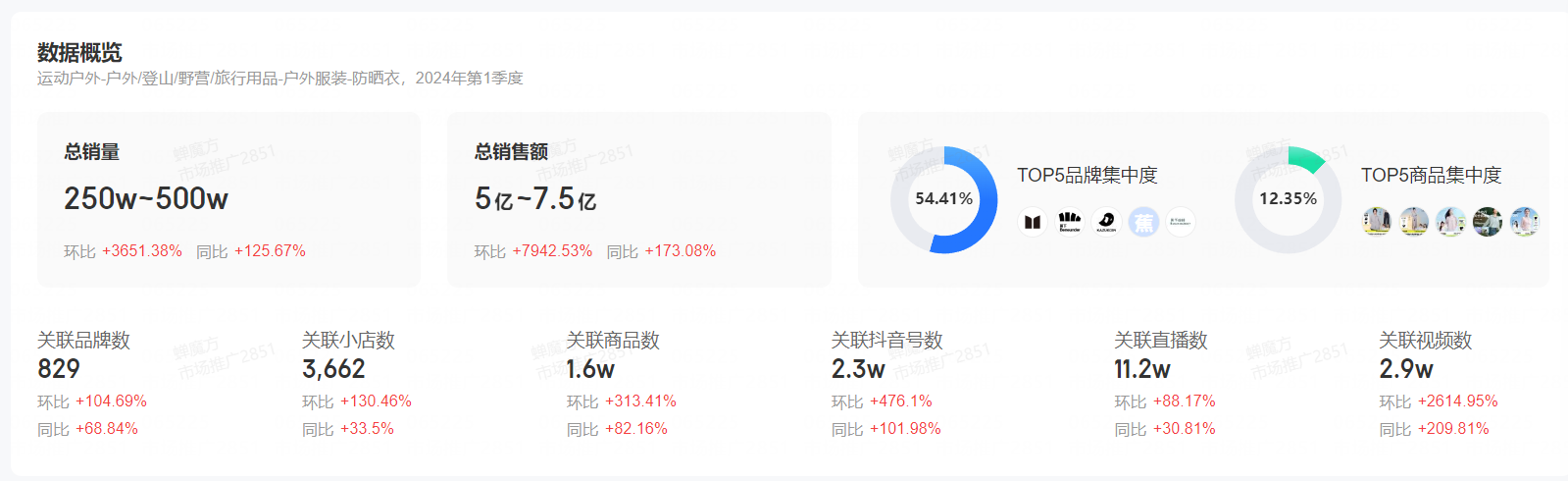 防晒衣赛道太火了。 根据巨量算数显示,自24年2月以来,“防晒衣”一词的抖音搜索指数持续上升,搜索量同比增长194%。 ![]() ▲图片来自巨量算数 随着近年来,各地的高温记录不断被刷新,“全副武装”应对防晒,已经是人们的常规操作,打开小红书搜"防晒",显示有超过1000万篇笔记,有超过200万件商品。 ![]() ▲图片来自小红书 还有不少网友分享到自己防晒穿搭,防晒帽、防晒面罩、防晒衣、防晒手套、墨镜,这届网友们对防晒重视程度,即便是契诃夫看到了都得落笔写下一篇《装在防晒衣里的人》。 ![]() ▲图片来自小红书 随着人们防晒意识的加强,防晒衣迎来巨大的爆发,从小众的功能性服饰,摇身一变成为这个夏天人手一件的大爆款。 01、“防晒衣”夏日最好的医美 防晒是一个庞大的市场。 根据艾媒咨询、蕉下联合发布的《中国防晒衣行业标准白皮书》显示, 防晒衣以超50%的市场占比成为防晒服配市场的重要组成部分,预测2026年中国的防晒衣市场将达到554亿的水平。 ![]() ▲图片来自艾媒咨询 “防晒”已然成为一门学问,在社交媒体上有人科普软防晒、硬防晒的区别,有人测评各类防晒产品的真实效果,还有人分享防晒穿搭。 在抖音,#防晒 话题的播放量超过400亿次, 小红书上关于#防晒 的笔记浏览量超过35亿次。 ![]() ▲图片来自抖音、小红书 根据蝉魔方数据显示,2024年第一季度在抖音平台防晒衣类目总销售超过5亿元,同比增长173%,近30天内有超过25个品牌品类销售额超过1000万。 ![]() ▲蝉魔方-行业数据概览 为了更好地迎合消费者,防晒衣在设计上逐渐向时尚靠拢,向日常百搭外套转型。 前段时间,茉寻带着新品,先后登陆伦敦时装周、上海时装周,将“防晒衣”打上了“时尚”的标签。 在伦敦时装周上,网红博主易梦玲穿着茉寻新品惊艳亮相,迅速成为各大平台的热门话题,引得无数网友惊呼「防晒衣界的时髦精」。 ![]() ▲图片来自小红书 这款易梦玲同款冰钛原纱防晒衣也迅速走红成为热门的大爆款,主打轻薄、低饱和度,与时下流行的薄荷曼波穿搭相适配,在抖音销量超过8万单。 除了时尚度的提升之外,防晒衣在功能性上也做了升级,加宽的帽檐、遮全身的长款、延伸成面罩的领口、可收束伸缩的下摆,主打一件顶多件。 ![]() ▲图片来自网络 此外,近几年户外风的流行,也让防晒衣的使用场景更加专业化。 根据有意思报告发起的“2024防晒衣调查”显示,徒步、登山、露营、骑行等“硬核”户外项目中,防晒衣的穿着频率明显增加。除了,防晒凉爽之外,更要防雨防泼水,集聚机能感、科技感为一体,是消费者新偏好。 ![]() ▲图片来自小红书 02、防晒衣赛道,全明星大乱斗 当下消费者对防晒衣的需求更综合,除了“防晒性能”之外,还希望能有更好的亲肤性,长时间穿着更舒适,款式更时尚潮流,更有科技含量,以及更轻薄。 这也开启了防晒衣品牌们的“大乱斗”。 除了茉寻登录时装周,让防晒衣变得更“时髦”以外,其他的品牌也在拼命地卷。 ![]() ▲图片来自抖音 蕉下今年推出了主打超轻超薄无负重,口袋自收纳的轻薄收纳系列,整衣重量仅145g。 骆驼全新的“冷白皮”系列,则采取了原纱防晒面料,添加TIo2防晒因子,从面料和防晒技术两方面满足消费者对防晒衣“更耐洗”的需求。 今年1~3月,抖音平台上防晒衣品牌TOP5的整体集中度为54.41%,TOP5品牌分别为,茉寻(18.58%)、蕉下(13.22%)、小野和子(9.92%)、蕉下客(7.98%)、蕉下森林(4.71%)。 骆驼、北面等老牌户外品牌,分别以151.1%、96.68%的销售额同比增长紧随其后。 ![]() ▲蝉魔方-品牌TOP200 品牌白牌,相互厮杀,各显神通。 除了新锐品牌和老牌户外品牌之外,不少白牌也涌入防晒衣赛道 如主打大码防晒衣的菇娘家,第一季度销售额超过250万,同比增长36w%;dream sign品牌同样销售额超过250万,同比增长66.1w%。 ![]() ▲蝉魔方-品牌TOP200 此外,在1688和拼多多上,还有大量号称“大牌平替”的防晒衣白牌,以30元的价格狂卷市场。 ![]() ▲图片来自拼多多 目前,抖音平台防晒衣产品的价格带主要集中在100~300元,销售同比增长213.47%。 根据观察,蕉下、小野和子等新锐品牌的平均成交价格在150~200元之间,而北面、凯乐石等户外品牌的价格则上探到700~1000元以上。 ![]() ▲蝉魔方-品牌TOP200 在这场角逐中,品牌们都不约而同地看中了明星&KOL的带货能力。据不完全统计,24年已有超过6个品牌官宣明星代言人。 ![]() ▲防晒衣品牌代言人(部分) 比如,在近期的热门综艺《浪姐5》中,戚薇等多位女明星穿着防晒衣排练,SINSIN也在小红书设置明星姐姐同款,便于消费者们快速购买。 ![]() ▲图片来自小红书 此外,头部KOL们的种草能力也不容小觑。根据蝉妈妈显示,近90天防晒衣相关的热门视频中,胡凯旋、王七叶、白昼小熊、方圆等头部KOL分别与骆驼、小野和子、茉寻达成合作。 无论品牌白牌,都在押注防晒衣赛道,从功能、材料、设计、价格到营销全方面地开卷。 03、防晒衣还能如何进化 防晒衣赛道的供需两侧都在推动整个行业的发展,带动市场焕发新活力。 目前防晒衣市场体现出以下3大趋势: 穿着场景的多元化。 尽管户外运动的穿着场景还在持续增长,但根据有意思报告发起的“2024防晒衣调查”显示,“通勤”才是大多数人穿着防晒衣的主要场景。 ![]() ▲图片来自有意思报告 防晒功能与时尚的结合。 防晒衣不再局限于功能性,在款式