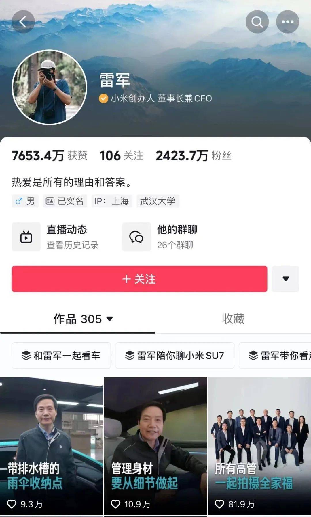 来源:镜观台(ID:JINGGUANTAICN) 文 | 惠鹏权 如果说“996”是员工的福报,那么,在社交平台发视频、做直播、被车主留言“轰炸”就是车企领导们的福报。 5月27日,比亚迪多位高管集体在抖音平台录制视频,宣告正式入驻。这是继长城汽车17位高管入驻微博、广汽系多位高管入驻视频号后,车企的又一次集体出道。 车企之所以越来越重视社交平台,一方面可以给品牌带来更多关注,增加新产品和技术的曝光度,一方面可以和消费者直接沟通,了解到最真实的声音。当然还有一个略显无奈的理由,即别家车企都在卷了,自己不做就落后了。 比亚迪高管的集体亮相显然是对5月28日新技术发布的一次宣发预热。 有利就有弊。车企高管视频的留言区就堪称大型维权现场。在比亚迪品牌及公关处总经理李云飞的抖音视频下面,很多消费者就提到了车辆出现了诸如异响、螺丝生锈、售后服务较差等问题。 暂且不去考证消费者所说是否属实,也不去追踪车企会不会就消费者反映的问题一一妥善解决,仅车企高管“放下面子”,从幕后走向台前,在直播平台和消费者积极互动,就是一种进步。 如果车企能真正听取消费者意见,接受监督,一起提升产品质量就更好了。 车企高管“卷”向台前 现在打开任一社交平台,都能刷到车企高管的视频,或新人报到,或传道授课,或分享工作生活日常,时不时穿插一些新产品的亮点,呼吁大家关注自家新车型。 说起来,蔚来董事长李斌在去年12月进行的“亲测150度电池包”直播活动,开创了车企老板直播的先河。 3月14日,李斌又开启了他个人抖音号的第一次直播,积极回复网友的问题,讲解蔚来的产品和理念,甚至还让妻子出镜回应几年前的“翻车”事件,收获了无数网友的点赞,当然还有打赏。 ![]() 来源/李斌抖音账号 镜观台截图 据他透露,当晚的打赏收入为33088元。 360集团创始人周鸿祎在李斌首秀结束后,和他通了电话。李斌告诉周鸿祎,直播这种方式能够和用户进行更直接沟通,非常满意。 此后,李斌经常通过个人账号发布“怼脸”视频,当起了网红博主,将好人缘的形象传播给了更多网友。 说起汽车圈的网红博主,哪吒的投资人周鸿祎也不得不提。北京车展的第一天,周鸿祎穿着标志性红色上衣出现在各家展台,和车企负责人交流,甚至翻身爬上猛士917车顶,吸引了无数的目光,也出现在了各个媒体的头条,成为车圈顶流。 事实上,在北京车展前后,越来越多的车圈大佬都走进了直播间,入驻各个社交平台,开始下场做营销。 长城汽车董事长魏建军不仅自己做直播,还批评自己的营销人员缺乏市场敏感性。长城汽车首席增长官李瑞峰引述魏建军的话表示,“完全没有用户思维,用户关注什么全然不知。干了这么多年,如果还是老一套,花钱就是浪费,结局就是白干!” 正是因为汽车行业的越来越卷,不仅是长城,长安汽车董事长朱华荣、奇瑞汽车董事长尹同跃、吉利汽车董事长李书福等等大佬都被“卷”进了直播间。 其中,朱华荣透露,他曾问华为常务董事、终端BG董事长余承东,流量密码是什么?得到的回答就是“必须亲自上场”。 流量能带来什么? 所以,朱华荣在北京车展开启直播,带网友了解旗下车型,与华为、广汽、小米等企业积极互动,直播阿维塔的无图智驾,介绍2024款阿维塔11的“三高”,高颜值、高科技和高价值。 从互动评论中可以看出,长安汽车掌门人让更多消费者认识了车型亮点,吸引了较大关注。 也有网友诟病其介绍得不够有趣。“雷军会怎么介绍这车,你想过吗,干瘪瘪的介绍不能打动我。”而朱华荣回复称,“学习中”。 小米董事长雷军在小米SU7发布会上,用两个多小时详细讲解了小米SU7的各项功能和特点。用网友的话说就是,活泼生动,对产品了如指掌。“他像慈父般对待小米SU7,细致解读每一个细节,展现出对产品的极致追求。” 周鸿祎就告诉哪吒汽车CEO张勇,多学习小米,多向雷军学习。 不过也有业内人士认为雷军过度包装。但这并不影响全程直播发布会超过1.1亿的观看人数,也不影响小米SU7上市4分钟,大定破万;上市7分钟,大定破2万;上市27分钟,大定5万辆。 多位小米车主表示,他们是冲着雷军而买的车。镜观台了解到,雷军个人仅在抖音的粉丝已超过2400万人。 ![]() 来源/雷军抖音账号 镜观台截图 截至今天,小米SU7的销量传奇还在上演。3月28日上市,上市28天后的4月25日,小米SU7锁单量为75723辆,交付5781辆。雷军也在近日表示,6月至少交付1万辆,全年保10万辆冲12万辆。 毫无疑问,汽车作为大宗消费品,销量的好坏,车企老板影响力是一方面,产品的竞争力也是关键因素。 朱华荣认为,个人IP或精彩的发布会可以获得短期流量,这对于产品推广、品牌推广非常好。但长期流量是以用户为中心,创造的产品价值、服务价值或者其他新的价值,这才是最根本的。 天使投资人、资深人工智能专家郭涛也持同样观点。企业高管通过成为流量吸引公众目光,提升品牌知名度和获得市场关注。汽车销售的核心应当是产品的质量、性能以及技术创新。 淘汰赛进行时,不得不卷 2024年,车企淘汰赛激战正酣。几乎所有的车企负责人都躬身入局,为自家产品摇旗呐喊。卷老板、卷流量,成为了当前汽车行业的明牌。 广汽集团董事长曾庆洪就表示,整个市场已经打得头破血流,车企不是在“让利”,已经到了“让本”的不正当竞争阶段,这显然不利于产业的健康