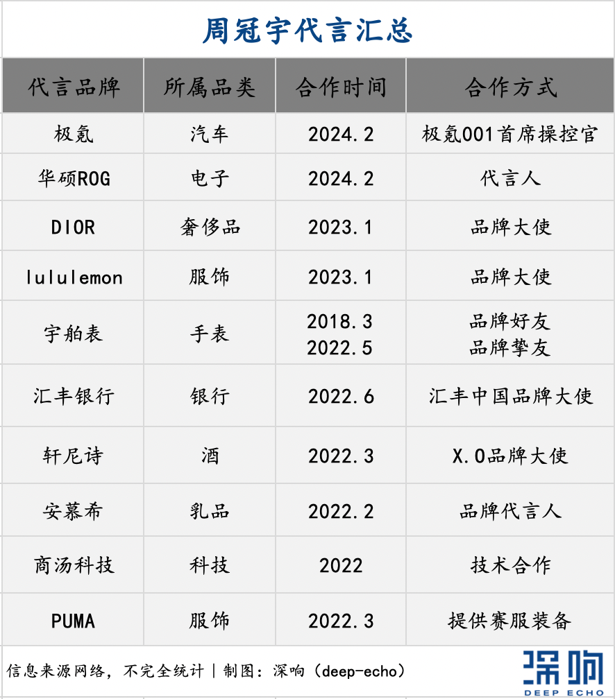 厘清受众的类别与价值后,我们再来看品牌,一档体育赛事的覆盖率毋庸置疑,品牌都想借此“跃升”,但投入的预算不同、目标不同,玩法也就不一样,需要具体问题具体分析。 比如有的品牌拿下了赛事官方赞助身份,那相对其他品牌来说获取到了营销资源上的相对竞争优势,毕竟具有全球性、全国性影响力的大型体育赛事属于“稀缺性资源”,那品牌在此基础上做营销的关键便是「告知身份」,利用好官方体育资源的各类资产放大曝光,同时在站外做好流量承载,顺势转化,打出一套营销组合拳。 刚完赛的F1与联想的合作就是典型的例子,作为F1中国大奖赛的冠名商,联想在看台、赛场logo全程出镜,刷足存在感;与其他赛事不同,F1技术含量更高,联想也拿出了“硬实力”陪跑,从数据采集到智能直播,全程保证观众观看体验;在赛场外,与此同时,品牌推出all black联名款也刷了一波男性车迷好感度,提升了品牌印象。 事实上,官方赞助身份是一种极“烧钱”方式,随便一个赞助少则几百万、多则上亿,最忌讳投钱听不到响,丰富玩法之外,「归因」也相当重要,当品牌投完一项赛事后,市场对赞助产品的认知和态度是否变化、赞助商品或服务的销量是否增长等都是关键的测量指标。 ![]() 联想xF1 有的品牌没有拿下官方身份,但有充足的预算,那做营销的重点就变成了“创造体育身份”,让观众产生品牌与赛事的联想,更适合围绕着爆款IP做衍生、捆绑的玩法。 2022年英超赛事期间,剑南春冠名定制了一档沉浸式足球谈话节目《剑指巅峰》,黄健翔、苏东、张路等名嘴齐聚,在酒吧中畅谈足球热点、聚焦英超焦点赛事,其中品牌以背景板、花字、产品、口播做到全程曝光。这个过程中,定制综艺其实就创造了剑南春与英超的联结身份,更好实现人群触达。 ![]() 综艺露出 如果既没有官方身份、也没有预算的品牌,那做赛事营销的重点则可以放在辐射体育爱好者、女性用户,做品牌调性的积累。 传播的阵地以社交媒体和线下活动为主,在社交平台上打造赛事相关话题,用抽奖刺激,增加用户的互动欲望,线下则可以打造健康跑主题活动、定向越野等品牌活动,以这种“曲线式”玩法来扩大外围的传播机会。 所以不管有没有拿下官方身份、预算多少,找到了赛事和品牌的连接点,便有机会借赛事的曝光转化为品牌的增长。 运动员签约:提前押宝、长线绑定 在赞助赛事以外,品牌赞助“人”的趋势越来越明显。 接二连三的「体育大年」刺激,运动员的商业价值飙涨。国际市场上,2024福布斯年度运动员收入排行榜显示,前十位体育运动员首度齐齐突破1亿美元,总收入同比去年增长24%。收入激增的原因之一则在于广告代言费用等场外收入的增长。《福布斯》估算,詹姆斯的场外收入高达8000万美元,是世界收入最高的运动员中最成功的代言人。 再来看国内市场,品牌签约的重点也在从娱乐明星向体育运动员倾斜。艺恩数据显示,2023年共有907名明星接到品牌代言,其中体育类目代言人数量达140位,同比增长近50%。今年以来,运动员代言的频次也明显变得密集,据不完全统计,今年一季度约有16位运动员拿下新增代言,覆盖了快消、运动、美妆、汽车、电子等品类。 其中,F1车手周冠宇在四月完成上海主场比赛首秀后,一季度新增了极氪、ROG等品牌代言,再叠加之前的Dior、lululemon、宇舶表、轩尼诗、汇丰银行、安慕希,签约品牌共计十家,商业价值正在持续爆发。 ![]() 除了签约运动员,赞助单项国家队也是一种形式,女足、女排、男篮、羽毛球、跳水等国家优势项目,目前都有多项代言品牌在手,像今年一季度,跳水队、羽毛球队分别拿下了蓝月亮、伊利的品牌合作。 其实品牌签约运动员为代言人历年就有,二者长久合作颇受好评的案例也不少。但方骏观察,2020年以来签约数量比之前有明显的增长。一方面,大型赛事通常两年甚至四年一次,曝光很难“长久”,而运动员可以作为热度的落脚点,保证曝光;另一方面,娱乐明星“塌房”常见,运动员有大众知名度,有官方身份背书,还是赛事期间的曝光度与热度,再加上冠军天然的上升优势,完全可以代替明星。 这一波新的签约代言,其标准、玩法也有一些明显的特点。 第一,品牌“海投”,合作轻量。相比之前品牌对一位代言人“一投到底”的玩法,现在越来越多的品牌会赛事前签约多位运动员,艺恩数据显示,2023年伊利一口气签约了19位运动员,从夺冠热门到比赛新秀全都涉及。在代言头衔上,不少品牌会更倾向活动代言人、大使等短代。 第二,长期陪跑,共同成长。对于有黑马潜质的运动员,品牌也愿意提前押宝,长期携手。比如2022年开始,蚂蚁集团就签下郑钦文出任品牌追光大使,直到2024年,郑钦文一举拿下澳网亚军,蚂蚁的敏锐力和执行力可见一斑。 ![]() 当然需要注意的是,运动员并非和负面绝缘,特别是这两年因为运动员负面波及到品牌的例子愈发常见。此前就有知名运动员涉赌债纠纷、传播女明星隐私的新闻引发关注,而其涉及到的代言品牌包括可口可乐、安踏、燕京啤酒、平安车险,相关舆论扩大后,近十个品牌“紧急公关”删除相关物料。 总之品牌签约运动员之后彼此相互影响、相互牵连,在看中运动员身上的正向价值之外,也要做好备案、可以及时处理运动员引发的危机。 2024,体育营销新挑战 2024年,体育营销已从蓝海变成红海,由此带来了更多的挑