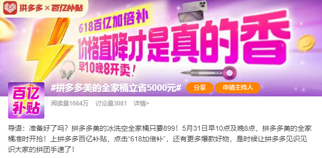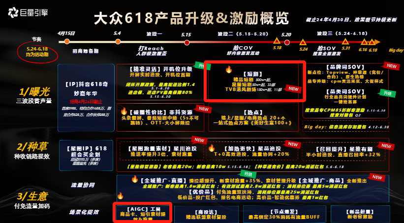 来源|松果财经 作者|Manjusaka 今年多数平台5月20日前后就抢跑开卖,淘宝、京东、快手等平台取消了“预售模式”,腾讯发力视频号电商,小红书通过店播方式入场。对此,头部主播公开表示“今年大促是难的 但我喜欢逼自己一把。” ![]() 图源:微博 今年大促节里,还有哪些新看点?电商平台又该如何点燃这届“618”? 去繁就简,618回归初心 电商行业大促在“王小二过年”的用户关注度变化中竞争加剧,这一点体现在促销时间延长、取消预售等方方面面。 首先,618卷成“520+618”双节同过,大促抢跑成常态。 今年多家平台早早提前上线618。从公开信息来看,5月16日,天猫就开始提前发放88VIP专属大额消费券。淘天方面宣布5月20日晚上8点,天猫618现货开卖。此外,拼多多于5月19日提前开启今年618大促,京东618的预售活动实际上从5月23日就开始了。 ![]() 图源:天猫微信公众号 其次,大促活动去繁就简成趋势。头部平台今年全部采取了“不预售不熬夜”“不用等、不延长”的玩法,因此被网友称为“最听劝的一届618”。 拼多多宣布跨店每满200减30,并额外为每位消费者发放618元的补贴券包,百亿补贴、秒杀等频道也同时上线新玩法,不预售不熬夜,确保消费者用最实惠的价格即买即得。 天猫618采取了取消预售,五折会场回归,美妆、3C、服饰等品类券加量加倍且可叠加平台活动使用,以及百亿补贴200款大牌“全家桶”低至二折等一系列手段。 京东618活动期间,消费者不仅可享受跨店每满300减50、官方立减15%等福利,京东服饰还将全面参与百亿补贴,每位用户还可于5月29日至6月5日每天领取满1200元减100元、满600元减50元的服饰万能惊喜券。 不管是活动周期的延长,还是玩法简单化,都证明激烈竞争在倒推平台改变。去年拼多多市值超过阿里,小红书、视频号一众新玩家加速布局等行业信息,反映出市场环境的剧烈变化,寻找破局方向成为电商行业迫切的命题。 短剧“抢戏”直播电商,电商行业重分“蛋糕”、重定打法 今年618还有不少新变化,同样也揭示了行业趋势。比如,在直播电商、内容电商等兵家必争之地中,老玩家守擂艰难。新玩家来势汹汹,采用了不少新打法抢流量。 直播电商是行业增长最快的领域之一。《2023年中国直播电商行业研究报告》显示,2023年直播电商成交额已经达到4.9万亿元,实现了35%的增速。这一趋势下,入场分蛋糕的玩家越来越多,也引发了一系列连锁反应。 一方面,今年新玩家明显增加,京东和拼多多618齐齐发力直播电商,小红书、视频号电商都成“搅局者”。 京东官方直播间疯狂“整活”。比京东家电家居5月19日在官方微博称,要“比价正面刚”。随后陆续用上了“+7”“快乐‘佳’倍”等谐音梗,京东家电家居直播间主播亲口说在李佳琦给出的价格上打八折。 ![]() 图源:微博 而拼多多面向KA品牌招商上线了“618品牌扶持活动”,加大直播扶持力度。在当周完成相应的成交销售额,次周即可获得广告红包奖励,单个主播每周最高可获得7000元广告红包及千万级免费流量扶持。 此外,视频号直播电商完善布局,小红书电商发力店播的效能逐步显现。 微信内部5月28日发布公告称,视频号直播电商将并入微信开放平台,与小程序等交易相关的团队整合到一起,便于提升交易效率和探索新模式。 小红书5月21日发布“小红书618直播季”开门红战报,数据显示,618首日,小红书电商直播订单数为去年同期的8.2倍,首日直播成交GMV为去年同期6倍,首日店播开播数量为去年同期的3.8倍,店播GMV为去年同期的4.2倍,店播实现高速增长,成为商家最强增长引擎。 直播电商乾坤未定之际,电商江湖风云再起。 另一方面,头部大主播表现不佳,短剧成平台、主播带货新宠。 相比新入局的平台表现活跃,今年618老玩家表现平平,尤其是头部大主播有人“迎难而上”,也有人直接隐身。开启“618”爆品预售的李佳琦直播间未能带来惊喜,据“青眼情报”数据,李佳琦618预售第一日,直播间的美妆类目GMV同比下降46%。而疯狂小杨哥、罗永浩等抖音系主播的直播间则干脆没有多少“大动作”。 这一背景下,“一代新人换旧人”似乎是必然趋势。直播电商的先入局者逐渐将目光投向短剧这一领域。比如,从巨量引擎《2024年618大促产品资源方案》来看,抖音希望通过短剧、剧场等内容互动,做好热点、短剧,做大品牌声量,推动后续的搜索和交易;淘宝也与品牌联手尝试用短剧破局618,上线了巴黎欧莱雅冠名的《奶爸联盟》等多部品牌剧。 ![]() 图源:巨量引擎 除了平台方外,疯狂小杨哥发力“三只羊短剧”,辛巴的辛选与欧诗漫合作推出了《她似珍珠璀璨》。短剧挂上618促销商品链接,也成为大主播们拿出的新解法。 不过,本届618,主播们和短剧既不是C位看点,也算不上最佳“新人”。 “全家桶”成补贴大战plus版,AI电商或重塑电商生态 电商行业发展的一体两面,始终是消费端的价格和供给端的成本效率。对此,今年有两大重要看点,一是平台加速“回归价格”,价格战升级;二是大模型为行业带来降本增效的新质生产力。 今年618“全家桶”的超级折扣,反映了平台回归价格的大趋势。比如,京东618推出9.9、99、999元三档全家桶套餐,建材全家桶999元换新恒洁全套智能卫浴;淘宝百亿补贴加量30000套大牌“全家桶”,全网底价再打2折,戴森、松下、美的、九牧等大牌全家桶一口价888元;5月31日早10点及晚8