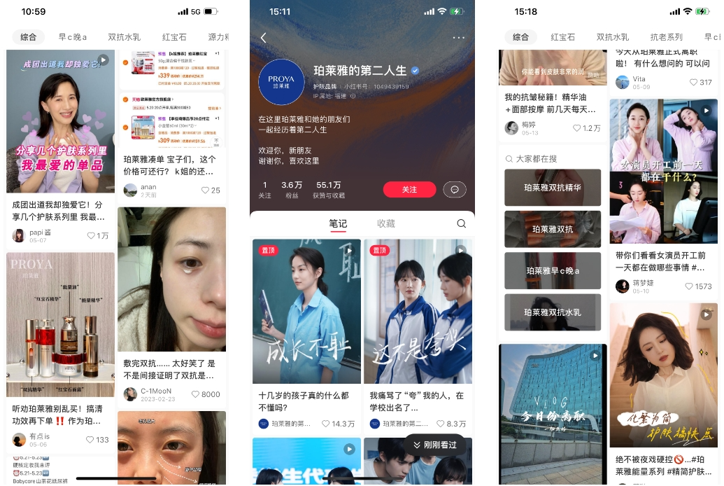 撰文丨文清 编辑丨少波 在美妆行业中,一直流行着一个老梗:5000种草笔记+2000条KOL问答+搞定头部带货主播=一个新品牌。这也是美妆新品牌崛起的“万能公式”。 但在品牌种草成本越来越高、各种电商平台激战、超头部主播逐渐被流量反噬的当下,这个“万能公式”正在失效,等号的左边,变量越来越多,而对于一个已经逐渐成长起来的品牌来说,等号的右边也变成了持续增长,那么有没有一个“万能公式”能够实现? 如果要选择一个品牌作为样本来总结出美妆品牌持续保持增长的“万能公式”,那么这个品牌一定是珀莱雅,自2017年上市以来,珀莱雅在营收和净利层面实现了稳定增长。一般公司会随着规模变大增速放缓,但珀莱雅在2023年录得了5年来的营收最高增速,甚至比2020年的增速高出了近一倍。 珀莱雅单品牌更是从2022年的50亿级飞跃至70亿级,反超昔日的化妆品龙头上海家化,稳坐国货美妆龙头的位置。而根据已有公开数据,珀莱雅成为首个营收逼近90亿的国货美妆上市公司,照此势头,今年破百亿可能性很大。 珀莱雅是如何保持持续增长势头并且实现盈利增长的?高增长背后,珀莱雅在全域布局上有哪些能力展现?对于美妆品牌来说,实现持续增长的“万能公式”真的存在吗?美妆品牌还有哪些增长的可能性?我们将以珀莱雅作为观察对象,试图为您呈现以上问题的一些思考,具体展开方式如下: 1、珀莱雅品牌研究和美妆行业格局变化; 2、珀莱雅的全域布局拆解; 3、珀莱雅持续增长背后的“万能公式”; 4、美妆品牌在微信生态上的可能性探究。 01.珀莱雅:拥抱变革,狂飙突进 让我们先来回顾一下珀莱雅发展历程中的几个关键节点: 创立:2003年,做美妆产品代理出身侯军呈和方玉友创立珀莱雅,选择把渠道放在美妆大牌来不及渗透的、下沉市场的CS店,即美妆产品的集合连锁专卖店。 第一次渠道变革:2010年起,珀莱雅频频进入商超百货专柜渠道,最多时在全国拥有2万多个网点; 第二次渠道变革:2017年,看到线上电商的红利后,珀莱雅决定坚决转型线上,放弃线下; 第三次渠道变革:2019年,直播电商兴起,珀莱雅开始接触各家头部直播,不仅在当年通过直播打造出了线上爆款“黑海盐泡泡面膜”,线上线下营收占比也达到了1:1。 可以看到,在珀莱雅的发展历程中,几乎每次都能踩住行业变革的关键节点,这也带来了珀莱雅的持续高增长。自2017年上市至2023年,其营收实现了七连涨:从17.83亿元飞涨至89.05亿元,归母净利润也从2.01亿元增至11.94亿元。 今年一季度,珀莱雅业绩也取得了开门红。财报显示,2024年第一季度珀莱雅总营收为21.81亿元,同比增长34.56%;归母净利润为3.03亿元,同比增长45.58%。分析人士认为,若按照珀莱雅当前高双位数的增长速度,2024年营收突破百亿已是“板上钉钉”,更有望冲击120~130亿。 不过在高速增长的同时,珀莱雅也面临着“内忧外患”。 从内部来看,珀莱雅虽然在营销上获得了巨大的成功,比如率先抢占“早C晚A”的用户心智等,但是重营销的发展模式是否适合新阶段的珀莱雅,一直是众说纷纭。从珀莱雅近期CMO叶伟离职这一事件来看,虽然珀莱雅对于其离职原因以及离职后的去向没有过多回应,但作为珀莱雅在产品和营销上重要推手,叶伟的离职,或许释放了某些战略转型的信号,也带来了更多的不确定性。 从外部环境来看,从去年开始,抖音正式挤下天猫成为美妆行业的营销主流平台,但无情的算法又让品牌在抖音的生意利润空间越来越低;品牌想要绑定一个超头来完成起盘达成业绩的简单做法,已经不再那么有效,甚至开始充满风险;同时,网络舆情变得难以掌控,美妆品牌从来没有像现在这样,随时可能跟掌握着社会主流话语的舆论受众在社媒上产生直接冲突。 据不完全统计,接近30个品牌在2023年关停电商平台的官方旗舰店、调整中国区业务、或者直接官宣品牌清仓倒闭。老玩家出局的同时,新玩家也在持续进场,搅动着美妆行业格局变化。极具反差感的故事背后,美妆行业面临的残酷现实昭然若揭:据青眼情报发布的数据,今年一季度中国化妆品市场规模为2196.3亿元,同比下降了0.28%,低开低走。 消费者变得更谨慎了,当国货美妆品牌遭遇价格诘问,高端化已然是“昨日黄花”,但“平替”之路也愈发艰难,特别是一些不上不下的品牌,更是处境艰难,行业到了变革的新十字路口。 02.珀莱雅全域拆解 在过去这些年的高增长中,渠道变革和产品营销是珀莱雅取得成功的关键因素,而渠道布局和产品营销放到今天,都涵盖在了全域经营的概念范畴中。所以,接下来,我们就对珀莱雅的全域经营按照人、场、货进行了拆解。 人:客群年轻化和一体化会员运营 (1)客群年轻化 在最开始的经销模式下,珀莱雅最早瞄准的是3-5线城市的“贵妇”群体,用户年龄大多集中在35-55岁。 不过随着电商平台的布局和全域触达,珀莱雅在这两年实现了人群的破圈:现在的客群已经拓展至1-6线城市,一二线甚至占比过半,年龄分布也是越来越年轻化,根据近两年的百度指数显示,珀莱雅在全网的受众群体中20-30岁的消费者占比最多,已经接近50%。 增长黑盒在报告中提到,若以抖音为例,2019年时搜索珀莱雅产品的人群中,31-40岁占比最高,到2023年时就已经变成了18-23岁占比最高。 ![]() (来源:增长黑盒) 2)全域会员运营增长体系 珀莱雅整合了线上线下各平台数据,搭建完整的全域会员运营增长体