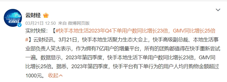 作者 | 张凯旌 编辑 | 趣解商业 外卖市场可能早已不是“蓝海”,但这并不影响短视频平台进来“搅一搅局”。 继抖音杀入美团、饿了么腹地后,快手(1024.HK)也在外卖领域加码布局。今年3月开始,快手进行了商品外送功能优化,在商家售卖的团购套餐中,快手不仅在服务保障中增加了“仅支持外送”的标签,还增加了“外卖到家”的功能服务,由快手本地生活开放平台提供技术支持。 “趣解商业”实测发现,目前在快手App同城板块的“优惠团购”入口下,搜索外卖等关键词即可找到相关商品,大都会标明“配送到家”或“外卖到家”字样,且需要下单后联系门店;其中还有团购套餐是直播间专享。 ![]() 来源:快手截图 不过,快手还没有像美团、饿了么那样的“骑手大军”,其配送服务目前由商家自行完成。 事实上,此前也有商家尝试在快手开展外卖业务,但由于平台尚未支持,配送服务还需跳转到其他路径,多的这一步操作也给消费者带来了额外的麻烦;现在,点单到配送全流程都能在快手实现,也不失为其正式进军外卖赛道的信号。 快手、抖音两大短视频平台纷纷入局,外卖江湖又重新热闹起来了? 01.快手外卖尚待起量 从目前的情况来看,快手切入外卖赛道的方式与抖音十分相似,但快手这一步走得似乎更显“谨慎”。 2021年底,抖音将本地生活业务独立为一级部门;2022年,抖音在北京、上海等地试水高客单价的团餐外卖业务,同时还与饿了么达成合作;2023年6月,据“晚点LatePost”报道,抖音外卖业务已放弃年内达成1000亿元GMV的目标,但这也侧面说明,“初出茅庐”一年的抖音外卖,就已经开始畅想年GMV达到千亿的可能性。 ![]() 来源:微博截图 相比之下,快手本地生活事业部是2022年10月成立;到了2023年3月,快手虽然也开始试水团购配送项目,但更多只是帮肯德基、海底捞和一些烤肉店引流,用户在快手上看到套餐后,需要去第三方平台填信息、下单。 其实,早在2023年2月,快手就已经推出官方本地生活小程序,并逐渐在交易环节搭建了闭环链路;不久后,还通过“种草官扶持计划”等手段鼓励达人参与团购直播。在达人探店内容方面,快手前期已有不少积累;截至6月13日,快手“探店创作者激励计划”、“美食探店”话题播放量分别达139.6亿次、297.7亿次。 ![]() 来源:快手截图 即便如此,快手平台还是到今年才开始真正上线团购套餐的外卖服务,且至今还是处于“浅尝辄止”的测试阶段。 目前,在抖音App的团购一级菜单下,想找到外卖入口并不难;虽然在商家数量上与美团、饿了么还有显著差距,但在热门城市主城区,距离消费者最近的外卖商家基本在1km以内,可以做到最快30分钟左右送达。 而在快手App,首先没有设置独立的外卖入口,如果不主动搜索无法找到外卖商家;其次,上线的外卖商家也并不多,除了肯德基等快餐外,大多数为经营烧烤、烤肉类的餐饮商家,且并未标明送达时间。 ![]() 来源:快手、抖音截图 不过,价格方面,快手上的部分店铺却要比抖音相同店铺便宜些。以“大桔家川派烤肉”的“18荤18素”套餐为例,抖音上显示“含电烤盘”169元,快手上显示“含烤盘”152元。 整体来看,快手的团购套餐还是集中在时效性弱、客单价高的品类上。而这也不难理解,在依赖第三方配送的情况下,商家想让骑手接抖音、快手的单,只能采取增加派单价的方式,如此一来就要花费比在美团上更高的成本。 02.快手寻增量 “所有团购都值得在快手重做一遍。”就在快手优化商品外送功能的同时,快手高级副总裁、本地生活事业部负责人笑古在3月举办的快手本地生活聚力生态大会上,讲出了这句意味深长的话。 笑古强调,今年要让所有到快手本地生活生态中的优质团购商家获得生意新增量。在他看来,快手给商家带来的机会,在于平台的增量用户;具体而言,就是这群分布在下沉市场、黏性强、愿意付钱给商家的“老铁”。 ![]() 来源:微博截图 快手切入外卖领域,或许也是遵循这个思路,将业务从“到店”延伸至“到家”,提升用户体验的同时,也能给商家提供更多商机。 但想要掀起“风浪”,快手还有很长的路要走。暂且不谈短视频平台入局外卖在功能优化、配送体系、售后履约等方面给平台运营制造的难度,目前快手本身,还在面临着流量见顶、“老铁摇摆”的尴尬处境。 Questmobile数据显示,2024年3月,国内短视频App下沉用户活跃渗透率榜单中,抖音以62.8%高居第一,快手则以38.9%位居次席;同一时间段,抖音的下沉用户达4.06亿,独占2.3亿用户,快手下沉用户为2.51亿,独占0.75亿用户。 ![]() 来源:Questmobile截图 换言之,在快手擅长的下沉市场,也被抖音拉开了一定差距。 在此背景下,2024年一季度,快手实际月活人数为6.97亿,环比下降0.4%,在以往借助春节假期投放获客的“旺季”仍呈现流失趋势;同时,快手日活用户的日均使用时长虽然环比增长,但相比2023年三季度还是有所下降。 盘古智库高级研究员江瀚认为,受用户基数较大,市场趋于饱和的影响,互联网平台流量增速放缓已经成为普遍现象;但快手月活的下滑,还是可能涉及平台内容、运营策略等多方面因素。 在江瀚看来,这可能会对快手的商业化变现产生多方面的影响;比如广告收入下滑、电商、直播等业务的转化率和盈利能力降低等;快手需要采取相应措施来维持其商业化变现的稳定发展。 ![]() 图片来源:罐头图库 商业化变现一直是快手重点