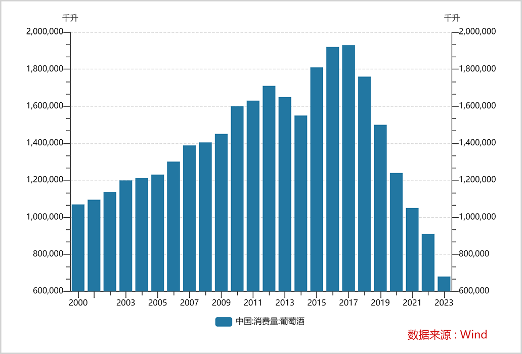 过去几年,外界几乎把所有的热情、兴趣乃至财力、物力都放在了白酒产业上,却少有人注意到,国产葡萄酒已经全线崩溃,甚至“全军覆没”了。 01、利润暴跌95% 2023年,全国规模以上葡萄酒企业产量14.3万千升,同比下降33.18%,距离2012年巅峰的138万千升更是减少了近90%。 另据中国酒业协会的数据,去年全国规模以上葡萄酒企业总销售收入只有90.9亿元,相比2016年464.54亿元的高点下降了80%。更惨的是利润,去年规模以上企业的利润总额仅为2.2亿元,创下历史最低,相较2015年52亿元的高点已经跌没了95%。 ![]() ![]() ▲图片截取自糖酒快讯大量企业被淘汰出局。 2023年国内葡萄酒规模以上企业的数量减少15家至104家,相比于2017年高峰时的244家减少了57%。 即便活着,也是苟延残喘。 以行业相关上市公司为例,根据公开披露的财报,2023年,威龙股份实现营业收入3.85亿元,同比减少22.85%,归母净利润为亏损1.55亿元;ST通葡2023年净亏损约7284万元,*ST莫高净亏损4143.86万元;中信尼雅实现归母净利润367万元,同比扭亏为盈,但扣非后归母净利润为-1869万元。 张裕几乎是唯一还具备盈利能力的上市企业,2023年,公司营收同比增长11.89%至43.85亿元,净利润同比增长24.20%至5.32亿元。但在今年一季度,张裕的业绩也出现了大幅下滑,营业收入8.11亿元,同比下降28.34%,归母净利润1.59亿元,同比下降42.57%。 事实上,中国葡萄酒也曾有过辉煌的过往,2000年,张裕先于茅台一步登陆资本市场,并在此后10年一路高歌。到2011年,张裕营收达到60.28亿,相比上市时的8.74亿增长了6倍,归母净利润高达19.07亿,相比上市时的1.27亿增长了十几倍。在此前的2010年,张裕股价达到历史最高点78.01元,对应市值近633亿元,而当时茅台的股价刚刚站上百元大关,市值1700多亿,净利润也只有50.5亿。 2010年的张裕可谓豪情万丈,时任董事长孙利强提出要在未来五年将产能扩大至40万吨,2014年销售收入达到百亿,净利润突破30亿元。以当时张裕的发展势头,这个目标并非遥不可及,没有人会想到,此后行业大环境会如此出人意料的急转直下。 02、夹缝里求生 2001年,中国加入世贸组织,按照约定,葡萄酒进口关税要在3年内从65%降至14%,此举造成的直接结果是外资品牌从2004年起大量涌入中国。 中国是一个没有红酒文化的国度,本土酒企在技术工艺、产区建设、品牌营销等方方面面均落后西方,长期以来市场并没有被打开。外资品牌带来了先进的发展理念、营销手段以及品牌价值,国内葡萄酒的市场培育因此得到有效发展,带动产业空间快速扩容,进口葡萄酒吃肉,国产葡萄酒则跟在后面喝汤,这才有了21世纪第一个十年整个行业的大发展。 民生证券此前做过统计,2002年-2012年,中国人均红酒消费量从0.25升大幅攀升至1.31升,即便在2008年-2009年全球金融危机期间,中国人均红酒消费量也依然保持增长,由2007年0.62升提升至2009年0.85升。 ![]() 2012年限制三公消费是一道分水岭,包括白酒在内的中国整个酒行业都遭受了一场巨大的洗礼。不同的是,白酒在经过短期调整后走向复苏,凭借品牌升级的逻辑再创辉煌,2018年-2023年,规模以上白酒企业的收入从5364亿增长到7563亿元。 白酒升级成功的根本在于中国拥有几千年的白酒文化,既拥有炉火纯青的酿造工艺,又拥有长期积淀的品牌价值,还拥有庞大的忠实客群,而所有这些,葡萄酒都不具备。况且每个人一年的饮酒量基本是个定数,白酒的向上很大程度上直接挤压了葡萄酒的生存空间。 另一边,中国葡萄酒的潜在消费者数量非常有限,早期外资品牌进入能为行业开拓增量,以张裕为代表的本土酒企也能从中受益,二者是竞合关系,但随着进口葡萄酒愈发强势和凶猛,双方逐步向存量竞争关系转变。根据中国酒业协会的数据,2015年进口葡萄酒在中国市场占有率只有32%,但到2020年这一数据已经提升到50%以上。 一边是白酒挤压,一边是外资同行打压,国产葡萄酒只能在夹缝中求生,一时方寸大乱,就拿领头羊张裕来说,过去十年整个公司的战略布局一直是飘忽和摇摆的。 2015年,张裕推出三大系列新品,战略目标直指进口葡萄酒;2016年张裕再次转身,布局大众价位和大单品葡萄酒;2018年,周洪江接替孙利强成为张裕新任董事长,又把白兰地作为新的发力方向。 多年操作下来,钱没少花,但始终不见起色。整个周洪江时代,张裕的营收由2018年的51.42亿下滑到2023年的43.85亿,归母净利润更是由10.43亿降至5.32亿,直接腰斩,期间被周洪江寄予厚望的白兰地业务收入也只是从9.99亿微弱增长到11.53亿。 回头来看,中国葡萄酒曾有过几年战略机遇期,只可惜本土酒企并没有抓住这来之不易的发展窗口。 03、历史不会重演 2020年中国商务部发布公告,将自2020年8月18日开始对原产澳大利亚的进口装2升以下容器的葡萄酒进行反倾销调查,并于2021年3月28日起对澳葡萄酒征收5年反倾销税,税率在116.2%至218.4%之间。 在此之前,澳大利亚葡萄酒通过补贴在中国进行低价竞争,对国内葡萄酒行业造成了严重冲击。数据显示,到2019年,澳洲葡萄酒在中国葡萄酒得进口额中的占比是最高的,达到35%。对澳大利亚葡萄酒加税直接挫败了进口葡萄酒的势头,根据海关的数据,2020年中国进口葡萄酒规模断崖式下滑,并在随后几年始终保持低位。 ![]() 进口酒的缺位理论上将直接释放出市场空间,对于本土酒企来说是一次千载难逢的良机,但从后来的现实表现来看,以张裕为代表的国内