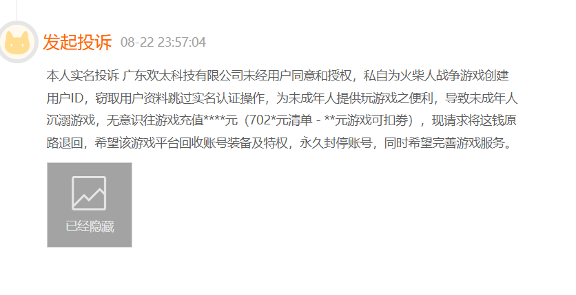 来源/司库财经 作者/文森特 编辑/嘉嘉 日前,中国互联网协会发布《未成年人网络游戏服务消费管理要求》团体标准(征求意见稿),该标准细化了未成年人游戏充值的退费标准,明确了家长和游戏厂商的责任比例。 “虽然是征求意见稿,对未成年人和游戏厂商来说都是一种保护”,一位游戏行业从业者表示,该份征求意见稿既强调了厂商的义务,也提及家长同样具有看护未成年人的义务。 其实游戏同烟草、酒精、赌博一样具有成瘾性,但值得注意的是:虽然早前监管部门出台很多防止未成年人上瘾的措施,但很多厂商依旧会通过各种方式,诱导未成年人充值消费。 【1】应付监管,防上瘾功能形同虚设 “我家孩子打游戏打到凌晨两点,然后再写作业”,一位初中家长向司库财经抱怨孩子处于叛逆期,游戏严重上瘾,“在游戏中他有成就感,他们充完钱都会截图分享在同学群里。” 类似的现象并非少数,据Mob Data研究院统计显示:游戏玩家中,未成年人占比11.8%,并且未成年群体花在游戏上的时间显著高于其他玩家群体。 为防止未成年人沉迷游戏,监管部门多次出击: 2019年11月,国家新闻出版署发布《关于防止未成年人沉迷网络游戏的通知》; 2021年6月,正式印发《国务院未成年人保护工作领导小组关于加强未成年人保护工作的意见》。 2023年12月底,国家新闻出版署发布《网络游戏管理办法(草案征求意见稿)》,明确规定:游戏不得设置每日登录、首次充值、连续充值等诱导性奖励要求游戏厂商。 监管强压下,包括三七互娱、网易游戏等大厂,都会设置游戏使用时间、身份识别认证等方式防止未成年人沉迷游戏。但在家长看来,很多游戏厂商只是表面应付了事,并没有实质性的举措。 以233乐园为例,据司库财经了解,233乐园为游戏应用平台,平台上有大量游戏应用,消费者通过233乐园进入游戏时,只是通过授权过的手机账号登录。也就是说,未成年人拿着爷爷、奶奶的手机登录233乐园玩游戏,平台会默认为玩游戏的是成年人。 其实这样的现象并不少见,不仅是渠道服,连游戏厂商也会将未成年人认证模糊化。 早在2021年,欢太科技宣称推出防沉迷实名认证系统,平台所有用户都要完成姓名全称+身份证号码的实名认证,并经过国家实名认证系统校验通过后才可进入游戏。同时建立了“AI识别算法模型”,用以判断账号是否为疑似未成年人。 但在2022年8月,有家长在黑猫投诉上投诉,称欢太科技未经用户同意和授权,私自为火柴人战争游戏创建用户ID,窃取用户资料跳过实名认证操作,为未成年人提供玩游戏之便利,导致未成年人沉迷游戏,无意识往游戏充值。 ![]() (来源:黑猫投诉app) “未成年人防沉迷就是一个伪命题,像三七互娱说未成年用户占比不足百分之一,但很多未成年人都是用爷爷奶奶的手机玩,根本没有什么效果,孩子还是该玩玩”,一位游戏行业从业者表示,三七互娱、世纪华通等厂商,都在通过数据上宣传未成年人防沉迷工作做的如何好,但这些公司机制都有很大的漏洞,“这些漏洞媒体都报道过,他们没有改变,不知道是在技术上无能为力去填补,还是无心去填补。” 【2】引诱未成年人充值,退费需自证 “很多游戏平台会引诱未成年人在游戏上充值,少则几百,多则几万甚至是几十万”,一位学生家长向司库财经表示,孩子对金钱没有概念,再加上同学之间的胜负欲、攀比欲,导致很多未成年人背着家长在游戏里充钱。 据北京互联网法院发布《未成年人网络司法保护白皮书》显示:由未成年人非理性消费所引发的游戏、直播充值、打赏退费纠纷案件逐年上升,2023年,北互受理的未成年人起诉某一公司要求退还充值款项的网络服务合同纠纷为43件,而在今年一季度,以该公司为被告的立案申请就高达296件。 而司库财经在黑猫投诉上查询“蛋仔派对”时发现,在一个月内,“蛋仔派对”投诉量达到24392件,其中多数为“未成年人充值退款”、“欺诈引导未成年消费”。 ![]() (来源:黑猫投诉app) “未成年人游戏充值,一是游戏厂商在身份识别未成年方面有漏洞,二是在游戏中推送大量的消费充值信息”,一位媒体老师表示,打开游戏界面,充值信息眼花缭乱。 据了解,目前游戏充值推送信息中,通常都会有新手礼包、限时优惠、消费狂欢、充值返利、超值900%+等项目,更重要的是,玩家在进入游戏、使用道具、过关时,平台会将上述的优惠充值信息推送给玩家。 “一开始只是小额,为的就是让你养成充值玩游戏的习惯”,一位成年玩家表示,甭说对没有金钱概念的未成年人,就连成年人都逃脱不了优惠充值信息的引诱。 在今年四月份,有媒体报道,因为蛋仔派对中有充值抽盲盒的环节,一名7岁男童因为抽盲盒好玩,便在蛋仔派对中充值40多次,金额为2045元。 其实引诱玩家充值是游戏公司的常规套路,为此甚至没有“遵循规则”。前不久,一位父亲因为孩子充值“蛋仔派对”一万元,扇自己耳光的视频引发争议。据该名父亲介绍,9岁孩子在第一次充值6000元后,随后再向蛋仔派对多次充值时,平台显示均为免密支付。 除了支付时不需要身份认证外,未成年人游戏充值也存在难退款的问题: 一是游戏平台不设定退款选项。有用户在黑猫投诉上投诉,三七互娱旗下寻道大千游戏,有未成年人退款选项却无法选择订单,摆明了运营方不允许退款。 二是需要自证清白。很多平台退款时都需要证明“游戏充值是