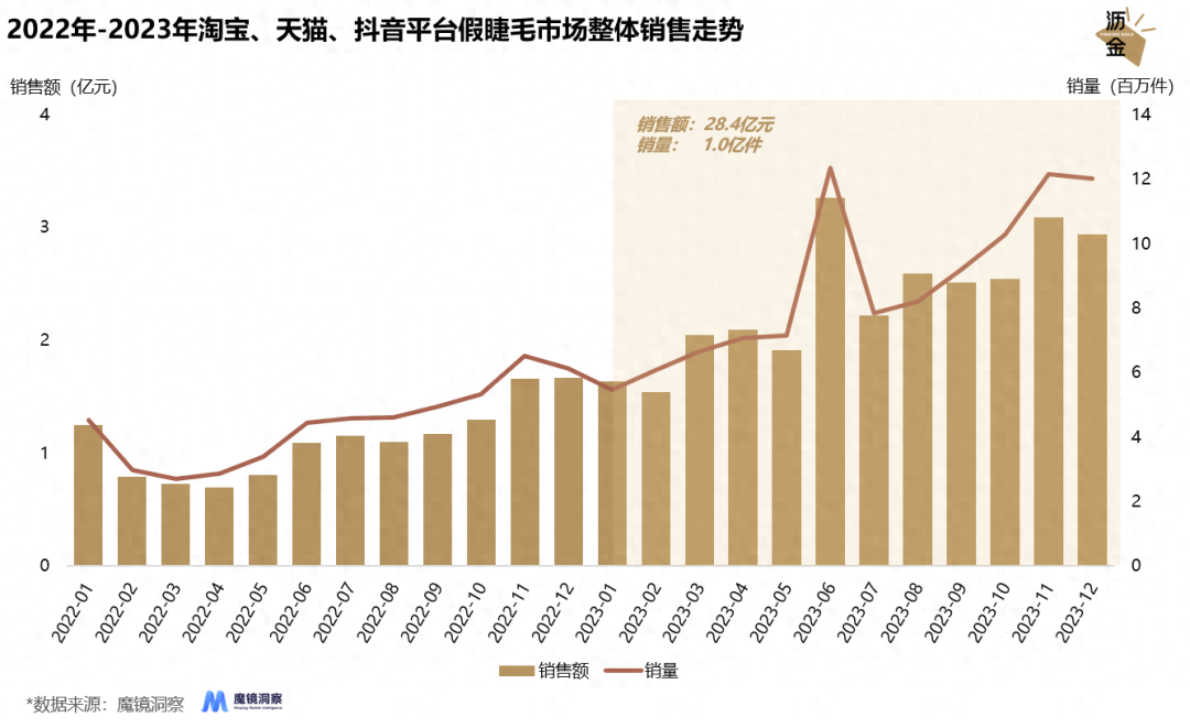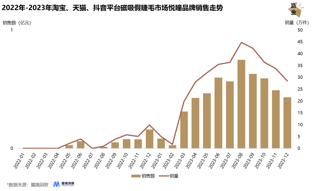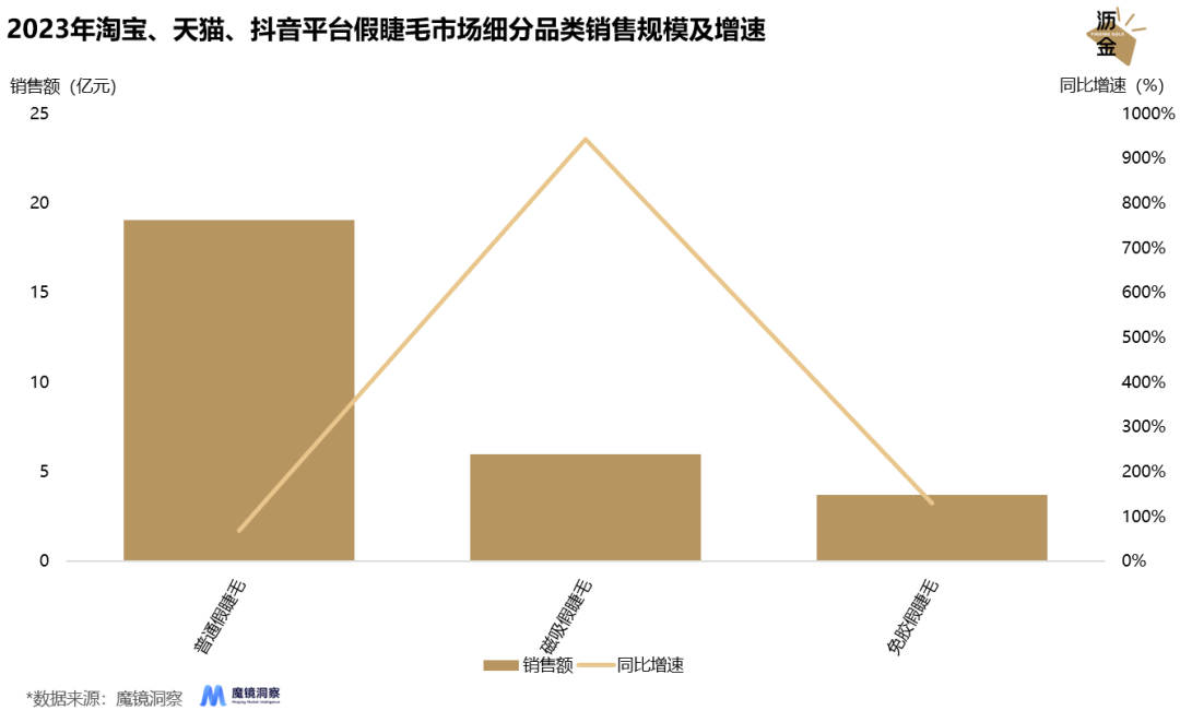 小小磁吸假睫毛,“翘”动亿元大市场。 颜值经济正快速崛起,围绕“颜值”展开的一系列消费市场也乘风而起。如果说眼妆是每个爱美女生妆容的重中之重,那睫毛则是最为关键的点睛之笔。 2023年淘宝、天猫、抖音平台假睫毛市场规模达到28.4亿元,同比增长111.5%,假睫毛品类的讨论声量也持续增长,2023年声量高达139.4万条,同比增长88.1%。 在假睫毛市场高速增长的趋势之下,假睫毛的佩戴一直都是众多手残党的痛点,而初出茅庐的新兴品类——磁吸假睫毛却洞悉了这一用户痛点,改变了传统、高难度的佩戴方式,以943.3%的销售增速奋起直追。 假睫毛市场销售情况怎么样?磁吸假睫毛增长情况如何?磁吸假睫毛如何打出差异化?磁吸假睫毛的品牌格局是怎样的?在假睫毛的细分赛道下还有哪些增长机会? 为回答上述问题,沥金对淘宝、天猫、抖音的假睫毛市场、磁吸假睫毛市场进行了深入分析和研究,以下是结论总览: 1.基本盘:2023年淘宝、天猫、抖音平台假睫毛市场规模高达28.4亿元,预计2024年市场体量仍有一定增长空间。抖音是假睫毛市场的线上主要平台,市场占比高达62%。 2.品类格局:磁吸假睫毛、免胶假睫毛为市场高增长品类,2023年磁吸假睫毛市场规模增速高达943.3%。 3.品牌格局:悦瞳品牌在磁吸假睫毛市场一家独大,品牌市场份额高达89.9%,中尾部品牌市场份额均不足0.5%,品牌均价相对较低,产品同质化程度高,主打平替来尝试抢夺市场份额。 4.产品机遇:产品风格款式是消费者核心关注点,佩戴感、摘取舒适度仍未达到消费者预期,品牌仍需在此方面进行设计优化。 01基本盘:线上持续高速增长,抖音盘子大,增速快 先来看看假睫毛的市场格局。 2023年淘宝、天猫、抖音平台假睫毛市场销售额高达28.4亿元,23年的618、双11大促活动进一步推动市场销售高点,预计2024年市场体量仍会进一步增长。 ![]() 2022年-2023年淘宝、天猫抖音平台假睫毛市场整体销售走势 就电商平台而言,该品类在抖音体量最大,销售额为17.7亿元,占比高达62%,假睫毛的佩戴效果是推动消费者购买的主要因素,而抖音作为内容电商,短视频的内容形式更易实现站内销售转化。 从平台均价来看,以个人C店为主的淘宝均价最低,仅为19.4元。抖音、天猫平台均价较为接近,分别为29.2元、33.0元。 ![]() 2023年假睫毛产品在淘宝、天猫、抖音的销售占比和均价情况 02品类格局:磁吸睫毛增速亮眼,免胶睫毛后起之秀 假睫毛品类的卷不仅体现在款式设计上,也体现在佩戴方式上。 根据佩戴方式将假睫毛品类进一步细分,可分为普通假睫毛、磁吸假睫毛、免胶假睫毛。普通假睫毛销售额达19.1亿元,销售额同比增速为68.8%。 免胶假睫毛自2022年起,月均销售额在1300万-1800万区间内波动。在社媒平台各品牌、博主推广下,免胶假睫毛于2023年8月起迎来爆发式增长,2023年免胶假睫毛销售额高达3.7亿元。 磁吸假睫毛销售规模达6.0亿元,以943.3%的高增速持续增长。该品类颠覆了假睫毛的传统佩戴方式,无需胶水,仅需上下两片磁铁吸附即可完成佩戴,方便简单的操作契合了消费者需求,也为该品类带来了较大的溢价空间。 ![]() 2023年淘宝、天猫、抖音平台假睫毛市场细分品类销售规模及增速 接下来重点分析增速最快的磁吸假睫毛市场。 2022年上半年,磁吸假睫毛仍未打开市场,月均销售额在50万元附近波动。22年5月,悦瞳品牌官宣白鹿为品牌代言人,在明星效应影响下,磁吸假睫毛的曝光量也随之增长。 2023年磁吸假睫毛迎来了增长拐点,在代言人效应、品牌营销、社媒推广等多方面协同作用下,该品类2023年的销售情况呈指数型增长趋势。 ![]() 2022年-2023年淘宝、天猫、抖音平台磁吸假睫毛销售走势 03品牌格局:悦瞳一枝独秀,中尾部品牌难出头 接下来看磁吸假睫毛市场的品牌格局。 以磁吸假睫毛起家的悦瞳品牌可谓是一枝独秀,并成功让大众留下了“品类=品牌”的品牌认知。2023年磁吸假睫毛悦瞳品牌销售额达5.4亿元,在磁吸假睫毛市场占比高达89.9%。 ![]() 2022年-2023年淘宝、天猫、抖音平台磁吸假睫毛市场悦瞳品牌销售走势 2022年,品牌凭借代言人白鹿打开品牌知名度,并根据消费者反馈将产品不断更新优化。2023年初,凭借诸多款式选择、美妆博主、素人及koc的持续推广,推动品牌销售规模不断走高。 反观磁吸假睫毛市场的其他品牌,目前以新兴品牌、白牌为主,市场份额均不足0.5%,产品相似度较高。品牌均价在50元-120元区间内波动,远低于悦瞳品牌156.3元的产品均价。 ![]() 2023年淘宝、天猫、抖音平台磁吸假睫毛市场TOP5品牌市场份额分布 整体而言,磁吸假睫毛市场目前以悦瞳品牌为主导,中小品牌尝试以“平替”来抢占市场份额。但悦瞳已在消费者心中留下了较强的品类认知,对其他品牌而言,市场竞争难度较大。 04产品机遇:风格为消费者核心关注点,佩戴感仍待优化 从评价维度,来看看消费者对磁吸假睫毛的使用反馈。 2023年,天猫消费者对磁吸假睫毛产品评论总数在3w+,消费者最为关注的五个维度分别是风格、场景、人群、佩戴感、工艺。 ![]() 2023年天猫平台磁吸假睫毛消费者反馈 消费者对产品风格的反馈最多,假睫毛款式的佩戴效果也是消费者最为关心的,其中自然效果的占比高达80%,绝大多数消费者都更青睐、追求自然的佩戴效果,以满足上班通勤、日常出行等多场景需求。 从适用人群来看,新手小白、手残党