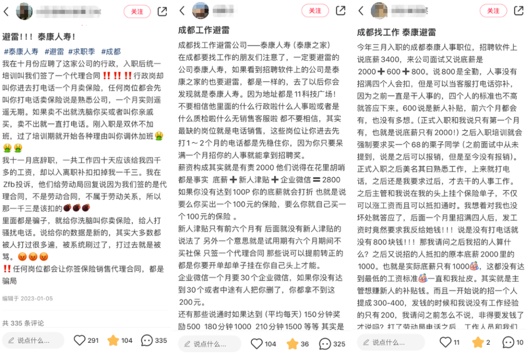 01、高速增长背后 连续七年保费上涨、同比保持20%增速的泰康人寿,近期再遭遇监管处罚。 6月11日,国家金融监督管理总局石河子监管分局行政处罚信息公开表显示,泰康人寿辽宁电话销售中心因欺骗投保人和对投保人隐瞒与保险合同有关的重要情况,被辽宁监管局责令改正并罚款人民币18万元,该中心负责人李敬婕被警告并罚款人民币5.5万元。 根据笔者在金融监督管理总局及各分局处罚信息的不完全统计,今年以来,泰康人寿及相关负责人合计被处罚超过50次。 屡收罚单的另一面,是泰康人寿的骄人业绩。 年报数据显示,泰康人寿保费收入连续七年上涨。其中,2023年实现保费收入2031.88亿元,同比涨幅20%,位列非上市保险公司同期收入第一名。 今年一季度,泰康人寿继续保持20%的保费增速,直追寿险“探花”中国太平洋人寿保险股份有限公司。 增长需求与合规监督,让泰康人寿时刻承受着“冰与火”的考验。 笔者发现,泰康人寿今年超过50次被罚的违法违规事实,主要集中在“管理不到位、违规销售、虚假宣传、欺骗投保人”等,直指个险等渠道的合规问题。 ![]() 根据官微,截至目前,泰康人寿四川分公司全省内外勤人员近8.8万人,累计理赔客户60.326万人,理赔金赔付总额超33.57亿元。 一般来说,保费高、人数多,出现不合规操作有一定概率原因。不过,泰康人寿四川分公司还有更值得关注的地方。 02、输出高管的“粮仓” 以寿险“老七家”第二梯队对比来看,新华保险(601336.SH/1336.HK)与泰康人寿同年成立了四川分公司。 2023年新华保险四川分公司原保险保费收入52.62亿元。但在2010年,泰康人寿四川分公司规模保费收入就已达到56.94亿元,遥遥领先13年。 泰康人寿四川分公司之“猛”,可见一斑。 四川分公司不仅是泰康人寿保费大省“粮仓”,更是泰康人寿高层管理人员的输出重镇。 从这些高管在四川分公司交织经历的成长路径,或能窥见泰康人寿个险的“狼性”发展脉络。 作为泰康人寿在西南地区设立的第一家分公司,四川分公司于2000年4月成立。 这一年,也是泰康保险集团执行副总裁兼程康平,以及助理总裁兼个险事业部总经理张威,加入寿险行业的第五年和第四年。 后来他们两位,以及泰康人寿另一位副总裁薛继豪,都担任过四川分公司的总经理。 与银保渠道直接从银行总部“空降”不同,泰康个险渠道的高管,几乎都是从基层打拼、过五关斩六将。 他们的成长历程,几乎复刻了中国寿险大发展时代的迅猛与激情。 出生于1967年的程康平,曾在国企工作10年,后创办公司。1995年,程康平加入平安人寿湖北分公司。 不到三年,程康平就从一线业务人员晋升至平安人寿湖北分公司的总经理,并参与筹建两家中心支公司。 1998年,泰康人寿湖北分公司成立。程康平被泰康人寿挖角,并先后在湖北、福建、河北和四川分公司担任要职。 与程康平一样,“70后”张威也从基层干起,个人营销能力极强。 1996年进入寿险行业后,还是业务员的张威,一年不到就胜任营销管理岗,率领500 人的团队斩获超千万元的保费。五年之后,张威就任泰康人寿福建分公司助理总裁。 张威的管理风格,讲求实效与速度。在保险考核体系两个重要指标——保费和人力,张威表现突出。 在张威带领山西分公司的六年中,连续四年保费翻番的业绩,达成“亿元粮仓”指标。山西分公司人力规模,从千人扩张至7000人,并以“高绩效文化”在泰康系统内著名。 被程康平“洗练”过的四川分公司,亦是如此。 2010年,四川分公司实现总保费56.94亿元,年度增长率23%,在四川市场占比10.2%。个险保费收入、银保规模保费和期缴保费收入,均在泰康系统A类机构中居第二位。 同年,原银监会发布“一对三”银保新规,规定同一银行网点最多只能与三家保险公司合作。这在一定程度上加大了泰康等非银系险企,市场化参与银保渠道的困难。 由此,个险渠道的价值,开始被重视起来。程康平的才能得以凸显,并快速晋升。 2013年,程康平被调回总部,升任助理总裁兼个险事业部总经理。张威则接任四川分公司总经理。 恰逢中国寿险市场放宽投资渠道、改革产品费率之时,“大个险”在大型险企中,颇为盛行。 为响应总公司“大个险”战略,张威上任四川分公司总经理后的第一年,倡导“大机构、大本部、大县域、大收展”,推动代理人队伍自主经营。 2014年,程康平提出“关注新人”。泰康人寿个险培训部组织制定了“一营三会”,把入职三个月的新员工与家属、个人荣誉紧密结合到一起,保出勤、要活动,促开单。 由于业绩瞩目,程康平屡获提拔。2015年,程康平被任命副总裁兼个险事业部总经理,一年后又升任泰康人寿总裁。 2018年,泰康人寿开始建立业内著名的健康财富规划师HWP项目,旨在结合保险产品与实体医养服务。 近年来,市场环境变化、行业竞争加剧,险企代理人规模快速下滑。反观泰康人寿,自HWP项目启动以来,人力规模逆势而上,于2023年突破1.5万人。 泰康的“高绩效文化”中的“狼性”,在HWP项目中,得到淋漓尽致的体现。 用程康平的说,“HWP是一支职业化、专业化队伍,周周开单、月月万C(佣金)就是职业化最好的体现”。 在总部及程康平的战略贯彻下,张威领导的四川分公司的人力规模,连续六年快速增长。2018年达到5.27万人,比2012年增加了3.38万人,增长220%,位居市场第三。 对应的保费规模也快速增长。2016年,