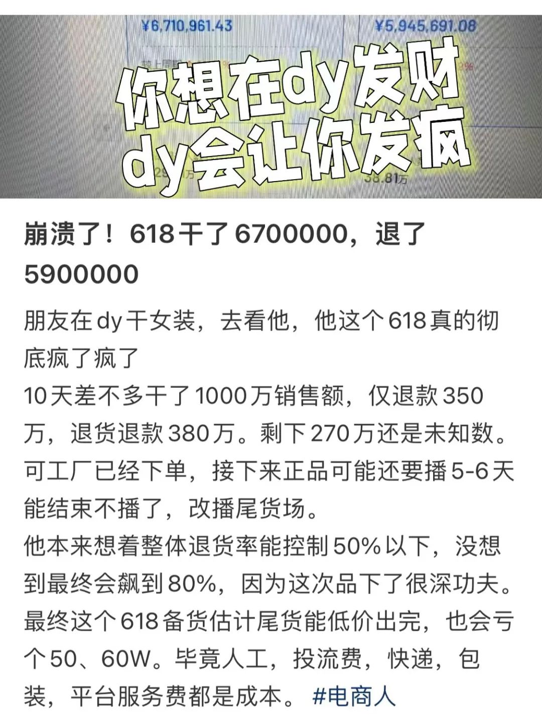 618终于迎来收官,平台、商家、消费者感受却各不相同,有人欢喜有人愁。 从目前各大平台公布的成绩看,似乎都很亮眼,销售额并不差。不过不少商家却表示,价格竞争和不公平的退货政策把商家搞得焦头烂额,甚至赔钱。消费者透露,今年的618既在价格竞争中获得好处,另一方面也因买到低价低质产品而感到苦不堪言。 当初电商兴起,应时而生,是为了人们更有性价比的购物,获得良好的消费体验。现在来看,如果低价竞争和退货政策的弊端不规避,在平台、商家和消费者三方博弈中商家的正当利益将会受到侵害,整个电商生态也会严重受损。 01、低价竞争激烈,不少商家遭遇挑战 618收官,战报出炉。 最先披露数据的是淘宝和京东。截至6月18日24点,190万淘宝中小商家成交额同比增长超100%,和去年相比数量翻两倍以上。而京东最新公布的数据显示,2024年京东618成交额、订单量齐创新高,京东直播订单量同比增长超200%。 综合数据显示,今年618大促抖音、快手等直播电商全网销售额达2068亿元。拼多多、天猫、京东等综合电商平台,全网销售额5717亿元,同比下降6.9%。即时零售全网销售额249亿元。社区团购139亿元。 不过,虽然销售成绩相当亮眼,但绝非皆大欢喜。不少商家表示:“今年618大促真卷啊,平台根本不顾商家死活。”其中,颇受商家诟病的是无休止的价格竞争。尤其直播电商,把低价大团购的效率发挥到极致,其他综合电商也纷纷展开价格竞争,打出“全网低价不怕比”的标语,隔空比拼,自动跟价,以极限低价策略争夺消费者。 我们来到商品过剩的时代,而且同质化严重。作为一种营销策略,进行低价竞争促销无可厚非,然而过于急功近利导致不少商家受伤,实在不可取。表面上看,低价之下商品销量有所增加,商家应该增收;事实上,无休止的价格竞争导致商家利润变薄,甚至沦为负数。不少商家表示,今年的618大促是赶鸭子上架,完全没有想到平台冲低价能冲到这个程度。 ![]() 图源:Pexels 很多商家在不知情的情况下,所出售产品被平台的折扣频繁压价,各种机制叠加后,最终成交价打了“骨折”。产品最后的销量同比有所上涨,但利润往往是负数,一些电商平台今年订单量暴增,而销售额同比却下降,似乎找到了原因。这种牺牲利润换取订单量的做法,让商家付出了真金白银的代价。 此外,变着花样用低价去卷,结果只能是更低的价格出现,有些商家最终不得不牺牲产品质量。叠加平台向消费者示好推出的各种退货政策,又导致新的危机和挑战出现,退货率居高不下,商家们苦不堪言。 02、退货率居高,究竟谁在作妖? 除了价格竞争,今年的618,商品退货率也是居高不下。 前段时间就有人爆料,某家服装网店在618大促期间的销售额近千万元,然而扣除掉“退货退款”的380万元,再扣除掉“仅退款”的350万元,最后再扣除掉其他如人工费、包装费、平台服务费等各项成本开支,预计亏损额竟然高达50多万元。 ![]() 图源:小红书 商家原本想着靠618大赚一笔,再不济小赚一笔,没想到却因此受到损失,实在是有苦说不出。对于服装业而言,商品退货率只有维持在一定区间才有的赚,像这家服装网店,退货率超过70%,甚至接近80%,赔本的结局在所难免。 事实上,今年的618大促,不只是服装商家遇到了高退货率问题,很多其他商家同样遇到这种困境。那么问题来了:商品退货率居高不下,究竟是谁在作妖?对此,消费者,商家,平台,各执一词,似乎都表现出一副“受害者”的样子。 消费者作为退货主体,难道都是他们的原因吗?有不少消费者表示,此次618大促在多个电商平台购物,仿佛受到了欺骗,最严重的问题是货不对版,也就是商品实物与宣传图片严重不符。这些商品买来后,有些人将就着用,有些人气不过就去退货。 对于消费者而言,购物是生活所需,在618期间购物则是出于省钱。归根结底,消费者想要在大促期间,购买到性价比、质价比双高的产品,便宜又好用。 还是以服装为例,一般而言只要衣服大小合适,胖瘦正好,实物颜色款式与图片宣传相差不大,质量不出问题,消费者不会退货。毕竟消费者购物,也花费了大量的时间成本和货币成本,从这种角度来说,没有多少人会恶意退换货,给自己制造麻烦。 ![]() 图源:Pixabay 对此,商家也有解释,剑指消费者和平台。观点多是消费者难缠,对于买到的商品各种理由挑剔,而平台也在助长这种风气,给予各种支持。比如,“仅退款”,“无理由退货”,“运费险”等,很多商家抱怨说:平台这些规则和规定,把风险和成本全部转嫁给了商家。有学校购买服装做汇演,活动结束就退货,衣服都臭了,还能无条件退货,合理吗? 而电商平台也自有一套辩论逻辑,只有把握好低价竞争和退货政策,才能有效抓住消费者的“心”,否则怕自己在和其他电商平台竞争中落了下风。 03、新消费时代,电商仍需破局 如何才能真正抓住消费者的心?新消费时代,消费者对待商品的态度很谨慎。过去人们追求便宜,后来追求性价比,现在越来越追求质价比,产品不光价格要低,质量也得好才行。 相比电商618大促而言,今年许多商家线下营销做得不错,有些商家不牺牲产品质量,而是以量换价,让利消费者。比如最近主动求改造的一些线下商超,以及之前已经红火的会员店,通过重塑供应链,打通上下游,最终实现商家和消费者双赢。 为应对618大促,一些线下零售渠道一站式打通“逛、玩、购”消费场景,拉满