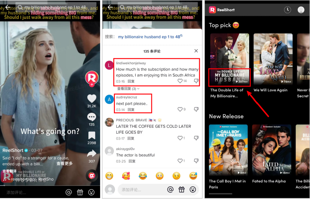 作者 | April 编辑 | 陈维贤 土味短剧让人上头,但是没想到外国友人也沦陷了…… 打开 TikTok,一分钟看女主逆袭走上人生巅峰,两分钟看完恋爱、工作、结婚甚至离婚等人生起落,三分钟让人从头爽到尾还意犹未尽……这些和国产霸总、大女主内容高度相似的高能短剧,正在征服外国网友的心: 最典型的例子就是前段时间火遍 TikTok 的短剧 ——《The Double Life of My Billionaire Husband》(我的亿万富豪老公的双面人生)。 它的剧情和国内经典霸总小说「闪婚后,傅先生马甲藏不住了」几乎一致,讲述的是一位妙龄女子被迫相亲,却阴差阳错地与当地权势滔天的傅家掌权人闪婚。 尽管每集不到 2 分钟,简单上头的内容却让无数 TikTok 网友“求更新”,在需要付费/看广告的情况下,创下接近 4 亿浏览量的超高记录(包括付费浏览),其背后的 App ReelShort 更是赚得盆满钵满。 ![]() 为什么这类短剧能在海外大获成功?短剧出海真的成为新风口了?TikTok 在短剧出海这件事上扮演着怎样的角色?今天我们就来展开聊聊。 01、短剧出海热播,TikTok 成掘金地 可以肯定的是,「短剧出海」正在成为新的热潮。 结合 Sensor Tower 的数据,我们不难发现,在过去一年里,短剧行业(本土剧+翻译剧)在全球范围内展现出爆发式增长态势:截至今年 2 月底,已经有 40 多款短剧 APP 试水海外市场: 2023 年 3 月到 2024 年 2 月,海外短剧 APP 的月下载量从单月不到 100 万,增长至单月 1000 多万,累积达到 5500 万次;海外短剧 APP 内购收入更是达到 1.7 亿美元。 然而,以上数据显然不会均摊到所有 APP 头上,运营社了解到,短剧出海这条赛道上,头部效应也是十分显著: ReelShort 、ShortTV 和 DramaBox 三家短剧应用就占据了近 80% 的增长比例,巧合的是,运营社发现,他们都不约而同将 TikTok 视为自家投放增长“要地”,加大投入且尝到了甜头。 比如FlexTV的大爆剧《Mr.Williams!Madame Is Dying》通过在 TikTok 等平台定向投放广告,每周收入超过 200 万美元; 再比如 ReelShort 的热门短剧《Fated to My Forbidden Alpha》切片在 TikTok 平台上获得了 3200 万点击量和近 15 万点赞互动,去年 7 月投放期间 APP 下载量达到 190 万次……为什么 TikTok 能够和这些「短剧应用」擦出如此激烈的火花?运营社认为离不开 TikTok 与短剧本身的高度契合性。 首先很重要的一点是,TikTok 用户的付费意愿度很高,相比非 TikTok 的短剧用户,TikTok 短剧用户的付费率要高出 18%。这意味着,触达同样数量的用户,短剧厂商在 TikTok 的转化效率和数据都会更好。 其次,TikTok 采用的是竖版全屏的有声视频形式,这使得用户在划到短剧的前几秒,会迅速进入到沉浸式的观剧氛围中,从而提高短剧完播率。长久来看,这一优势也可以帮助厂商提高用户粘性,提升变现的可能性。 ![]() 左边横屏和右边竖屏的观看对比而且,作为全球领先的短视频娱乐平台,TikTok 拥有着更丰富多元、且深受用户喜欢的「原创内容」,能够从短剧的创作源头给予厂商强大支持。 另一方面,TikTok 还拥有高活跃度的海量用户,他们乐于点赞、评论、转发自己喜欢的视频,基于这种高活跃度、高互动性及强大的社群破圈效用,TikTok 也就成了短剧传播视角下的「爆款孵化地」。 所以,综合上述种种优势,我们就不难理解,为什么头部短剧厂商纷纷选择 TikTok 作为出海掘金的最强搭档。 毕竟,在投放决定增长的海外市场,谁先选准阵地,谁就能占得先机。 02、短剧千千万,投放决定成功的一半 如果说选阵地是“抢占先机”,获得先发优势;那么投放过程就是“做好后手”,获得长久收益。 短剧厂商想要打造爆款短剧,延长短剧生命周期,以及提升短剧的付费转化率,离不开科学的投放方法和高效的投放策略。 下面运营社就从投放链路、投放素材以及投放节奏 3 个方面详细展开。 1、选择多元投放链路 为了让短剧内容触达更广泛的受众,并提高转化效率加速变现,TikTok for Business 根据企业有无自己的平台/应用,为厂商提供了两类有效「投放链路」: 第一,有自己短剧平台/应用的厂商,可以选择 APP Promotion (APP 直投)或 Web to App (W2A)投放链路,也就是通过在 TikTok 上投放广告,引导用户跳转至外部短剧平台进行付费观剧。 那么问题来了,这类模式下的 APP Promotion (APP 直投)和 Web to App (W2A)有什么区别呢? 我们了解到,「APP 直投」更适合刚入局的初级广告主,其优势体现在不仅操作门槛低,且放量效果也稳定。 而进阶型广告主,则可以选择增加了落地页的「Web to App」——引导用户先跳转到「落地页」再进入「短剧应用」。对于广告主来说,虽然这种方式需要增加落地页制作,但是一方面可以为用户省略掉外跳后的剧目搜索,提供更丝滑的追剧体验,提升转化率;另一方面,也会实现更及时的数据回传,且拥有更多信号及行为漏斗数据监测,有助于广告主进行多样化的探索测试与及时的优化调整。 第二,针对部分暂时没有开发短剧 APP 的内容商,仅有短剧内容,也能通过 TikTok 企业号快速入局——在 TikTok 企业号上传自己的短剧内容,同时设定好付费章节及观看价格,然后通过付费内容推广(Paid Content Promotion),即可触达、引导用户直接解锁观看。 发现没?在这种模式下,用户无需跳转,就能在站内实现「发现短剧 」→ 「对短剧产生兴趣」 → 「想要观看更多剧集」 → 「直接付费购买」整个流程。 更流畅的消费体验确实也带来了更亮眼的成果表现——官方数据