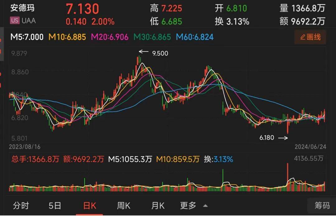 直男们最爱的安德玛不香了。 安德玛最新发布的2024财年财报显示,安德玛销售额下滑3.42%,降至57亿美元,净利润同比下降40.01%至2.32亿美元,与耐克、阿迪的差距越来越大了。 安德玛已原地踏步已久,2018财年时,公司收入接近52亿美元,如今依旧困在60亿美元之下。净利润更是“一夜回到十年前”,2015财年其净利润为2.33亿美元。截至文章发稿,安德玛的股价为6.83美元每股,较 2015 年的历史高点暴跌逾90%,市值仅剩不到30亿美元。 安德玛在大本营北美市场的损失惨重,中国市场虽然在增长,但可以说是用低价换来的。去年,部分经销商为摆脱滞销库存疯狂降价,安德玛基础款T恤最低只要几十块,大大损害了安德玛的品牌形象,有人揶揄男人穿上安德玛的速干衣,就像是街上发传单的健身教练。 面对业绩滑坡,安德玛创始人Kevin Plank重返CEO职位救场,披露了包括裁员减少折扣促销、重新将男装领域在内的一系列重组计划。 备受“猛男”喜爱的安德玛为何呈现颓势?曾高不可攀的安德玛还能在竞争激烈的市场中重新找回自己的位置吗? 曾与阿迪、耐克比肩 安德玛,Under amour,意思是“在铠甲下”,由Kevin Plank于1996年创立,初衷源于对当时橄榄球运动员所穿的棉质贴身运动衣的不满。这些衣物在运动中不仅显得闷热,而且吸汗后会增重数倍,严重影响运动员的表现,甚至可能导致运动伤害。 ![]() Kevin Plank 图源:CNBC Kevin Plank坚信“一定有更好的选择”,于是推出了安德玛品牌,专注于研发速干紧身衣。其首款产品“The Shorty”T恤采用吸湿排汗的涤纶面料,一经推出便取得了巨大的成功,为Kevin Plank带来了1.7万美元的收益。 安德玛凭借其独特的排汗、透气功能等“黑科技”,迅速获得了专业运动员及运动爱好者的青睐。在2000年,当市场上大部分运动品牌都在专注于鞋履时,安德玛凭借其在专业紧身运动服领域的独特优势,以70%的市场份额成为该细分市场的领先者。 在品牌宣传上,安德玛以刚强、狂野、反抗和奋进的形象示人,凸显“力量”和“斗志”等核心精神,在电影中的广告植入则偏好美国队长、蝙蝠侠等英雄角色,进一步强化其品牌形象。 ![]() 图源:网络 2005年11月,安德玛在美国纳斯达克证券交易所成功上市。在资本的助力下,安德玛不仅继续深耕紧身运动服市场,还将业务范围逐步扩展到足球、篮球、跑步、户外等多个领域,从单一的健身服品牌转型成为综合型运动品牌。 时任美国总统奥巴马身穿安德玛运动鞋的照片更是让品牌声名大噪。 2011年,安德玛正式进入中国市场,并在上海开设了首家专卖店。2013年,品牌签约了NBA篮球巨星斯蒂芬·库里,并凭借“库里一代”球鞋取得了巨大的商业成功,使安德玛进入了高速发展阶段。 ![]() 图源:网络 到2015财年,安德玛的总收入达到了39.633亿美元,成为美国市场第二大运动鞋服企业,仅次于耐克。根据公开数据,1996—2014年,安德玛连续19年维持20%的营收增长,毛利率水平也保持在高位。 2017年,安德玛又与有着“巨石强森”之名的美国男演员道恩·强森共同创立了Project Rock品牌。安德玛“硬核运动”的品牌形象深入人心。 ![]() 图源:weartesters.com 但好景不长,随着消费者对品牌新鲜感的消退,安德玛的业绩开始下滑。“库里二代”“三代”及Project Rock系列产品未达预期,导致业绩下滑。2024财年,安德玛在北美市场的全年销售额同比下降了8%,达到35亿美元。公司预测,北美市场的销售情况可能会继续恶化,本财年销售额将下降15%至17%。 在亚太市场,安德玛的营收态势却相对乐观。2024财年,安德玛在亚太市场的收入同比增长了6%(按货币中性增长9%),第四季度亚太地区的收入也增长了1%(按货币中性增长5%)。 但这份增长是安德玛疯狂打折促销换来的。过去一年中,安德玛的折扣力度史无前例。在安德玛天猫旗舰店,官方挂出“不只4折”的宣传语,部分奥莱店全场也是低至4折。这导致安德玛的品牌形象大大受损,一度被贴上“健身教练队服”的标签。 业绩增长蹒跚,股价也大幅回落,沦为白菜价。过去一年,安德玛股价一直徘徊在10美元以下,早已不再是能够与Nike和adidas比肩的运动服饰品牌。 ![]() 图源:同花顺 安德玛为何走向下坡路? 安德玛在近年来的发展道路上遭遇了一系列挑战。 首先,其在迅速扩张的过程中显得有些操之过急。尽管在2005年安德玛凭借速干衣等运动服在市场上占据了一席之地,但随后公司便急于进军球鞋市场,与Nike、adidas等知名品牌竞争,并进而布局跑步、高尔夫、足球和户外等多个领域。 然而,直至今日,安德玛近65%的收入仍来自运动服,鞋履占比仅为约25%,这意味着大多数业务线并未为公司带来显著收益,反而分散了公司的精力。 ![]() 图源:网络 其次,安德玛未能及时适应运动场景从专业化向日常化、轻量化转变的新趋势。随着体育消费日益生活化、休闲化,消费者更加追求舒适度和时尚感,但安德玛仍然过于聚焦于产品的竞技性能,未能跟上这一变化。 这导致其在市场上的迎合度降低,连直男们都嫌弃,认为其“设计不合理”“不够时尚”……。这一脱节不仅引发了库存积压问题,迫使公司频繁打折促销以清理库存,从而损害了品牌形象和长期价值,也让忠诚的老客户感到失望,转向其他更具个性和时尚感的品牌,如从Lululemon、Puma等。 其三,女装市场更是打不下。由于入局太晚,安德玛在女性产品市场上失去了先手优势。此外,