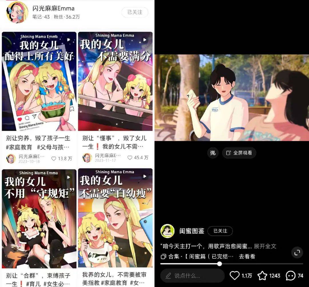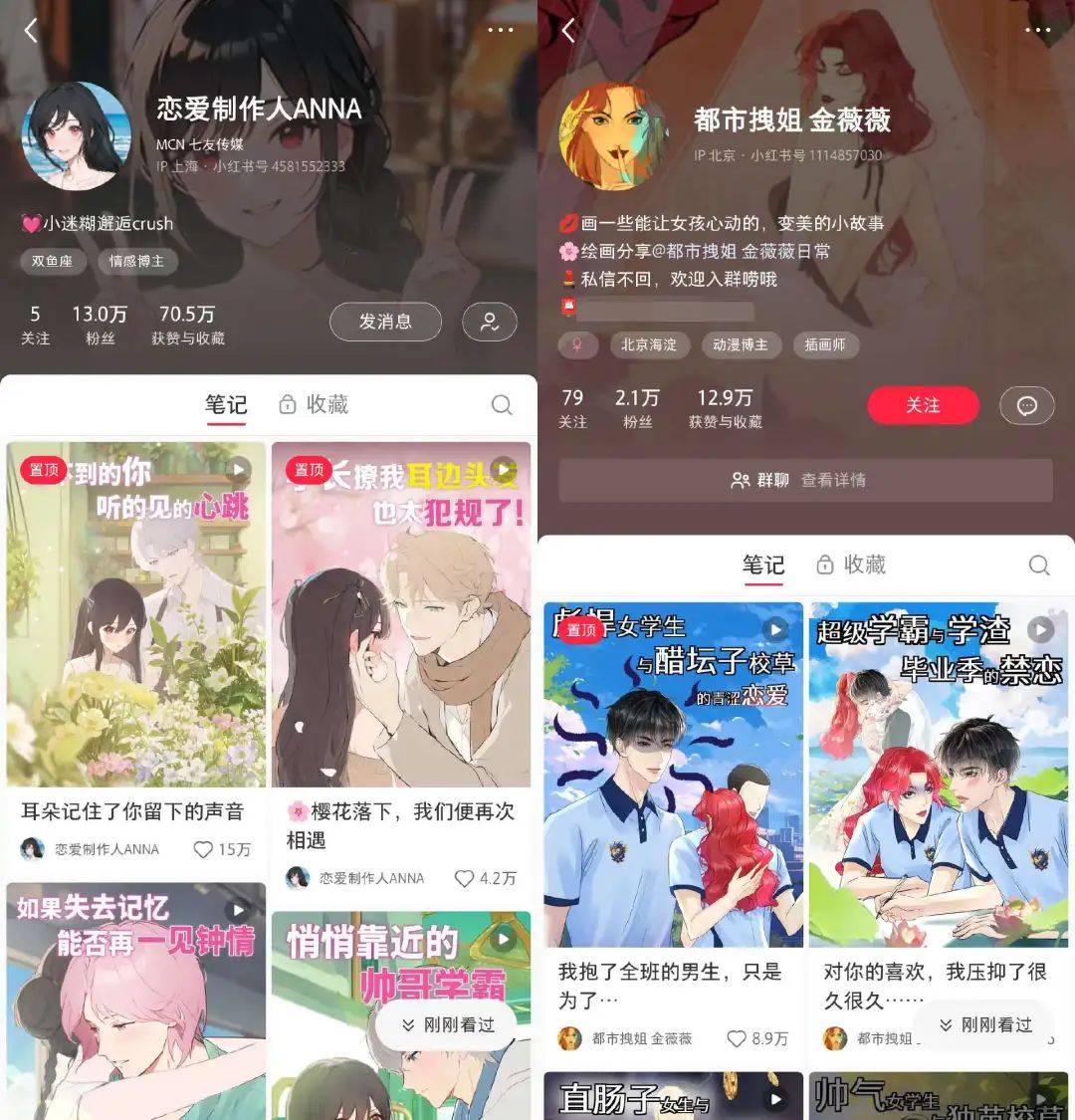 真人短剧卷生卷死,动漫短剧却开辟了一个新战场。 借助新榜旗下小红书数据工具新红,新榜编辑部发现,最近一年小红书涌现出了一大批动漫短剧号,其中至少有9个粉丝数超百万。 腹黑大小姐&忠犬保镖、顶流女明星&禁欲系男医生、超A女霸总&傲娇大少爷……和近几年爆火的真人短剧一样,动漫短剧号同样脑洞大开、爽点十足,用动漫形式上演了一个个霸总甜宠剧。 “心动投递员Nana”就靠着一集集玛丽苏恋爱短剧,不到一年时间小红书涨粉115万,其中“听障少年和温柔女记者的救赎系爱情”更是获赞超73万。“心动投递员Nana”还颇受广告主青睐,连续多次登上新红的商业笔记排行月榜。 ![]() 不独小红书,动漫短剧号在抖音等平台同样流量表现不俗。其中,“罗曼蒂Choco”“李漫妮Money”“心动投递员Nana”“都市女孩Vivian”的抖音粉丝数均破百万。 动漫短剧号会是新的内容趋势吗?未来能像真人短剧一样撑起一门新生意吗? 最近,以小红书为主要研究对象,新榜编辑不完全统计了20个粉丝数较多的动漫短剧号,并对话了部分从业者,希望能找到一些答案。 ![]() 01、做不被定义的女孩,动漫短剧成女性专属爽剧 动漫号并不新鲜,最早可以追溯到公众号时代的条漫号。短视频兴起后,业内也兴起了一批动漫类账号。以“兔姐爱美丽”“哆哆妈妈”等账号为例,这类账号更多是用动漫形式分享美妆护肤、母婴育儿等知识,本质上是知识分享类账号。 与这类以分享知识为主的动漫号不同,动漫短剧号通常会有相对完整的剧情和人设,且故事设计更为大胆,更像剧而非剧情段子。 人生无限创始人洪奕伟透露,最早的动漫短剧可以追溯到人生无限旗下的“胡渣少女”。早在2021年,“胡渣少女”就开始用动漫形式分享主人公的搞笑故事,包括《失恋逆袭记》《痔疮少女康复记》等。 带有爽文属性的动漫短剧则以2023年2月开始运营的“罗曼蒂Choco”为代表。在“罗曼蒂Choco”的视频中,从专属男模、顶流男明星、学生哥哥,再到暗恋同事、闺蜜弟弟、女领导儿子,crush们排着队和女主谈恋爱,类型多样、爽点十足。 截至发稿前,“罗曼蒂Choco”的小红书粉丝数达152万。其中,一条讲述“女主和女上司弟弟的暧昧拉扯”的视频获赞超56万。 ![]() 也是从2023年开始,大批动漫号开始增加短剧元素,转型动漫短剧号。 以粉丝数最多的“SuperGirl顾一夕”和“希雅与cat”为例,两个账号最初主要用动漫形式分享变美技巧,2023年开始增加短剧元素。其中,“SuperGirl顾一夕”成了人间清醒的都市女孩,“希雅与cat”则希望成为一个日常发疯不好惹的“恶女”。 目前,以人生无限、小雨互动、杠上开花几家MCN机构为代表,越来越多从业者开始布局动漫短剧。 为什么动漫短剧会成为一股风潮? 最初,女性用户的普遍期待是变得更美,所以不少动漫号的内容是帮女性变美。现在随着女性主义的兴起,越来越多女性开始拒绝身材PUA、拒绝被定义,她们希望成为更好的自己,动漫号们也开始调整方向,以契合用户的喜好。 ![]() 按照内容选题划分,动漫短剧大致可以分为三类: 一类主打霸总的甜宠爱情。 在“小岛假日”,你可以看到《腹黑大小姐和疯狗管家》和《纯情前夫哥又破防啦》;在“一新酱”可以看到《财阀千金和她的忠犬保镖》和《流落街头意外被藏族帅哥收留》。 ![]() 一类主打大女主的爽文人生。 在“不好惹小姐Gianna”你可以看到一个爱美、个性的拽姐,闺蜜是富婆,女性中是团宠;在“都市女孩Vivian”你可以看到一个在职场、爱情、生活中游刃有余的摩登女孩。 ![]() 一类聚焦亲情、友情等细分选题。 “闪光麻麻Emma”塑造了一个非常爱女儿、特别酷的妈妈;“闺蜜图鉴”则塑造了一个大多数女生都期待的神仙闺蜜。 ![]() 虽然选题不同,但共同点都是满足了女性的美好期待:更浪漫的爱情、更完美的闺蜜、更酷的妈妈、不憋屈的职场、不无趣的生活,以及不被定义的自己。 这点在动漫短剧号的粉丝画像中也得到了印证。据新抖、新红统计,多数动漫短剧号的粉丝都以年轻女性为主。以“罗曼蒂Choco”为例,“罗曼蒂Choco”在抖音、小红书两个平台的女粉占比均在85%以上,24岁以下用户也占比不低。洪奕伟透露,动漫短剧的用户以一二线城市女大学生为主。 相比真人短剧,动漫短剧不仅画面更美,更符合女性用户的审美,创作空间也更大,能创作出更戳人的爽文故事。动漫短剧能火,本质上是因为它们塑造出了女性用户想象中的自己。 或许是因为女性用户更多的原因,小雨互动创始人小草爷爷认为,同等情况下,动漫短剧号在小红书的数据表现更亮眼,更受用户欢迎。短漫短剧号在小红书也更为活跃。 ![]() 一些启动不久的动漫短剧号 02、成本不低,报价不高,动漫短剧陷入变现困境 用户喜欢、流量不俗,动漫短剧号的变现情况如何呢? 小草爷爷透露,“心动投递员Nana”运营3个月后就开始变现,目前在小红书报价9.8万元/条,在抖音报价15万元/条,两个平台一个月累计能接到4-6条商单。 ![]() 对于这个成绩,小草爷爷并不满意。在他看来,现在动漫短剧号陷入一个困境:流量可观、成本不低,但变现效率不高。 小草爷爷表示,目前动漫短剧号制作一条视频需要15天左右,平均成本2-3万元。一条视频需要60-90张原画,但一个画师一天只能画5-6张,且市场上符合要求的画师并不多。 作为对比,一部100集的真人短剧,