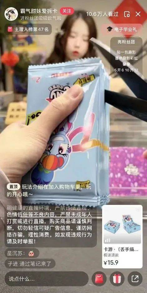 作者 | 运营社编辑部 设计 | 蝶哥 6 月份,小红书又出现了一则疯狂涨粉的案例。 从周涨粉 8 万,到后来加速至周涨粉 10 万,再到最高周涨粉 14 万…… 截止到发稿日,小红书拆卡博主@霸气甜妹爱拆卡 的粉丝量已经成功突破了 65 万大关。 ![]() @霸气甜妹爱拆卡 小红书主页 可能很多人想不到,在这一包包 3 寸的集换式卡牌里,其实潜藏着月销百万 GMV 的巨大商机,在拆卡直播中,人均客单消费可达 200-400 元,个别用户单次消费甚至高达上万元。 “直播拆卡”的生意确实很赚钱,这是有目共睹的,但与此同时,其背后的争议也不在少数。比如拆卡的消费群体多为未成年人,常会冲动消费;高级卡片在二级市场中的溢价炒作,让“拆卡”笼上“赌卡”的阴影等。 一边是日进斗金的直播间,一边是层出不穷的质疑,拆卡直播究竟是不是门好生意?这批完成了快速涨粉的拆卡博主都采用了哪些运营手段?今天运营社就带大家来分析一下。 01、拆卡文化的背后,是新型社交货币的诞生 “拆卡文化”的盛行,无疑是小红书的博主们对 Z世代 的又一次精准的需求捕捉。 从@霸气甜妹爱拆卡 的后台粉丝画像来看,24 岁以下的女性是消费的主力群体,其中 18 岁-24 岁的“学生党”与刚刚步入职场的“都市 GenZ”,则成为了购卡的绝对主力。 ![]() @霸气甜妹爱拆卡 后台粉丝画像 在@霸气甜美爱拆卡 直播间中热销的这种卡片,全称为「集换式卡牌」,往往以包为单位,一包里面有 5-10 张。卡牌按稀有程度会进行等级划分,例如卡游旗下的系列产品,等级分类多达 15 个,稀有卡牌会在二级市场流通,越难开出的卡牌,在二级市场上的定价越贵。 ![]() 这些卡包的设计往往由知名动漫 IP 为基础,譬如@霸气甜妹爱拆卡 直播间里的主销卡包,便是以一部名为《小马宝莉》的动漫 IP 打造的,这部动漫在中小学生群体中的知名度很高,且充斥着大量愿意为其付费的年轻群体。 ![]() 花费了 5000 余元拆卡小马宝莉 在搜索栏输入“拆卡”关键词,可以看到共有 148 万+篇相关笔记,不光是“小马宝莉”,还有奥特曼、斗罗大陆、蛋仔派对、三国等,都是些在“10后”中的知名度很高的 IP。 不难看出,小小的集换式卡牌,俨然成为了新一代Z世代的“社交货币”。 但要注意的是,这些“社交货币的价格并不便宜,可以看到,在@霸气甜妹爱拆卡 的小红书橱窗中,被称为“小火车”的“辉月包”标价 13.9 元/包,销量达 3000+;被称为“战车”的“趣影包”定价 93 元/包,销量也突破了 1000+;就连标价 2600 元的“抬箱”链接,都卖出了 10 单(现已下架)。 ![]() 在“学生党”的拥护和喜爱下,@霸气甜妹爱拆卡 直播间的月 GMV 可轻松突破百万,类似的拆卡博主在小红书上还有很多,除了面向女生的动漫 IP 以外,集换式卡牌还有很多面向男生的细分赛道,譬如 NBA球星、电竞选手、知名网游等等,令许多年轻男生也为之着迷。 ![]() 除了以“包”或“盒”为单位进行下单以外,直播间中还有个「抬箱」的说法。顾名思义,就是下单一整箱卡牌,全拆出来以后通常会有上百包卡片,视觉冲击感非常强,往往能给直播间带来很高的人气。 ![]() @九欧拆卡 直播“抬箱”现场 对于下单的“老板”而言,“抬箱”可以提高开出稀有卡片的概率,同时也能收获直播间观众的高度关注。其实不难看出,在“直播拆卡”的过程中,相较于卡片本身,“情绪价值”的给予,同样是一项非常重要的服务。 只有更好的提供给用户情绪价值,才能更好的调动起观众的下单欲望,并完成后续复购、抬高客单价的一系列动作。那么在情绪价值的给予方面,这些拆卡主播都进行了哪些细节设计?接下来运营社就带大家来深入解析一下。 02、花式满足情绪价值,月GMV轻松突破百万 我们首先要搞明白,集换式卡片能够完成溢价的底层逻辑是什么。 这其实很好理解,其实相较于卡片本身,它更像是一种“社交货币”,在任何一代人的童年里,都能窥见一些它们的影子。例如 70后 的烟卡,80后 的水浒卡,90后 的宝可梦卡等…… 它们拥有的特点也是相似的,都需要通过抽奖的形式收集,品质越好,抽出的概率越低,而卡片的稀有程度,直接与卡主获得的情绪价值呈正比。 那么该如何在稀有卡开出时,通过场景设计与视听互动把消费者的情绪价值拉满?这里面其实有很多细节设计。 1)现场开卡 线上购卡与线下购卡最大的区别,在于关注度的高低,线下开卡顶多只有自己身边的同伴可以感受到情绪共鸣,但在直播间中,一张稀有卡片的开出,有可能会得到几百人甚至上千人的围观,开出稀有卡片时的愉悦感会被放大,这是线下开卡所不具备的优势。 ![]() @霸气甜妹爱拆卡 正在直播拆卡 2)视觉设计 在拆卡直播过程中,如开到稀有卡片,主播会将其在陈列架上进行单独展示,针对不同等级的卡片,还会用不同规格的卡膜、卡套封装,稀有度越高,封装就越精致,打造稀有卡片的精致感、尊贵感。 ![]() @霸气甜妹爱拆卡 笔记中展示的稀有卡片得到了特殊封装 3)听觉设计 在拆卡直播间中,除常规话术以外,主播往往还会准备一个按铃,在开出珍稀卡片时,会同步按响铃声,在相对静谧的直播环境中非常突出,通过声音符号引起观众的注意力,在巴普洛夫效应下,刺激卡主多巴胺的分泌。 ![]() @小淇拆卡 发布笔记《究竟是怎样的玩家让主播频频按铃?》 以上的这些直播细节,也常会被博主做成切片,发布笔记给直播引流,像直播时开