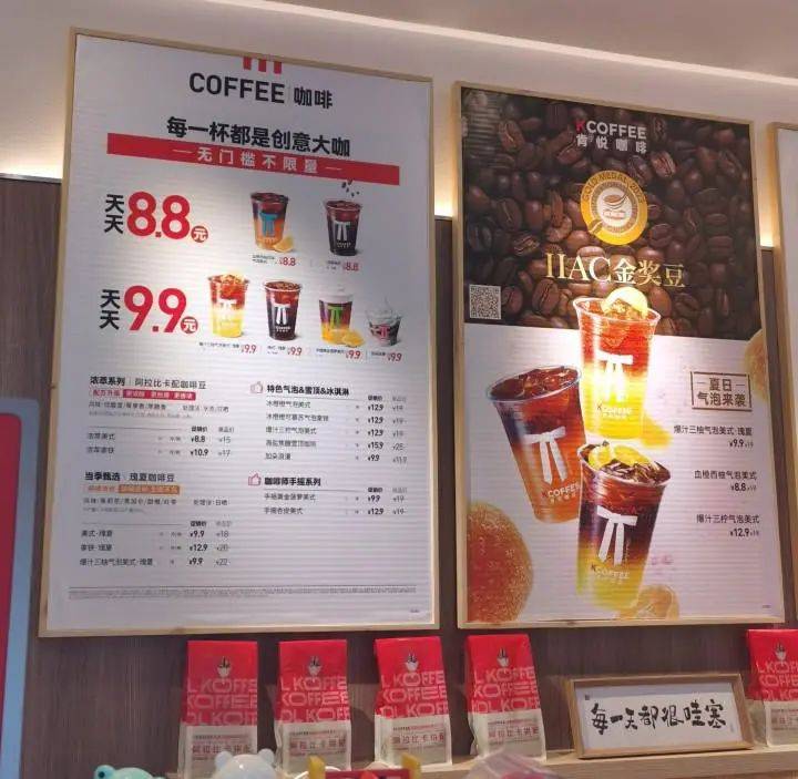 文|王崭 越来越卷的咖啡赛道,挤进了一位“豪门”。 瑞幸和库迪的贴身肉搏战还没有结束,肯德基就带着自己旗下的肯悦咖啡闯进了拥挤的咖啡赛道,挥舞着9.9元的低价旗帜,用几乎一天开一家店的速度,快速占领市场。 最能触及消费者神经的,就是价格。小红书、抖音和微博上,出现了无数关于肯悦咖啡“羊毛”的帖子和分享,比瑞幸更低的价格,更是牢牢抓住了消费者的眼球,让肯悦咖啡成为了新一代“咖啡卷王”。 ![]() CBNData大数据显示,中国咖啡产业规模快速扩大,2022增速逾20%,预估至2025年总值将突破3693亿元。仅2023年,咖啡赛道融资总额就接近20亿元。 在这时入局的肯悦咖啡,算得上一位“富二代”, 肯悦咖啡背靠肯德基超10000家中国门店,在2024年用几乎一天开一家店的速度快速入局。 一面,是肯德基和背后百胜中国所面临的增长焦虑;一面,是群狼环伺、竞争激烈的咖啡赛道。肯悦咖啡能复制瑞幸的成功吗? 01、一天开出一家店,最低只要5块钱 “已经爆单了。”开业第四天,杭州东站出发层的肯悦咖啡挤满了人,店员在吧台内忙碌,偶尔解答顾客的疑问。 6月30日,杭州东站和杭州萧山国际机场的肯悦咖啡门店开始正式营业,肯悦咖啡全国门店总数达到200家。和200家门店一起出现的,还有新品“蛋挞Dirty”,迅速成为小红书上的又一“网红单品”。 ![]() 记者走访了杭州东站的第200家肯悦咖啡门店。这家位于站内出发层的肯悦咖啡虽说是单独的门店,但从现场情况看来,更像是在肯德基门店内单独设置了一个小吧台,由肯德基的员工单独制作咖啡饮品。 肯悦咖啡的电子屏幕显示,现磨雪顶咖啡系列为24元、27元,瑰夏系列分别为20元、22元和24元。但一位吧台内的肯德基工作人员表示,只需要扫描柜台上的小程序码,就能领取一张9.9元的全场咖啡优惠券,“小程序本身有两张9.9元的优惠券,但是不适用于东站的交通枢纽餐厅。柜台扫码领的券能在店内使用,所有咖啡都能9块9喝到”。 除了在吧台内引导消费者领取优惠券,店内肯德基的工作人员也时不时提醒进店的消费者有咖啡优惠活动,在店员的卖力宣传下,不少到店消费者都选择下单一杯9.9元的咖啡“尝鲜”。虽然下单人数众多,但出餐速度依旧很快,大多数人只等待3—4分钟就取到了咖啡。 ![]() 蛋挞Dirty和气泡美式 社交平台上,肯悦咖啡的蛋挞Dirty是网红单品,但线下,蛋挞Dirty的评价却有些两极化。 一位点了蛋挞Dirty的消费者表示,“感觉过甜了,蛋挞酥皮被咖啡一泡也软了,不会喝第二次”。另一位消费者则表示,感觉口味很适合自己,之后还会尝试蛋挞Dirty。一些点了拿铁、生椰拿铁等常规产品的消费者,则纷纷表示咖啡口味不错。 点击进入小程序,除了26款可以使用9.9元优惠券的咖啡,就只有蛋挞吐司等产品。下午两三点时段,肯悦咖啡近一个小时就卖出了近60杯咖啡,我们询问一位店员销是否“爆单”,她也直言:“算是爆单了。” 不过,杭州东站肯悦咖啡门店“爆单”,可能是因为杭州东站自带的流量:杭州“上城发布”公众号在一篇2023年的报道中提及,杭州东站日均客流38万人次,稳居华东第一、全国第二。 ![]() 这家肯悦咖啡门店边上就是肯德基门店,两家门店中间开了一个小门连接,店内面积大概只有十平方米,与之相对的则是星巴克。我们在下午四点左右到达,肯悦咖啡门店内只零散地坐着三四位顾客。 一位顾客在前台点单,店员一边介绍着店内9.9元和咖啡的活动,一边介绍着“肯悦咖友卡”,“就是咖啡月卡,一个月8.8元,不会自动续费。每天有三张优惠券,5元买卡布奇诺、美式和拿铁,7元买气泡美式,最贵的就10元。一单就回本了”。 面对顾客太晚喝咖啡影响睡眠的担忧,店员还贴心表示,部分咖啡可以选择“去咖啡液”,比如气泡美式,去咖啡液后就相当于一杯气泡果汁,而且肯悦咖友卡能在普通的肯德基门店使用,“只是肯德基门店的咖啡种类会少一点”。 目前,杭州的几家肯悦咖啡基本有26款咖啡饮品,而杭州东尚城肯德基门店显示,店内只有6款咖啡饮品,杭州新解百肯德基门店则有着11款咖啡饮品,两家门店均可使用肯悦咖友卡。 ![]() 一位购买了肯悦咖友卡的消费者直言,自己未来一个月可能都会持续购买肯德基的拿铁,“和瑞幸没什么差别,但只要5元一杯,我肯定选肯德基了”。 相较于杭州东站的肯悦咖啡,这家位于下沙大学城附近的肯悦咖啡多了蝴蝶酥这一产品,在下午四五点的人气并不高,一个小时只卖出了四五杯咖啡,店员表示,“早上和下午两三点人比较多,现在过了高峰期,同时大学放暑假也会有一定影响”。 02、豪门也有增长焦虑 肯悦咖啡不是什么新加入的角色。 2014年,KCOFFEE(肯悦咖啡)就已经出现在了肯德基门店内,直到现在,不少肯德基门店内依旧有“KCOFFEE”的招牌。在2016年时,KCOFFEE的平价现磨咖啡累计销售就超过一亿杯。 ![]() 直到今年,肯悦咖啡才逐渐以一天开一家店的速度,高调进入咖啡赛道。 今年3月29日,肯悦咖啡在官方公众号发布消息,宣布开启为期10天的百店同庆,全场咖啡只要9.9元;6月30日,肯悦咖啡开启200店同庆。 肯悦咖啡还表示,近期还将有42家门店开业,这42家门店有的位于上海、深圳这类超一线城市,有的则位于合肥、南京和济南等省会城市,有的则位于六盘水、咸宁和石狮等四五线城市。 “K-Coffee(肯悦咖啡)继续保持良好的增长势头,第一季度的杯数销量增长30%。我们