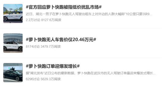 被武汉人吐槽为“苕萝卜”的无人驾驶出租车萝卜快跑,在这个夏天火了。 以最近几日为例,有关#萝卜快跑#的话题频频登上微博热搜,评论集中在价格便宜、i人最爱、订单疯涨、抢出租车的生意以及车祸事件等。 ![]() ●图源:微博话题对于萝卜快跑的出现,有人认为是个造福大众的好产品,也有人认为无人驾驶技术的进步会让数千万出租车和网约车司机失业,还不如多想办法让机器人取代那些真正有危险的工作… 只是,随着智能驾驶技术的不断更新迭代,无人驾驶可能很快就会深入你我他的日常生活中。 01、萝卜快跑,火了 布局无人驾驶业务的企业有很多,就目前来看,百度旗下的“萝卜快跑”称得上是领头羊。 随着萝卜快跑频繁登上微博热搜,最近萝卜快跑在武汉市内的订单数量迎来爆发式增长,单车单日的订单量超20单。要知道,哪怕对于出租车和网约车司机而言,平均一天也就20单左右。 那么,众多企业中,为什么萝卜快跑得以率先出圈呢? ![]() ●图源:萝卜快跑官方微博首先是在整个消费降级的大环境下,萝卜快跑的出行成本很低。 有体验过萝卜快跑的网友表示,“自己在小程序叫了一台无人驾驶车,10公里左右叠加红包后最终结算只需要5元,相当于平均每公里5毛钱。如果按照武汉当地的出租车或网约车的计价费用来看,普遍则在20元以上”。 相较于以往,萝卜快跑的出现能够让民众的出行成本更低,3公里以内的路程甚至比坐公交车还便宜。 价格低只是其一,无人驾驶车的另一大优势是可以让用户更加的随心所欲。在app或微信小程序上直接下单,车辆到达指定地点后可以在后窗屏幕上输入手机号码后4位解锁上车。 ![]() ●图源:萝卜快跑微信小程序值得一提的是,后排大屏幕还能当做 KTV或私人影院,不管做什么都不用担心司机的吐槽和不满,也不必强行尬聊,简直就是妥妥的“i人福音”。再加上都是统一车型且后排空间较为宽敞,车内环境干净整洁,舒适度上自然也能拉满。 时至今日,萝卜快跑已经成为了很多游客来武汉的必打卡项目。 公开资料显示,2021年8月18日,百度发布了旗下自动驾驶服务平台萝卜快跑。一年之后,百度把全国首批投放城市地点定在了武汉。 之所以把地点选在武汉,实际上和当地的交通状况密不可分。公交车司机是F1退役车手、小汽车见缝插针、电动车无视一切交通规则,社媒平台上关于武汉的交通有着各种各样的传说。 “如果无人驾驶在武汉都能跑得开,那推广到全国各大城市应该都没有什么问题”,对于萝卜快跑的爆火,有网友如此调侃。 02、动了谁的奶酪? 随着萝卜快跑的爆火及疯涨的订单量,无人驾驶车的低价策略,让广大出租车和网约车司机不淡定了。 过去几年,开网约车一直被很多人视为中年失业后的“兜底工作”。原本就有越来越多的人加入了网约车这一行列,现在无人驾驶都开始跟自己抢工作了。 数据显示,我国2023年新增网约车司机148万,截止到今年4月底网约车司机注册量为696.4万人,算上出租车司机将高达千万。单从运力的角度来看,明显已经趋于饱和。 ![]() ●图源:滴滴出行官方微博僧多粥少的背景下,盈利水平自然不可同日而语。 据不完全统计,从去年底到今年上半年,网约车每天的平均订单量已经从14.2单下降到12.2单,日均营收也从343元下降到311元。哪怕每月30天连轴转,除去租车等成本后,司机的收入普遍也只有6000元左右。 收入越来越少,平台还要对司机进行高抽成和施加压力,也难怪会发生网约车司机激烈驾驶、对乘客服务态度不佳的问题了。 面对无人驾驶车的竞争,有越来越多的网约车和出租车司机公开请愿进行抵制。不过有关部门对于萝卜快跑低定价所引发的争议,回应是无法干涉,有法律从业者也表示这种情况和法定的不正当竞争行为存在明显界限。 ![]() ●图源:高德打车官方微博“和10年前出租车抵制网约车如出一辙,实际上很难改变什么”,面对此情此景,有网友如此表示。 03、无人驾驶,仍有隐患 在今年5月15日所举办的Apollo Day 2024上,百度自动驾驶业务部总经理陈卓表示,目前第6代萝卜快跑无人车价格已经降到了20.46万。 随着今年初以来覆盖面和运营效率大幅提升,萝卜快跑营收增长9倍,亏损同比减少超过50%,预计2024年底萝卜快跑在武汉地区将实现收支平衡,2025年正式进入全面盈利期。 据百度一季报显示,萝卜快跑累计服务订单已经超过600万,第一季度在武汉的全无人驾驶订单比例超过55%,未来还会持续提升。萝卜快跑的爆火,甚至带动百度股价上涨超10%。 ![]() ●图源:百度Apollo官方微博百度的无人驾驶业务看起来前景广阔,但这并不意味着就没有任何隐患。 首先是很多乘客的吐槽,由于萝卜快跑全程无人驾驶,过于守规矩且不能自由选择停车地点。这在被网友戏称“全员鄂人”的武汉,显得格格不入。 据了解,萝卜快跑在行驶过程中通常会优先选择主干道,对有些乘客而言原本在老司机的带领下几分钟路程,乘坐萝卜快跑时长动辄翻倍。 同时萝卜快跑高度遵守交通规则,除了被频繁加塞,有时候甚至会阻塞交通。转弯时面对密集的车流,可能要连续等上好几个红绿灯才能顺利通行。 其次,也是更关键的点在于无人驾驶可能带来的安全隐患和职责判定标准。前几日,有媒体报道称武汉市区萝卜快跑在街头和行人相撞,萝卜快跑在信号灯变绿后启动撞上了闯红灯的行人。 ![]() ●图源:小红书虽