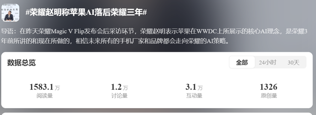 来源:品牌议题 荣耀,荣耀了 2023年末,连荣耀CEO赵明也说:“没人能想到荣耀能做到第一。” 今年618京东大促期间,荣耀一举夺得八个销售冠军。在收官28小时,安卓手机品牌销量比拼中,荣耀脱颖而出。在1000-1500元、1500-2000元价格段,荣耀也有所斩获。 其中,最亮眼的当属折叠品品类。荣耀折叠屏品类销量同比增长179%。6月13日新推出的首款小折叠屏手机Magic V Flip,一经上线,便获线上各平台小折叠品类销量冠军。 发布这款竖折产品之前,荣耀在23年7月就发布了仅有9.9mm的Magic V2,引领折叠屏手机进入毫米级时代。 这个硬核实力为荣耀守住“轻薄”占位,至今一年无人打破。尽管在华为时代的荣耀,被性价比”、“中低端”标签束缚,而今靠发力折叠屏手机,全面进攻高端市场。 ![]() 2020年11月独立之后,荣耀没有了芯片,没有了系统,连银行也不愿意贷款,被外界质疑“离开华为这棵大树什么都不行”。这一切,令曾经中国排名第二的智能手机品牌,市场份额最低跌到3%。 经历至暗时刻的荣耀仅用了三年时间,就实现中国智能手机市场、折叠屏市场的双登顶,还以19.3%份额拿下国内安卓手机出货量第一名。而今年第一季度,荣耀势头不减,凭借17.1%份额拿下了国内手机出货量第一。 ![]() 分家前后的荣耀,从子品牌到独立品牌。荣耀的重新定义,是被动的背水一战,也是主动的大胆出击。 独立之初,荣耀只能靠找到什么芯片,就对应做什么样的产品。赵明直言,只能在新的土壤上生根发芽,“荣耀不可能成为华为了”。荣耀,是被“逼着”自力更生。 ![]() 甩掉旧心智,走出旷野,荣耀重新定义。2013年面世的荣耀,在外观设计、硬件配置和定价策略上全面对标小米,是华为抢占中低端市场的王牌。这个过程中,荣耀品牌在年轻消费者中烙下了“性价比”、“平替”的心智。 “归零”反倒让品牌走进旷野。品牌不用再受以前的条框约束,重新定义实现转型。荣耀积极发展Magic系列,是发起进攻高端战场的号角。 在逆周期行业中取得了多个业绩第一的的荣耀,在2023年末发公告,表明即将上市。它终于与老东家在顶峰相见。 从头再来,不被定义,荣耀如何涅槃重生?我们接下来看看。 脱掉性价比标签,做高端的荣耀 市场疲软之下,高端的份额却在扩大。据IDC数据显示,600美元以上的高端智能手机份额高达27.4%,同比增长3.7%。 中高收入的消费者更注重长期消费,愿意一次性投入更多的预算,购入性能更强、功能更全面的手机。他们是推动这个市场增长的核心驱动力。 ![]() 对于荣耀而言,进军高端局,一方面是认知洗牌,另一方面是丰富自身产品线,抢占更多客群,从而让荣耀实现“服务全人群”的目标。 ①卖高端机,打开海外市场 在国内,荣耀的“认知战”难打,便直接挑战海外市场高端局。赵明表示,发达国家市场已经不再需要低端机,而是需要“一个能够与苹果、三星竞争的品牌,这也是荣耀未来在全球的战略。” ![]() 今年2月,Magic 6 Pro在欧洲开售,最高配置的12+512GB版本售价高达1299欧元,折合超过一万人民币。法国专业评测网站DxO给予该手机在影像、自拍、电池、屏幕、音频五大项的综合评分第一。 从Magic 4系列到Magic 6 Pro的出海成绩斐然,荣耀成为英国市场占有率第一、法国市场增长最快的手机品牌。 ![]() ②新宠折叠屏,进军高端市场的突破口 近年来,随着外观形态、铰链技术、功能升级后,消费者对折叠屏手机的想象上来了。折叠屏手机销量快速上升,预计到2025年将达到20%渗透率。 国内厂商纷纷将折叠屏手机视为冲击高端市场的抓手。如今,荣耀集齐了横向内折、横向外折、竖折三种形态,形成了全形态的折叠屏矩阵。 ![]() 荣耀正在加速奔向“折叠屏第一品牌”这一目标。2023年7月,荣耀发布了MagicV2系列,凭借9.9mm的闭合态厚度,首次将折叠屏厚度带入“毫米时代”,让折叠屏媲美直板机的体验。 找准“轻薄”的荣耀,随后推出Magic Vs2、荣耀V Purse,完成折叠屏三连击。在它们的带动下,荣耀高端Magic系列手机出货量增长107.5%,夺得了2023年第三季度中国折叠智能手机市场出货第一名。 ![]() 今年2月,荣耀推出首款小折叠手机Magic V Flip,开创了大外屏竖折手机时代。时隔4个月后,赵明宣布Magic V3即将再次打破轻薄记录。在轻薄的路上,只有荣耀自己才能打败自己。 在折叠屏机型成为未来市场趋势前,荣耀已经成为这个细分赛道的黑马。 极致产品主义杀死昨天的自己 品牌溢价用过硬的产品力支撑。高端故事要立稳,荣耀要用极致产品主义“杀死昨天的自己”。 ①AI重构,涅槃而生 近几年,新出的机型在消费者眼中,很难有令人“哇塞”的创新点。过去很长时间里,摄像头、屏幕的竞争进入白热化,连领军厂商在内,也被诟病“挤牙膏式”的创新。 ·AI赋能,重构安卓手机体验 随着AI的发展,通信行业将希望寄托在AI上。被称为“AI手机元年”的2024年,各大厂商都开始推出AI手机,品牌们找到可以卷的新领域了。 大家都在跑,荣耀更要抢跑。其他厂商更多的是将AIGC应用在手机上,而荣耀推出的MagicOS 8.0系统,是业界首个基于意图识别的人机交互,立志重构安卓手机体验。 今年2月,荣耀在2024 MWC世界移动通信大会,正式发布了“平台级AI赋能的全场景战略”。其中“任意门”功能颇为亮眼。用户可以拖动文字信息、图片至其他APP交互,系统预判用户的意图,将复杂指令转化为简单的拖拽。例如,将短信中