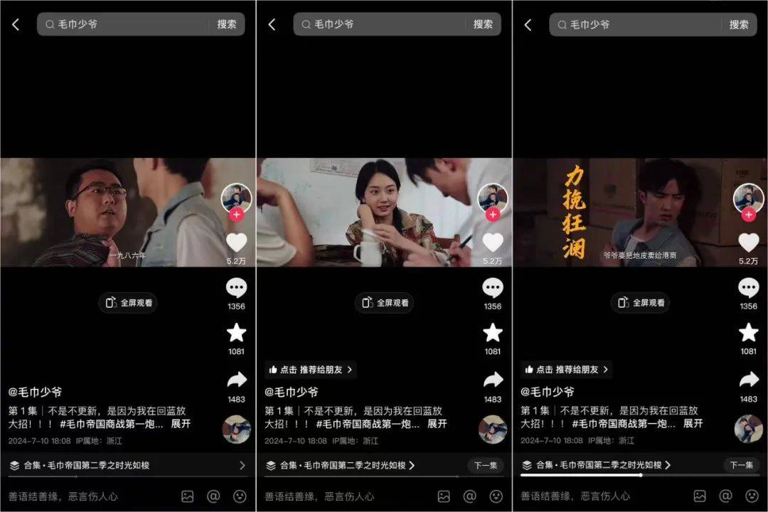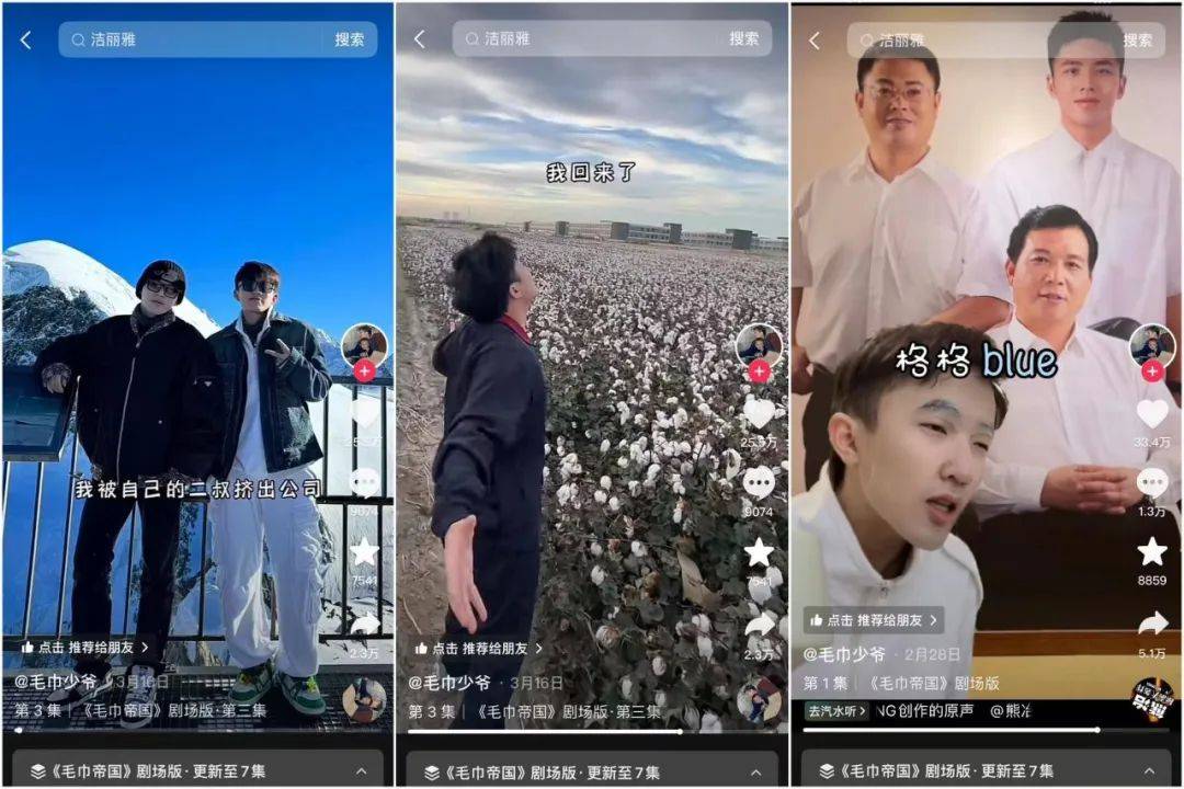 “我被自己的二叔挤出公司,流放新疆三年……如今三年已到,我回来了。” 这段听起来略显尴尬的“霸总文学”出自近日在抖音上热播的短剧《毛巾帝国》中的第二集,是男主角石展承对个人现状的简单介绍。 和一般的短剧演员不同,石展承是一位实实在在的“富二代”。他的爷爷石昌佳是洁丽雅品牌的创始人,爸爸石磊现任洁丽雅集团董事长,而同样在短剧中出现的二叔,则是洁丽雅集团总裁石晶。 截至目前,这部由洁丽雅少爷自编自导自演的《毛巾帝国》累计播放量已经超过1亿,单条短视频的最高点赞数高达143W,还一度登上抖音热搜TOP1。作为一部短剧,这样的数据无疑是相当优秀的,但更加值得关注的是,伴随着《毛巾帝国》的走红,“洁丽雅”这个被不少人遗忘的老国货品牌得以再次走进大众视野。根据运营研究社的报道,过去三个月,搜索品牌词进入洁丽雅天猫期间店的消费者增长了约30%-50%,店铺日销同比增长100%,618期间更是一举登上天猫居家布艺行业 Top1。 实际上,自线上电商兴起以来,不少老品牌因未能及时跟上这一“潮流”而逐渐“掉队”,特别是在短视频风靡以来,很多老品牌越来越难跟上年轻消费者的步伐。在此期间,尽管我们也看到了很多品牌改革创新、艰难求生的案例,但大多数品牌仍受限于“过时”的品牌形象,无法满足当下消费者的新潮需求。 如何做到“品牌年轻化”成为了一众多老品牌面临的首要难题。《毛巾帝国》的横空出世是否能为它们提供一个新的解法?“二代”们下场做抖音,是否能扛起“全村的希望”? 1、“企三代”勇闯抖音 “忙碌的爷,领奖的爸,反派的叔和闲置的我。”这是石展承在剧中对部分家庭成员的精炼概括,这之中或许有出于幽默性考虑的艺术夸张成分在,但从某种程度上来说,也透露了现阶段他还未在家族企业中担当重要角色的事实。 在九派财经的采访中他曾分享,父亲和二叔都不想他过早回到公司承担太多的压力,所以他不仅在大学时随着自己的心意学了影视表演专业,毕业后又组建了一个四人的创业团队,做直播卖家纺产品,“拒绝”回家接班。 遗憾的是,这次创业并没有成功,还给他留下了两个00后成员,为了解决他们的工作问题,石展承带着他们回到洁丽雅做起了@毛巾少爷 的账号。 根据卡思的观察,账号最早的一条视频可以追溯到2022年8月。这条作品迎合了#00后整顿职场 的热点,讲述了一个老板要求00后员工下楼帮自己拿外卖,员工直接用“在忙没空”“凭什么叫我给你拿外卖啊”“我真受不了你们资本家的嘴脸”“我告诉你今天是我开了你”等一套组合拳“硬怼”,最后却在100元现金的诱惑下“滑跪”的反转故事。 ![]() @毛巾少爷 抖音截图 这样的职场爽文段子虽然有一定的笑点和吸引力,但内容缺乏独特性,也没有太大的爆点,因此数据表现也非常平庸,没能让@毛巾少爷 从竞争激烈的剧情赛道脱颖而出。 直到2023年《少爷流浪记》的发布,账号才迎来了第一个爆款。这支视频的内容其实并不复杂,仅仅是记录了石展承对父亲将自己“发配边疆”后的几句吐槽和抱怨,并给自己冠上了个“不屑子孙”的称号。 虽然内容只是简单记录,但这条视频为用户展现了一个来自真实企业洁丽雅集团的“家族故事”,且里面的“少爷”还过得十分“凄惨”,和大家想象中的形象有较大反差,因而反向收获了众多用户的兴趣和喜爱,评论区点赞最高的一条评论是“原来富二代也要坐经济舱,我平衡了”。 ![]() 这支作品的“爆款”特质或许成为了后来《毛巾帝国》的灵感之一。今年初,石展承在自己真实家庭经历的基础上,虚构了一个“叔侄内斗”的故事,并启用真实的家庭成员作为演员,将洁丽雅的“家族秘辛”以爽文短剧的形式展现在网友们面前。 整部《毛巾帝国》剧集不过7集,从“废材少爷”石展承两次创业失败,不得不接手家族企业为起点,讲述了他被英国归来的帅气二叔贬到新疆基层三年,磨练结束后回归总部决定与二叔展开一场激烈的夺权大战的故事。不过,随着剧情的推进,石展承逐渐意识到,自己在长辈们心中并非霸气的权力争夺者,更像是家族里起对比作用的”吉祥物“。 ![]() 总体看来,这部自编自演的“内斗剧”具备很多走红的要素。 首先从选题上来说,当代年轻观众本来就对豪门故事、权力斗争等题材的内容有着浓厚兴趣,特别是洁丽雅还是一个市值百亿、真实存在的企业,在此基础上衍生出的故事自然能获得更高的关注度。 其次,短剧中塑造的鲜明又充满反差感的人物给观众们留下了深刻的印象:“能力平平”的富三代石展承和帮助洁丽雅快速转型的“反派”帅气二叔,都有着很强的人格魅力,两人之间的碰撞交锋又充满了爽文小说的意味,而看惯了一般富三代的光鲜亮丽,再看石展承的“到处吃瘪”,更是给用户带去了一种反差极其强烈的新鲜感和趣味感。 2、“二代”们为何扎堆做“网红”? 《毛巾帝国》上线后,在社交平台上引发了广泛讨论并迅速出圈,不少网友都表现出了自己对剧集的兴趣和喜爱,目前@毛巾少爷 的账号粉丝数已经突破100W,石展承和石晶也成了粉丝们口中新一代的“互联网老公”。 更值得关注的是,得益于洁丽雅品牌及其产品在剧情中的恰当植入,这部剧成为了相当优秀的宣传素材。洁丽雅董事长石磊在采访中曾表示,“专业人士说以价值转化的话,以前你可能