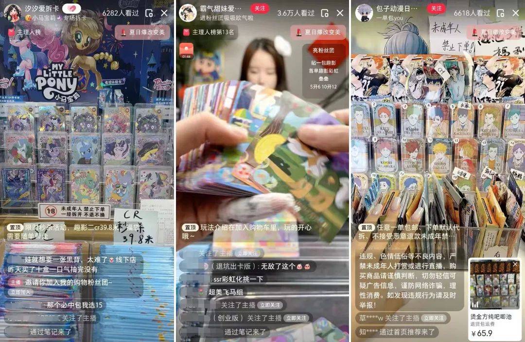 “超欧,双爆盒,恭喜宝宝!” “奶的好准,横版隐藏款黑背!” 随着“叮叮叮”的铃声,主播一边欢呼着“宝宝真是太欧啦”,一边将刚拆出的稀有卡放到镜头前的亚克力展示架上。在她面前,还摆放着大量等待拆封的卡包。弹幕快速翻滚,直播间内不时有用户下单,其中不乏一次性下单一箱的“大手笔”玩家。 今年以来,集换式卡牌的热度水涨船高,进而带动“拆卡”成为一项热门生意。在小红书、抖音等内容平台,皆涌现出大量的拆卡主播。数不胜数的直播间内,主播们动作麻利,一手将叠在一起的卡袋剪开,再熟练地倒出卡片,迅速筛出其中的高位卡。每当开出稀有卡片,她们还会敲响铃铛以示祝贺。 ![]() 小红书拆卡直播 这类直播间布景简单,入行门槛也相对较低,但创造出的变现空间并不小。在抖音,@九欧拆卡 坐拥162万粉丝,近30天内累计销售额达到100W~250W;刚刚过去的6月,登顶小红书的@霸气甜妹爱拆卡,靠沉浸式拆卡一月涨粉44万,直播场均观看人次约20万人。 一包仅售2元的小卡片,何以成为风靡电商平台的“好生意”? 1、“拆卡”直播,花样很多 追溯集换式卡片的起源,其初始形态可能是1880年诞生在美国的球星卡,这类卡片最初属于香烟的附赠品,此后渐渐成为大众收藏品,又衍生出亲签卡、明星小卡等多种类别。2022年世界杯期间,C罗的一张卡片被卖出了777万的高价,韩娱明星的各类小卡更是一度成为理财产品,活跃于二手交易市场。 前有明星小卡、盲盒潮玩,集换式卡牌的火热似乎也并不稀奇。而当集换式卡片进入直播间,则衍生出了一种新型生意形态:用户在直播间下单后,由主播现场代为拆开,拆卡的全过程都展示在全部观众面前。 虽然场均人气可能比不上其他垂类主播,但直播间内时时都有人下单,主播拆卡的手几乎没有停过。也有一些拆卡主播凌晨开播,但直播间人气依旧维持在不错的数据。 为何简简单单的“拆卡”能吸引消费者前赴后继下单?卡思认为,一方面,拆卡的产品本来就是小孩子们关注的热门IP,像奥特曼、小马宝莉、叶罗丽、宝可梦、三丽鸥等都是拆卡界的热门IP,宝可梦的卡片更是在国外风靡已久,产业链成熟。 ![]() 图源:unsplash 在赛道逐渐火热后,更多二次元IP,包括名侦探柯南、排球少年、间谍过家家等也加入了收藏卡江湖,精致的卡面、不同等级的卡牌设计,很容易在未成年间创造社交话题; 另一方面,和盲盒类似,拆卡具有极大的不确定性,很容易激起消费者的收集欲和对稀有卡的渴望,一旦开始了这种拆卡游戏,很容易就会“上头”。 虽然只是一张四方卡片,但其中的衍生花样并不少。以小马宝莉为例,这一IP比较流行的卡包包括趣影包、辉月包、彩虹包等,每包定价不同,趣影包的零售价仅为2元。 而从卡面等级来看,这类集换式卡牌自有一套完整的卡片等级系统。小马宝莉的“趣影包”就有N卡、R卡、SR、SSR、UR、CR之分,其中N卡指的是场景卡,卡面是IP场景的截图,SSR以上就算是稀有卡牌,概率出货,CR又因卡背颜色被称作“黑背”,是这一系列卡牌中的最高卡位,所有稀有卡牌都是概率出货。 ![]() 图源:小红书 由于不同等级的卡片都有着差异化的卡背,拆卡主播们在剪开卡袋后,会直接将卡的背面展示给观众,快速筛选出高位卡,价值不高的“普卡”则会被筛到塑料盒内,等待邮寄给用户。拆卡的次数越多,手中“无用”的普卡就会越多,一些消费者还会选择不要普卡,以低价卖给商家。 而越是稀有的卡片,制作工艺越好,价值也就越高,以趣影包为例,一张“黑背”一般能卖到四五十元,但具体价值也根据角色人气、是否绝版上下浮动。有时一张绝版稀有卡片,在二手交易平台能卖到7万元。 每当拆到高位卡,主播都会兴奋地敲响铃铛祝贺“欧气满满”,这些出货时刻也会被做成切片更新至博主主页,作为主播“手气好”的证明,诱惑着更多潜在玩家。 除此之外,为了吸引直播间观众下单,不少拆卡主播还会推出令人眼花缭乱的玩法机制,将原本定价2元一包的卡牌卖出更大价值。在社交平台上,一晚花去上千元、乃至上万元的例子并不在少数。 2、有人“吃肉”,有人“喝汤” 艾瑞咨询《2023年中国收藏卡市场研究报告》显示,2022年,中国收藏卡行业市场规模超过100亿元,同比增长42.1%。预计到2025年,其市场规模将来到276.6亿元,仍然保持三成的同比增速。大众对收藏卡的认知正在形成,未来一段时间,收藏卡的市场规模仍将快速增加。 ![]() 而除传统的线下潮玩门店之外,消费者也逐渐养成在直播间内购买卡片的习惯。高关注度、高情绪价值,都让直播拆卡成为这一系列生意中的佼佼者。集卡社CEO林俊就曾表示,抖音电商已成为他们增长最快的渠道之一。 小小一张四方卡牌,背后蕴含的商业价值正水涨船高。 2022年,奥特曼系列卡牌的火热带动了卡牌制造公司卡游的出圈,2022年,卡游以整年超40亿的营收晋升为卡牌“一哥”。此后,卡游又推出了多种IP卡牌,如叶罗丽、三国等,2023年9月底前,其旗下IP增加至44个。今年1月底,卡游正式向港交所递交招股书,寻求上市。 杰森动漫“集卡社”则是集换式卡牌市场的另一头部公司,主要运营IP包括斗罗大陆、斗破苍穹、鬼灭之刃、迪士尼等海内外知名IP。2023年2月,集卡社获得了由B站领投的首轮融资。据CEO林俊介绍,直播渠道40-60%都来自老客户复购,为此,集卡社还在搭建VIP用户体系,给予不同等级的用户以不同