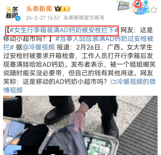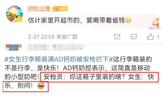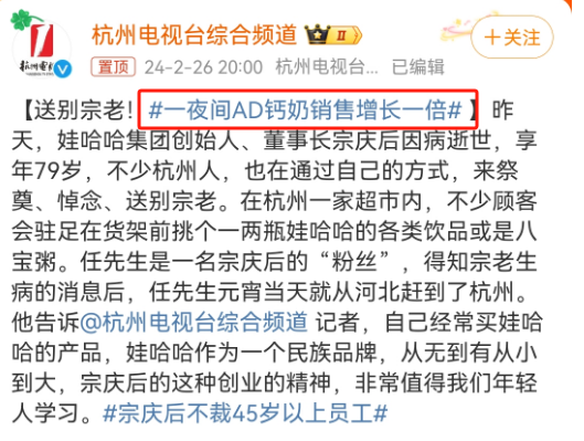 作者 | 杨阳 来源 | 顶尖广告 01 最近娃哈哈疯狂上热搜,有两个热搜让我印象深刻。 全网怀念娃哈哈创始人宗庆后,员工和市民自发到原娃哈哈总部大门口献花,摆放AD钙奶和其它娃哈哈产品。 ![]() 图源:微博网友 还有一个小姐姐的AD钙奶,居然在安检时被扣下了,这一幕让我想起了春晚出圈的AD钙奶姐。 ![]() ![]() 图源:头条新闻 一位安检人员打开小姐姐行李箱时傻眼了,发现装满了AD钙奶。 这难道不是“移动的AD钙奶小超市”,这可能是我听过最暖文案了。 ![]() ![]() 图源:头条新闻 一整个行李箱都装满,这下全网都知道这个女生是娃哈哈真爱粉无疑。 家里是不是开小卖部的不知道,不过可以确定的是:我终于知道一夜暴涨的娃哈哈,到底哪里来的了,不是空穴来风。 ![]() 图源:杭州电视台综合频道 最近一段时间,全网都在忙着狂炫娃哈哈,据说娃哈哈这几天销量蹭蹭蹭地涨。 ![]() 图源:小红书网友 这其中AD钙奶就贡献了占了大头,同比增长100%,其它娃哈哈产品销售增幅20%-30%。 回到行李箱话题,有人怀疑是不是摆拍或者营销,无论如何我发现,大家这次已经骂不出来了,更多是感动。 ![]() 有的盲猜春节后把家里送来的吃吃喝喝带回来,或者是住校生返校,刚好要屯点干粮和回学校。 ![]() ![]() 毕竟不是娃哈哈AD钙奶买不起,而是家里带更有性价比。 看到这儿我只想说,会说你们就多说一点。 我愿称之为:春晚AD钙奶姐2.0 还有称之为:徐江的女儿。 ![]() ![]() 还有人忍不住感慨:为什么娃哈哈打的广告总是奇奇怪怪。 ![]() ![]() 02 用网友的话来说,都怪春晚后遗症太严重了,说的就是春晚爆火的AD钙奶广告。 要知道上一次看见AD钙奶的刷屏广告,还是春晚那会儿: 刘谦在表演魔术时,坐在一旁的AD钙奶姐狂炫AD钙奶,就像呼吸空气一样自然,看得五粮液咬牙切齿。 ![]() 图源:小红书 明明大家都是真金白银砸钱上春晚打广告,明明是两个人的故事,偏偏只有娃哈哈上热搜了。 ![]() 图源:小红书 果然赞助品牌之间的悲欢,都不是相通的。 只是这个热搜对于AD钙奶而言,并不是那么友好。 春晚本来就是大型广告植入现场,相对于五粮液、小红书、华为等其他品牌的植入,AD钙奶广告被评价植入过于粗暴。 ![]() ![]() 明明可以只摆桌上不好,但娃哈哈选择显眼包的方式出现。后来据说AD钙奶姐并不是娃哈哈请来的,只是纯纯忠实消费者。 如果说春晚AD钙奶姐打的广告是有争议的,那这一次拖行李箱的AD钙奶姐就可以说赢麻了,为AD钙奶打了一波漂亮的广子。 ![]() ![]() 毕竟刚好这话题是出现在春节返程后,大家拖着大箱小箱回到打工城市,回到自己的学校,娃哈哈作为情怀单品,很容易引起大众的情感共鸣。 ![]() ![]() 所以在这里,建议娃哈哈可以学习比亚迪公关,给AD钙奶姐2.0送一整年AD钙奶,要么就请别人当一回野生代言人。 ![]() 除了春晚广告让人印象深刻,还有娃哈哈的影视剧营销,不过这是品牌“被迫营业”。 说到《狂飙》除了想到江门的猪脚面,不得不提的就是里徐江的AD钙奶。 徐江在儿子灵堂上,堆满AD钙奶做贡品,因为儿子喜欢喝。 ![]() 图源:爱奇艺《狂飙》剧集 虽然娃哈哈不是《狂飙》正式的广告主,虽然创始人并不认可这样的植入,更推崇追悼英雄烈士。 ![]() 图源:老板联播 但毫无疑问,娃哈哈这波赢麻了。 那一年的《狂飙》是为数不多的爆款,娃哈哈凭借反差式的植入刷足存在感,通过《狂飙》让大家狠狠记住了品牌,为品牌带去了不少谈资。 03 除了娃哈哈品牌自身,娃哈哈的接班人也总是以另类的方式上热搜,是一个妥妥的话题女王。 不可否认互联网是个好东西,给企二代营业“野生代言人”的机会,一旦发声都有机会给品牌打广告。 比如娃哈哈的代言人,宗庆后女儿宗馥莉上任娃哈哈集团品牌公关部部长后,接班的第一把火就是撤下代言人王力宏。 原因也是简单粗暴,就是“因为他年纪大了,观众会审美疲劳”。 ![]() 图源:南京十八频道 虽然王力宏后面陷入舆论风波,不过在代言娃哈哈的20年,王力宏代言费都没涨过价。 创始人宗庆后也表态过,王力宏对娃哈哈有感情,给别人做广告已经很贵,但给娃哈哈做还是比较便宜。 ![]() 图源:南京十八频道 但恰恰是宗馥莉的解约,让这个代言人故事一直被流传。也是因为王力宏代言,很多人认识宗馥莉这个名字。 包括在宗馥莉的微博评论区也是一块营销宝地,虽然宗馥莉个人微博常年不更了,但总有一大批“捞男”常年在宗馥莉评论区刷情话。 ![]() ![]() 曾有网友隔空求婚宗馥莉引争议,举起大字报,向宗馥莉求婚。 ![]() 图源:@10万个新知 这也是为啥有人把宗馥莉评论区称为:不想努力男集中地、大型追星现场区。 不得不说,开放的互联网给网友围观富二代,创造了更多机会。大家在关注富二代社交动态的一举一动的同时,也能不经意的关注到品牌。 04 当然抛去娃哈哈奇葩的广告方式和企二代营销方式不谈,娃哈哈的成长过程也有很多故事不为人知,这几天一大波网友疯狂曝光娃哈哈冷知识。 比如娃哈哈名字是有故事的。出自一首流行儿歌,歌中唱道:我们的祖国是花园,花园里花朵真鲜艳……每个人脸上都笑开颜,娃哈哈娃哈哈,每个人脸上都笑开颜… 比如娃哈哈的前身是保健公司。一开始娃哈哈创始人宗庆后是靠代销人家的汽水、棒冰及文具纸张起家。第二年为别人加工口服液,第三年成立杭州娃哈哈营养食品厂,然后推出中专治小