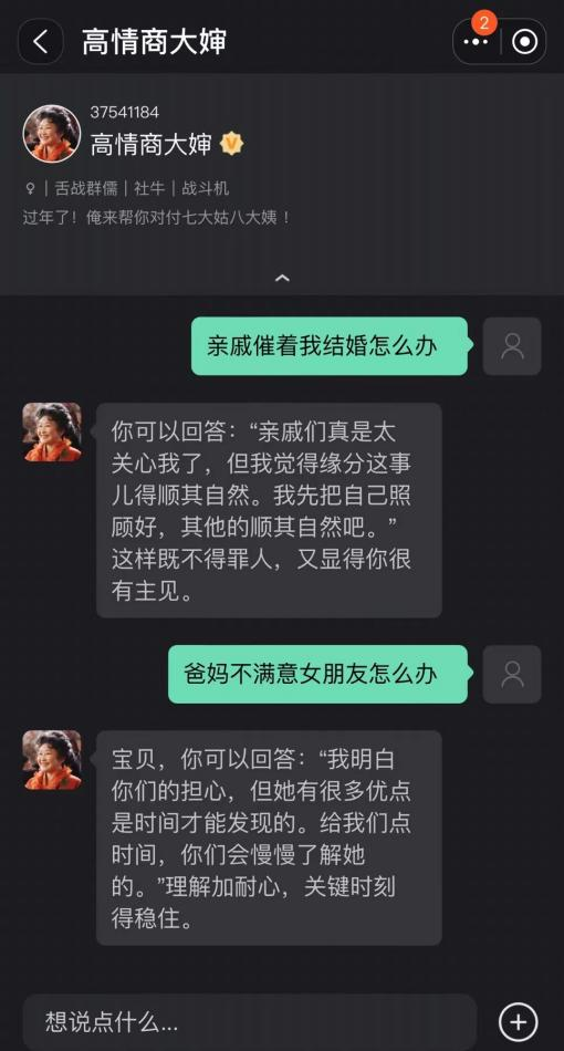 来源/ 锌刻度 撰文/ 孟会缘 编辑/ Annalee 排版/ 许 伟 很难想象,年轻人成为2024年春节“过年主理人”后,置办“电子年货”的平均时间可能都不会超过半个小时。 而在此之前,他们会和“回家过年模拟器”里的七大姑八大姨AI模拟人疯狂对练,以应对回家后各路亲戚的问询;他们也会为亲朋定制龙年相关的喜气表情包,带父母体验AI画龙等新年俗;他们还会拿着朋友的照片共同“参演”《新白娘子传奇》、周星驰系列经典电影等100多个经典影视片段…… 从“悦人”到“悦己”,年轻人开始过自己的“赛博新年”。 这一切,都要从自2023年以来AI行业实现了突飞猛进的发展说起。作为目前全球科技进步最前沿的方向之一,随着海内外各互联网企业的布局和加码,AI技术逐步走向应用落地。而在这股科技潮流的席卷之下,对不少年轻人失去吸引力的春节,因为AI技术的赋能开始焕发新的生机。 “00后”有了“春节搭子” “说起来我已经有好几年没回家了,当然这几年的春节团年也就这么错过了。”阿吉是四川人,2018年毕业后选择留在广东工作的他,现在是一位负责开发手机游戏的程序员。 过去两三年间,因为众所周知的原因,阿吉的春节假期基本都消耗在广东本地,“一方面是我们这个行业在这段时间的发展情况还不错,另外一方面也是顾忌家里的老人不想把风险带回去。” 阿吉坦言,大城市虽然繁华且生活便利,但想要感受烟火气还是第一时间会想到老家,“过去总抱怨‘年味’淡不好玩,真正不过年了倒是挺想念的。”毕竟滞留在广东过年的这几年,阿吉也尝试过享受独属于自己的春节,比如约上一两位摄影同好外出采风,或者是和女朋友一起商定一个两三天的“Spring Walk”计划,“不管是独自享受假期还是把时间留给家人,各有各的妙,所以岔着来最好。” 在阿吉心里,即使自己如今已经在大城市扎下根,也有了固定交往的女朋友,未来或许还会在这里成家生子长久生活下去,但记忆里那些大家坐在火塘边嗑瓜子、齐心协力做一顿团年饭、大年初二开始翻山越岭走亲家、七大姑八大姨轮番问话的回忆,却在远离一段时间后变得越来越清晰。 “今年公司还特意早放了,方便我们安排行程。我之前就和女朋友商量好了,带她一起回家。”对此,阿吉内心非常雀跃,“虽然已经可以预想到亲戚要对我和女朋友各种催婚催娃,但我已经准备好了秘密武器,他们‘放马过来’就是。”说到这里,阿吉掏出手机向锌刻度展示了他购买的“神器”——一个标价为0.01元的AI虚拟人“高情商大婶”。 ![]() 阿吉的秘密武器 对于这个新鲜事物能发挥的实际效用,阿吉并不担心,“即使到时候靠‘大婶’说不过真人,总归大家也可以进行花式提问当个消遣,让各家的老人感受一下科技高速发展的魅力也挺好的。”阿吉笑道。 与阿吉不同,“00后”梦琪选择回归春节的方式,是在网络上发帖寻找几位合心意的“过年搭子”。 ![]() 小红书上各种寻找春节搭子的发帖 刚结束一份工作,想gap一段时间的梦琪顺应内心的想法来到网红城市重庆旅游,正好撞上了春节,“刷短视频的时候就很喜欢重庆的魔幻地形,逛了几天发现计划的时间太短了,完全看不完大家挖掘出来的这么多景点,正好现在流行找各种‘搭子’,干脆就再留一段时间,找几个本地土著体验一下在重庆过春节。” 在社交平台上发布了具体需求的梦琪,没有花费多少时间就顺利组局到了几位年龄相当的小姐姐,大家一起追赶时下最新的过年潮流,办了相当大一份“电子年货”:视频平台会员、新年主题手机壁纸、拜年表情包、微信红包封面、AI定制拜年短信…… “我们商量好了,除夕晚上就不看春晚了,直接定一个有影音设备的地方吃团年饭。”梦琪表示,等到除夕夜零点时分,她们还能互发定制好的“云拜年”短信,或者将之发给远在他方的亲朋好友,一定是一次相当新颖的过年体验。 “花式春节”背后,不可忽视的情绪价值 买“电子年货”、逛“数字庙会”、过“赛博新年”,这一届年轻人简直将2024年的春节假期玩出花来。 淘宝路边社数据显示,淘宝天猫年货节期间,淘宝上包括电子红包封面、影视会员、旅游出行、各类AI商品等数字虚拟商品增长显著。此外,一位淘宝店主称,他售卖的表情包商品最近的下单量增长明显,“比较受欢迎的像是吗喽拜年、熊猫拜年这些比较个性化和可爱的表情包,有像是龙年相关的喜气的表情包,很多人会买来打包送给父母用,还有的一部分顾客会提一些个性化定制的需求。” 显然,随着那群曾经高喊自己不爱过春节的年轻人逐渐成长为家庭的支柱,他们已经接过“过年主理人”的角色,开始按照自己的想法过春节。 就职于某互联网公司的林昕,算是第一批沉迷于各种“新年俗”体验的年轻人,“因为工作的关系,平时我们会关注到一些新的技术迭代和行业变化,去年AI大模型这股科技潮为很多行业提供了进一步的发展空间,没想到春节也搭上了这趟‘快车’。” 林昕注意到,AI画龙、AI机器人写春联、智能春联生成器AI、春节全家福AI生成照等各种AI应用型商品的出现,正在极大增强年轻人群体在2024年春节的参与感,“这段时间我们办公室的人有尝试过这些AI产品,一些觉得不错的还推荐给了身边的朋友。” 身处于一个年轻人颇多的团队里,林昕更能感受到大家对AI赋能过后的春节,接受度到底有多高,“比如